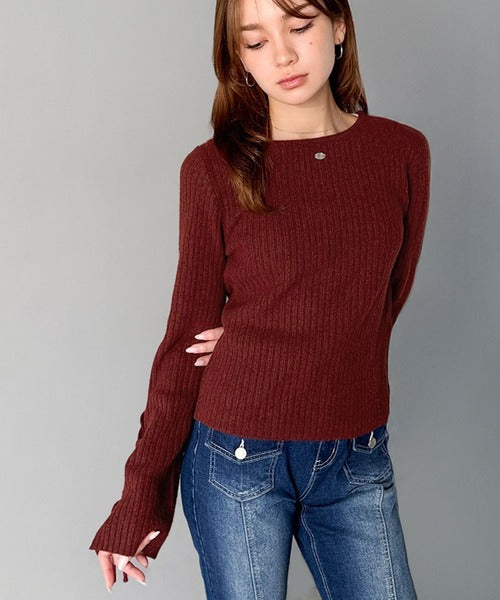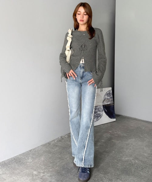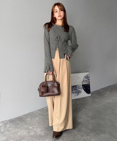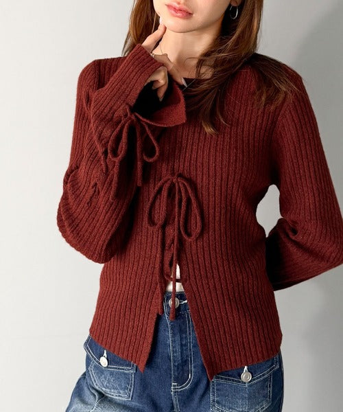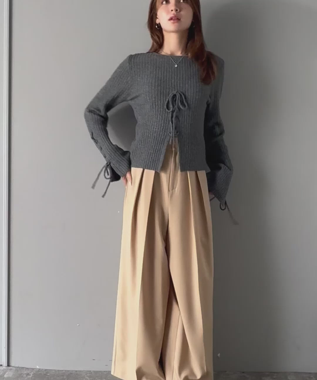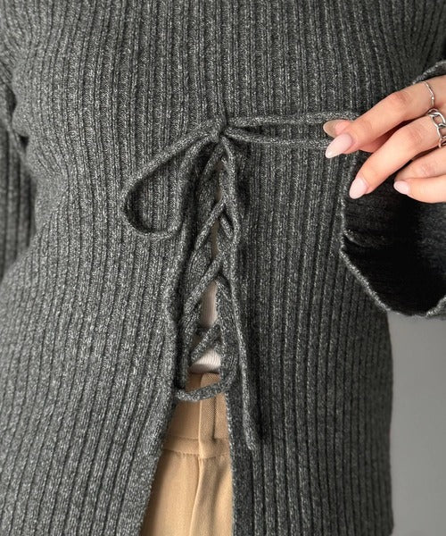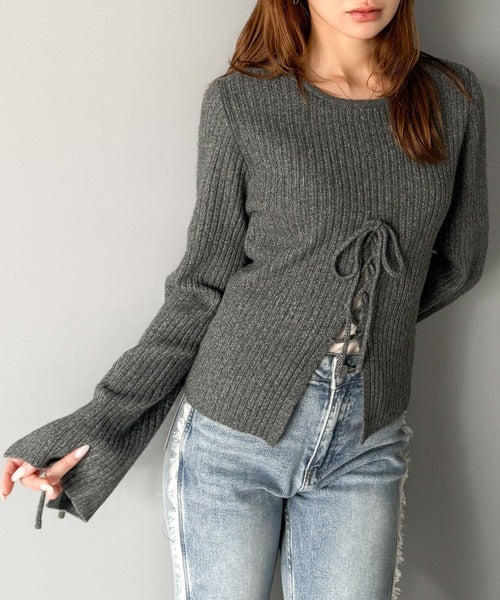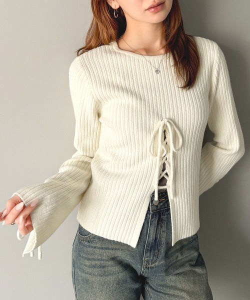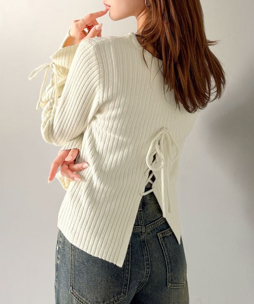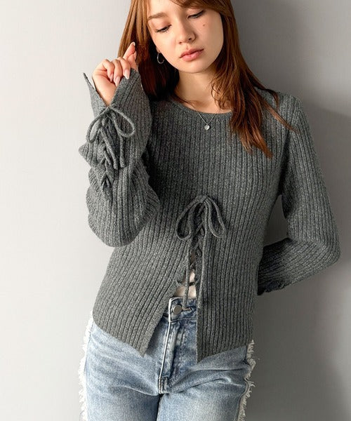 【mily bilet】リボンのディテール映え!前後2wayレースアップデザインニットプルオーバー(長袖) mi1029142