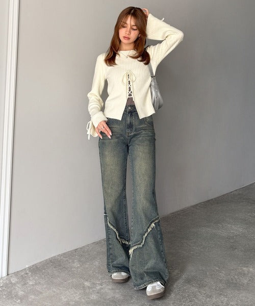 前後2WAYで着られるレースアップデザインニットプルオーバー♪