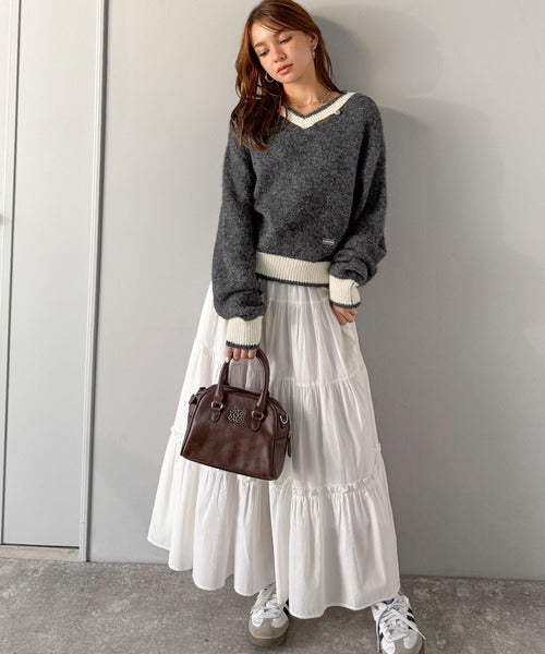 今季注目のVネックニットは、ふんわりとした起毛感が可愛い一枚。
