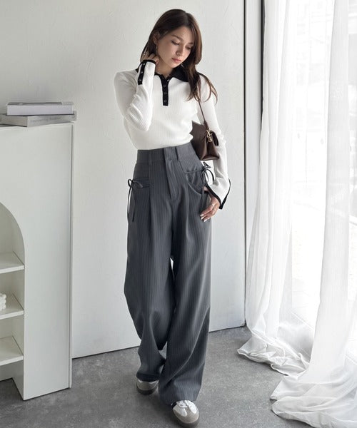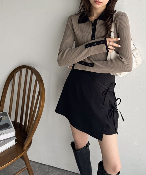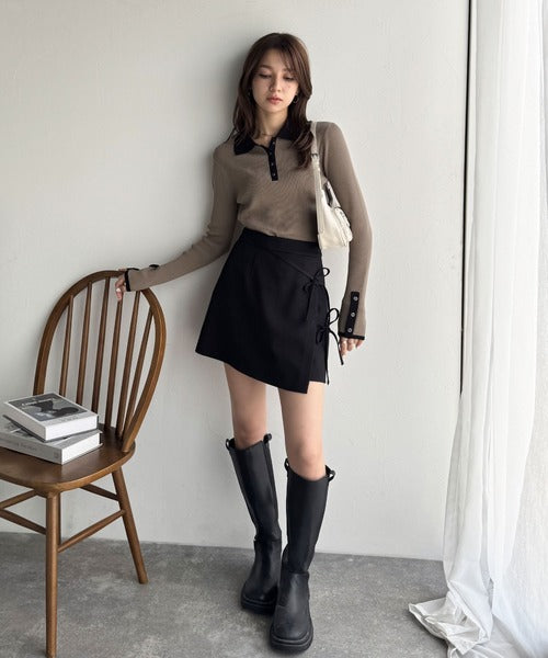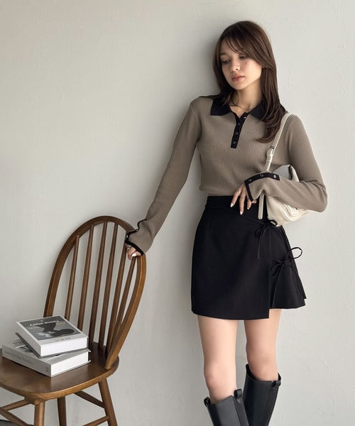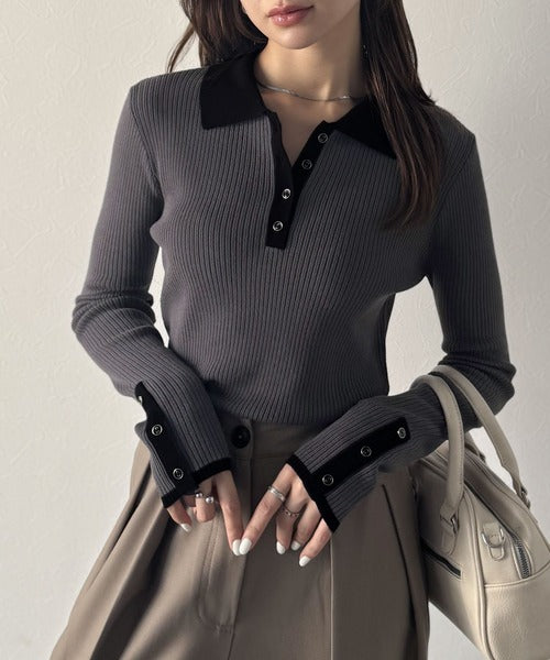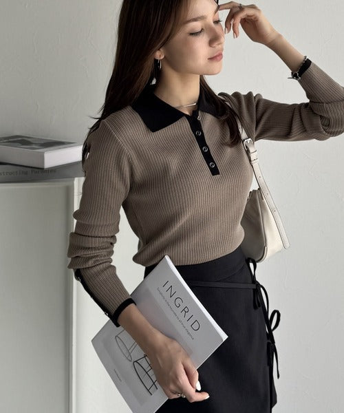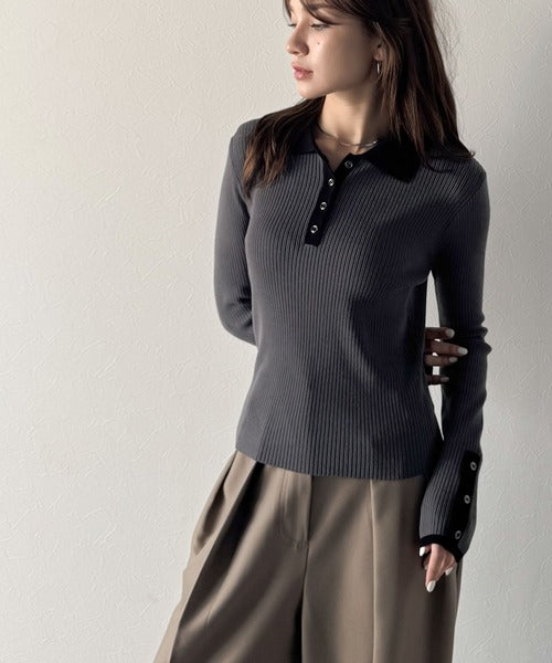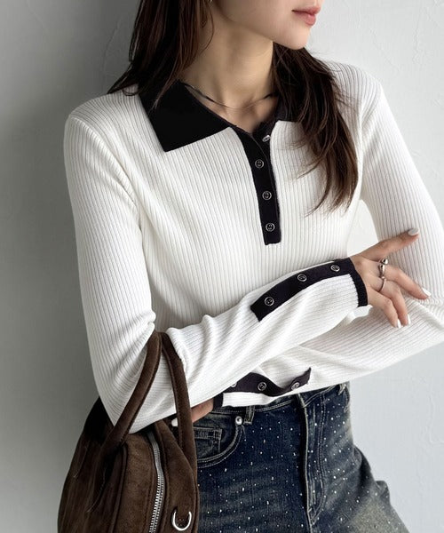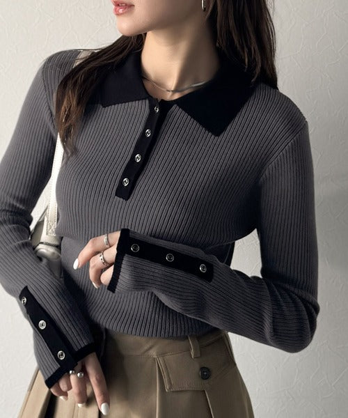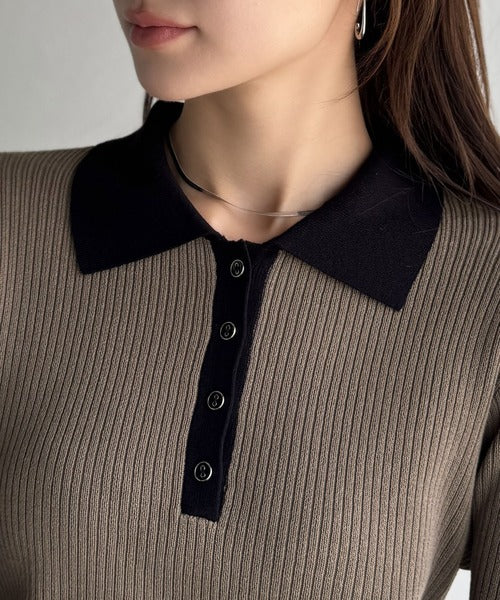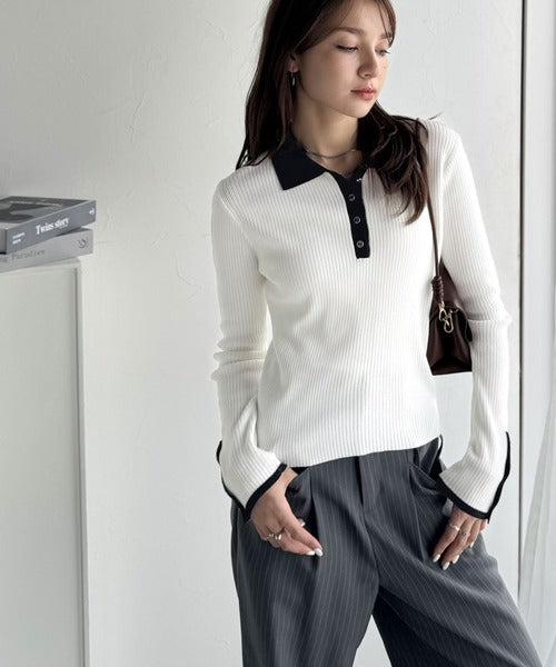 この季節に大活躍のリブ編みバイカラーポロニット。