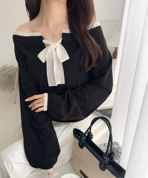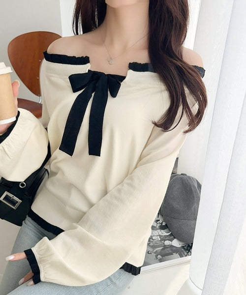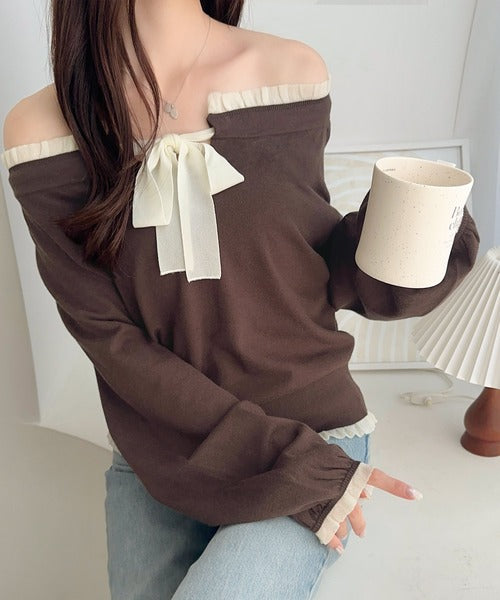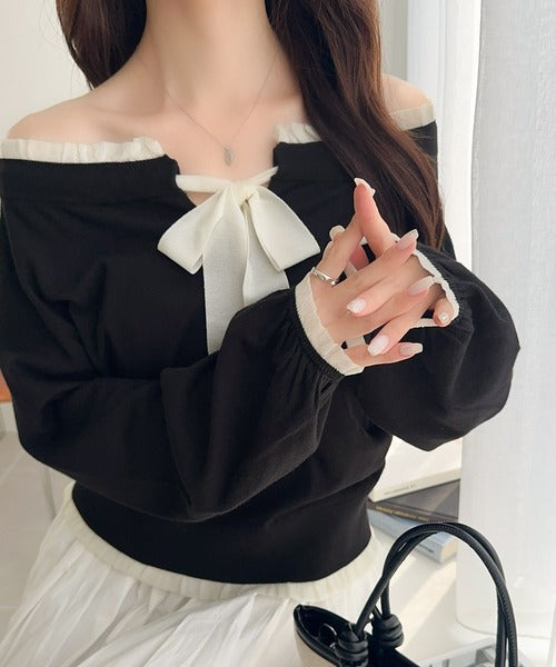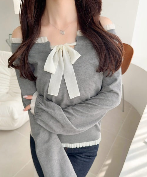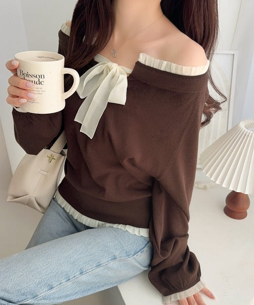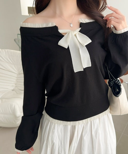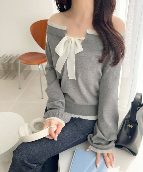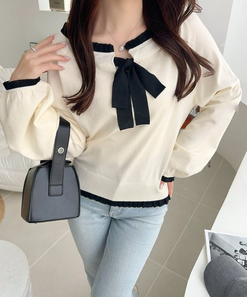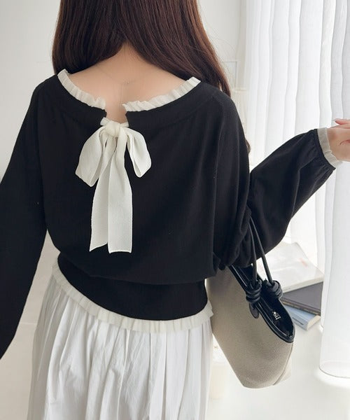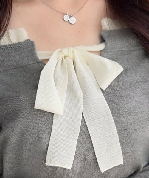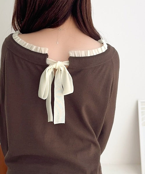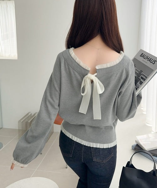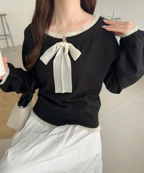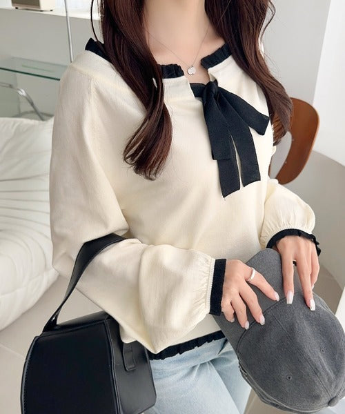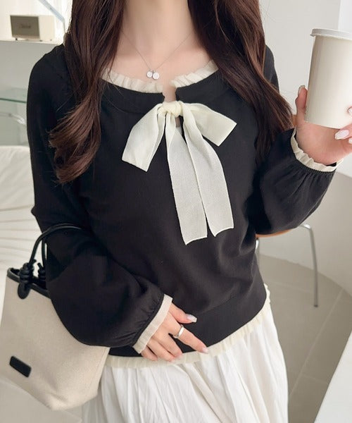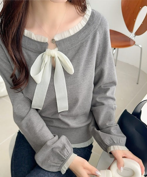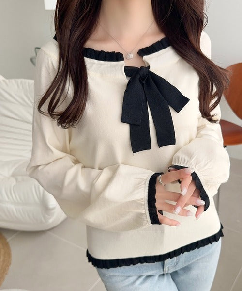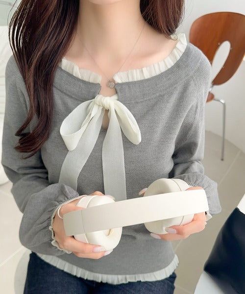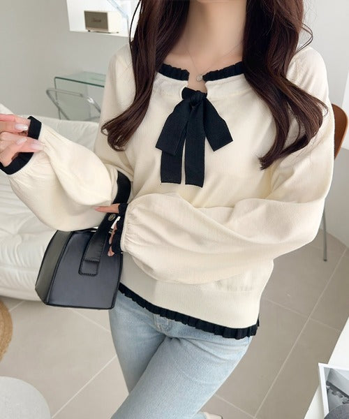 大きなリボンと裾フリルが印象的な主役級ニット。