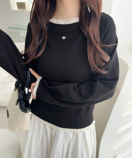 【mily bilet】大人の甘さをひとさじ。マルチWAYロゴシェルボタン使い裾フリルリボンニットプルオーバー mi1029171