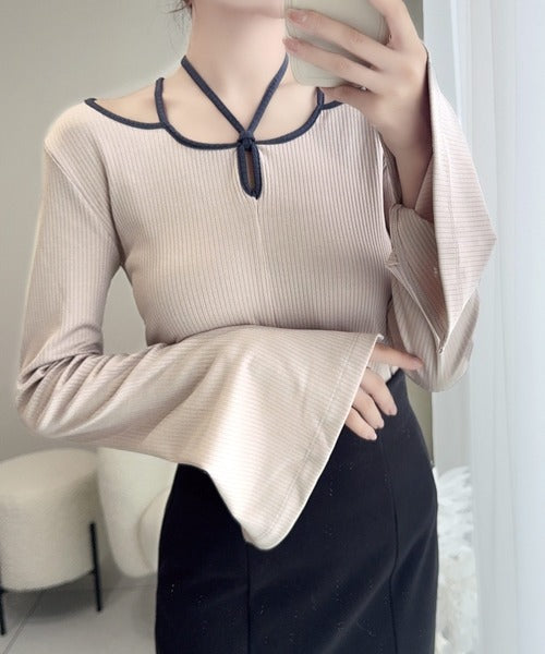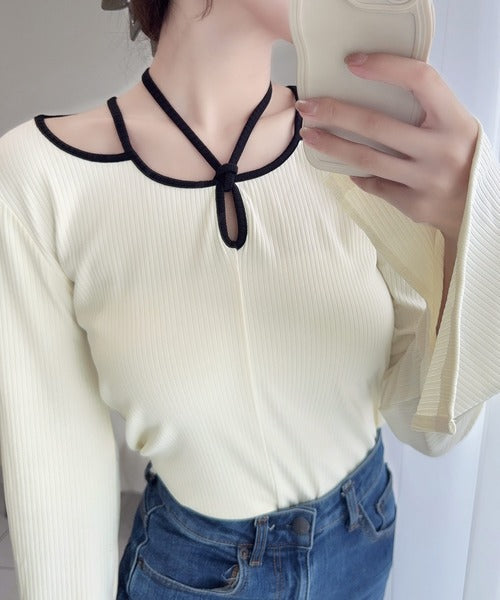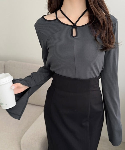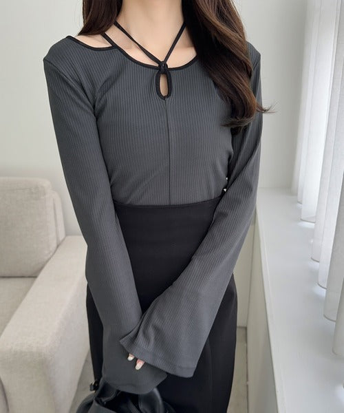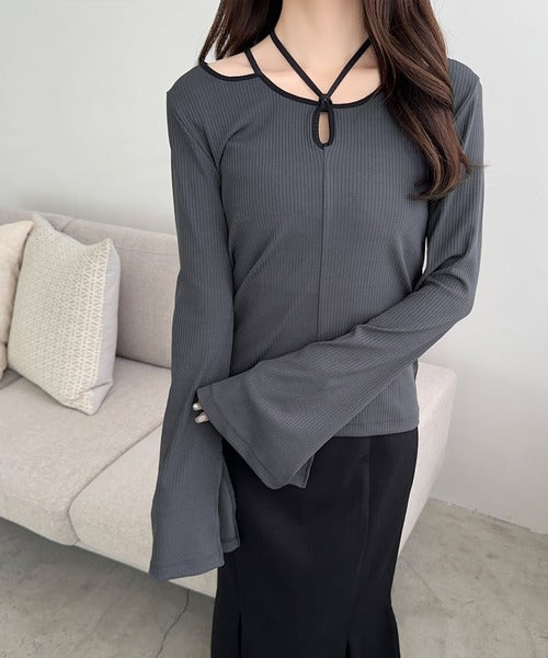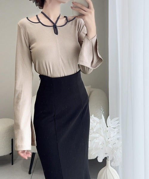 チョーカーデザインをあしらった周りと差をつけるリブトップスが登場!