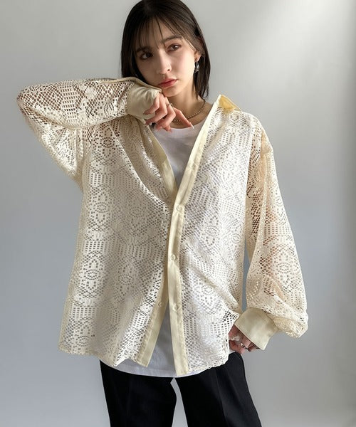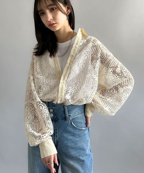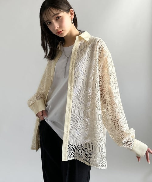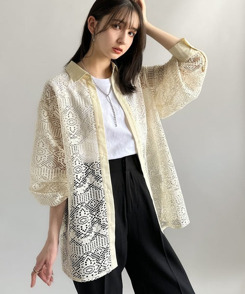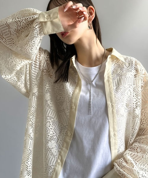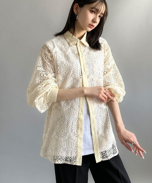 春夏にぴったりな透け感が特徴のレースシャツ。