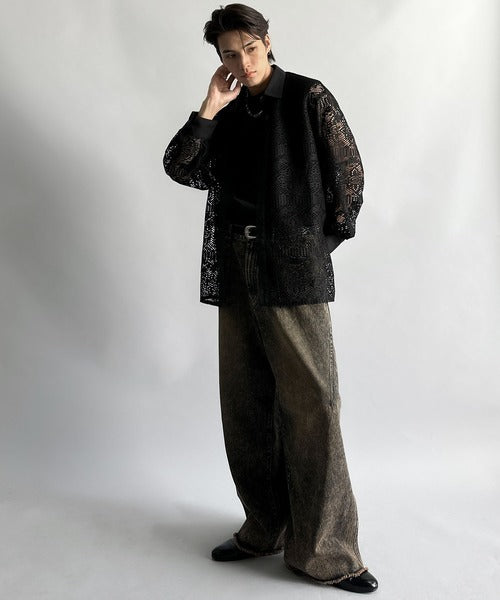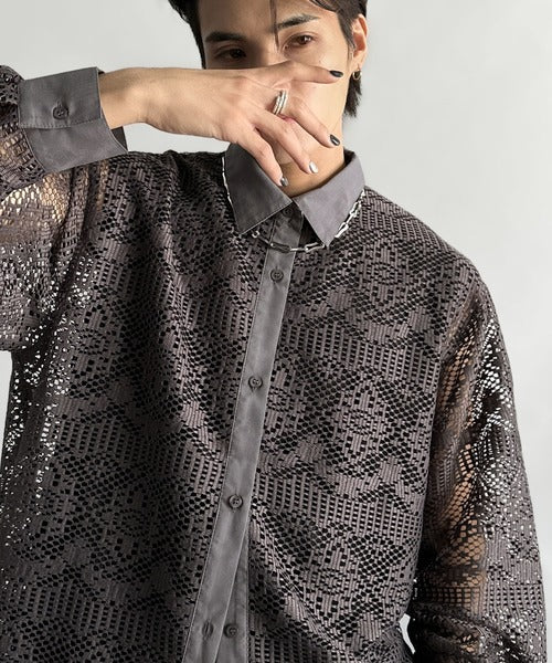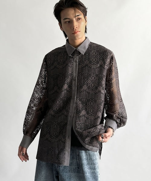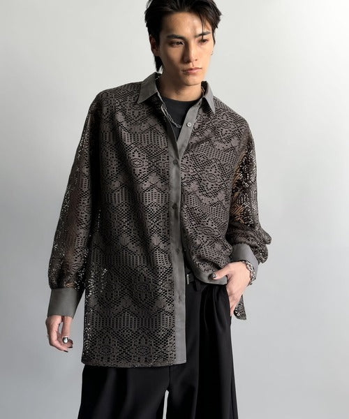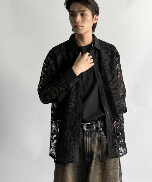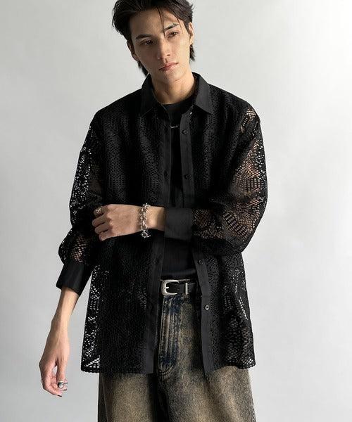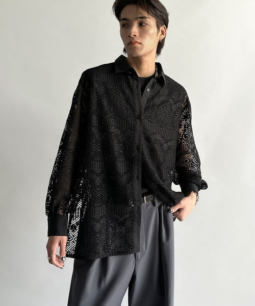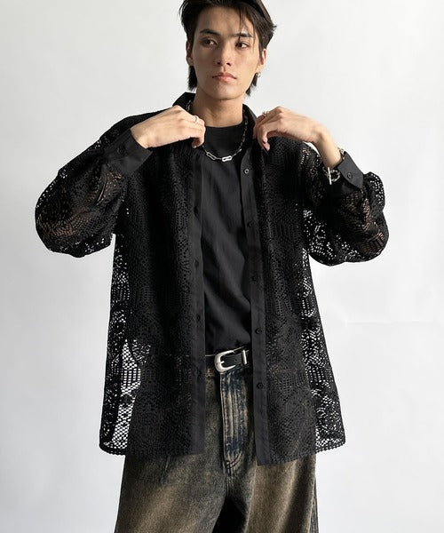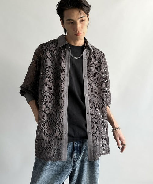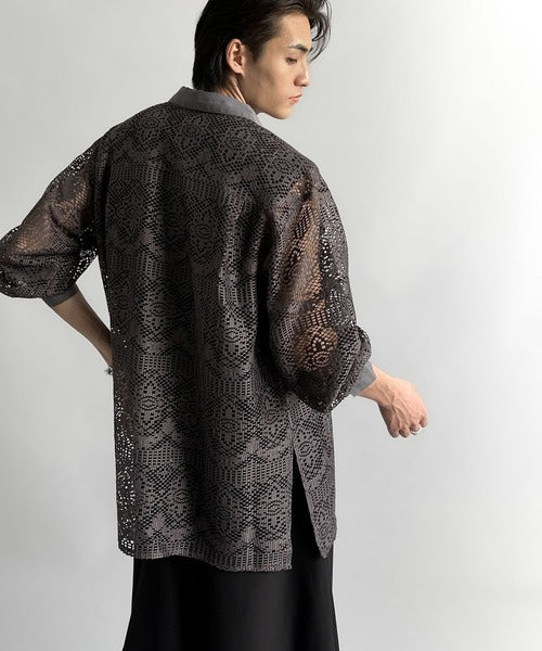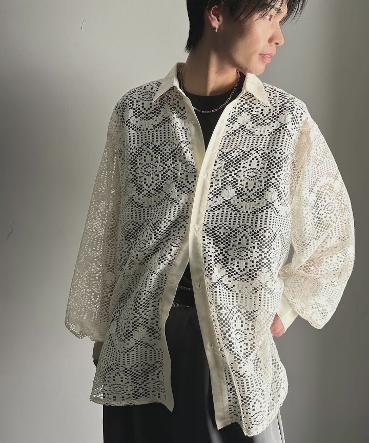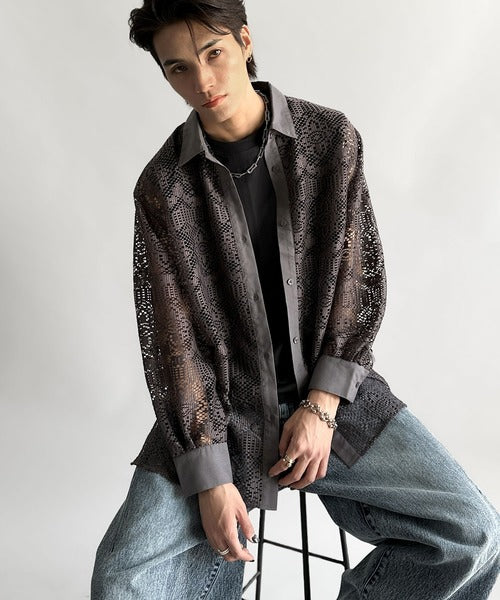 《メンズもレディースもお揃いで着れちゃう、レースオーバーシャツ》