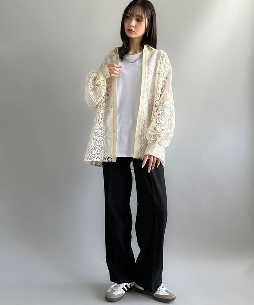 このレースオーバーサイズシャツは、色々なコーディネートに合わせられる優れものです◎