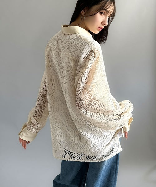 洗練された大人カジュアル。レースオーバーサイズシャツブラウス(長袖) cm1020223