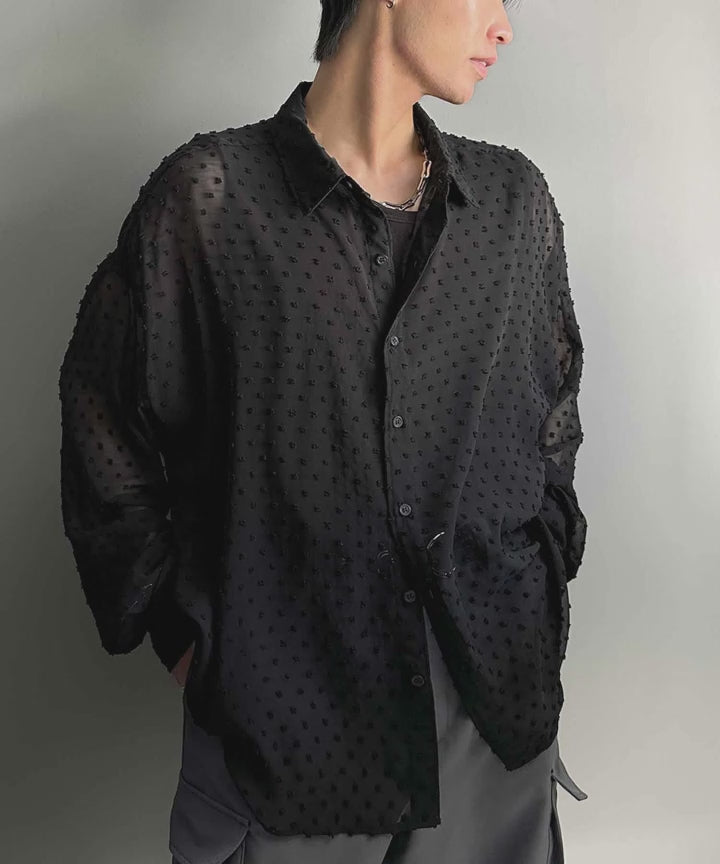 立体ドットが施されたシアー素材は、程よく肌を透かせるため、
