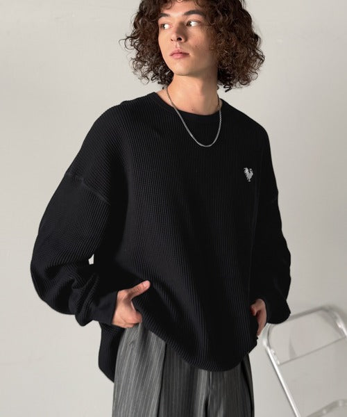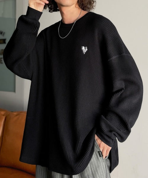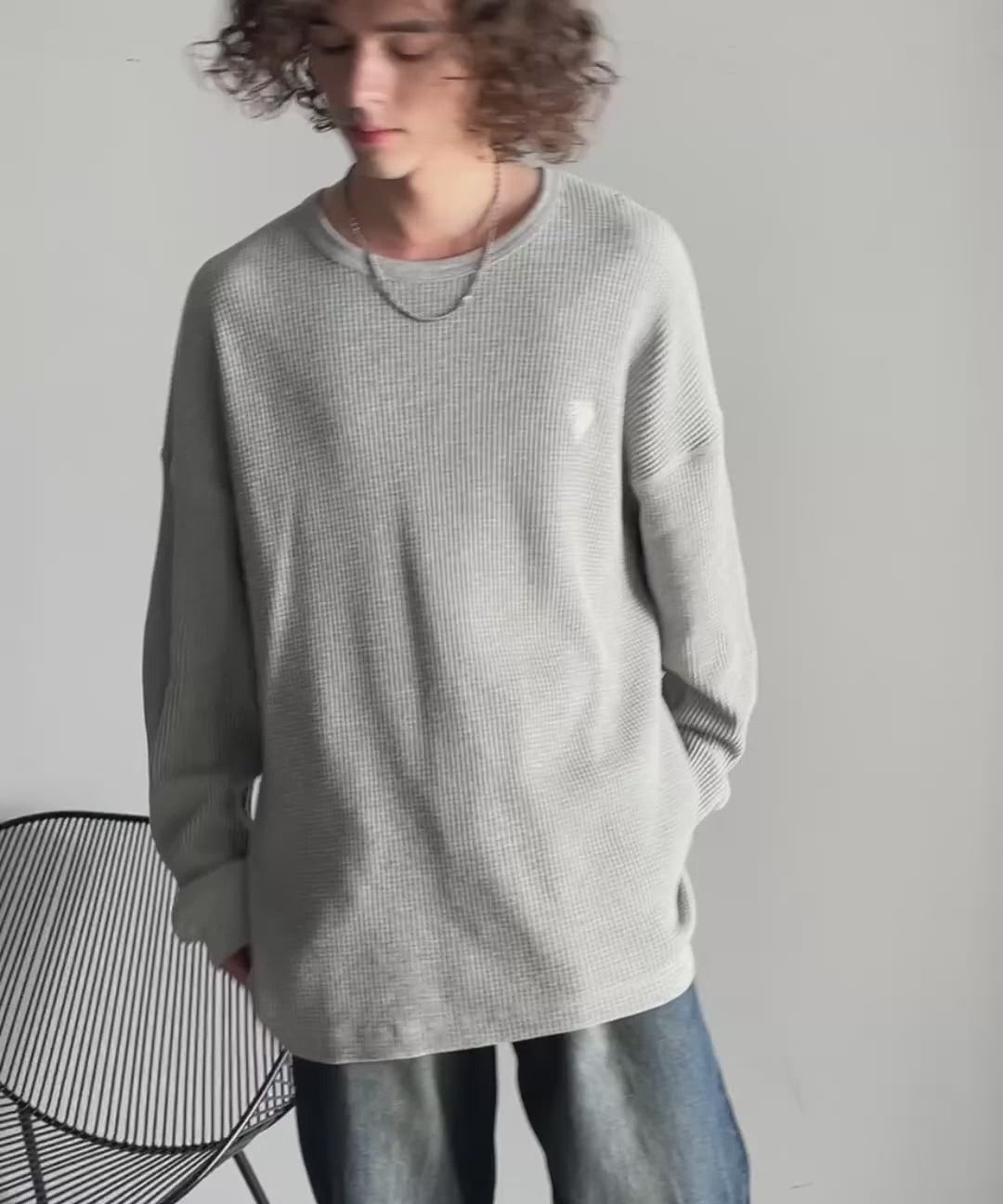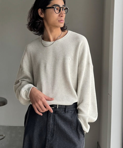 【Classical Origin】「ヘビーウェイト一択。」綿100%ワッフルクルーネックビッグTシャツ/Cotton 100% Waffle Crew Neck Big T-Shirt co0780014