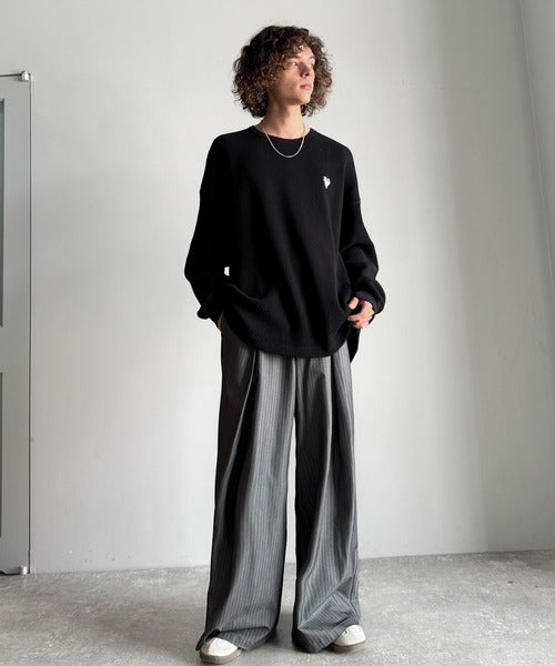 リラックス感のある余裕と程よい抜け感を演出。クルーネックは首回りをすっきり見せ、