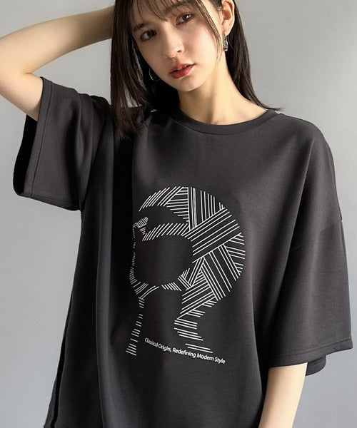 「視線を独り占め。」フェイスグラフィックオーバーサイズTシャツ/Face Graphic Oversized Double-Knit T-Shirt co1010006