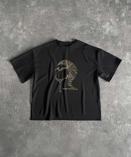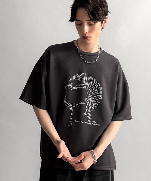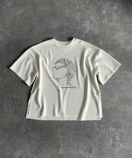 このフェイスグラフィックオーバーサイズ ダブルニットTシャツは、日常の幅広いシーンに活躍する万能アイテム。