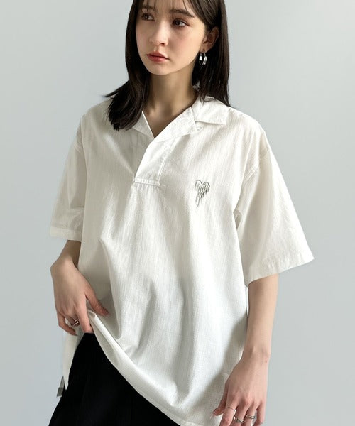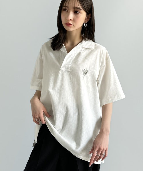 洗練されたボックスシルエットに、目を引くハート刺繍。