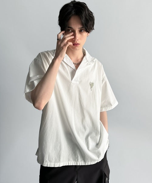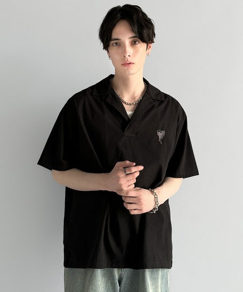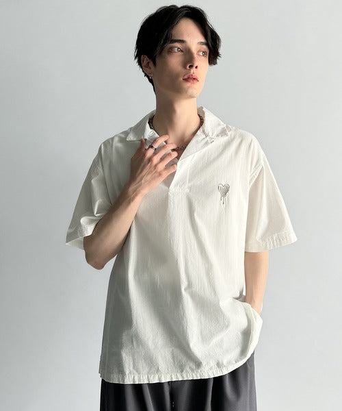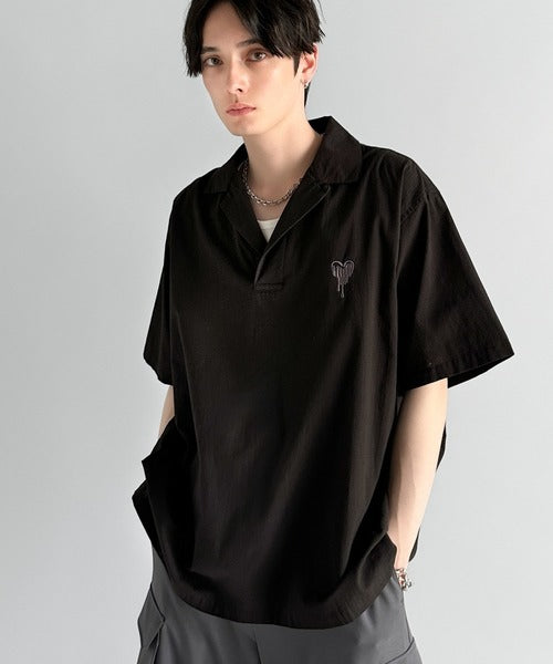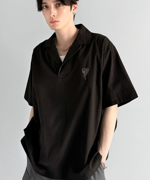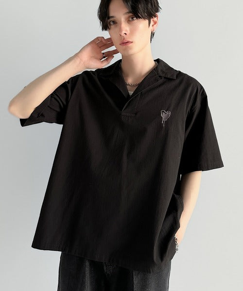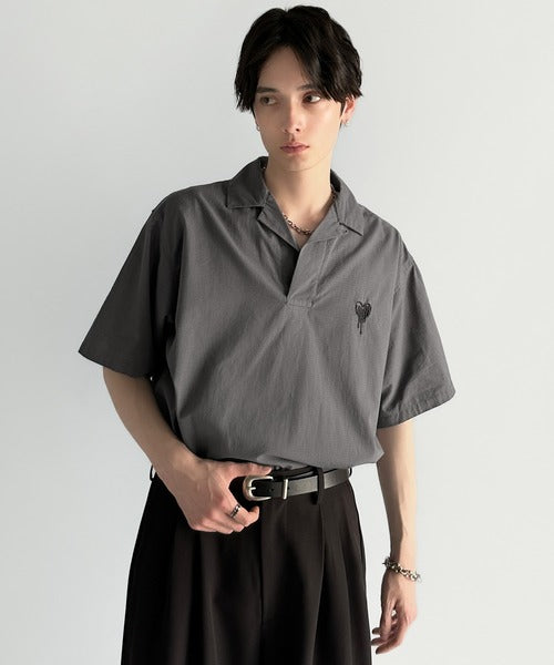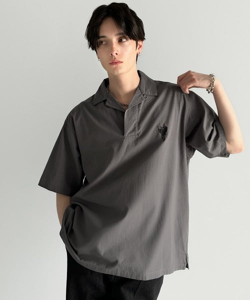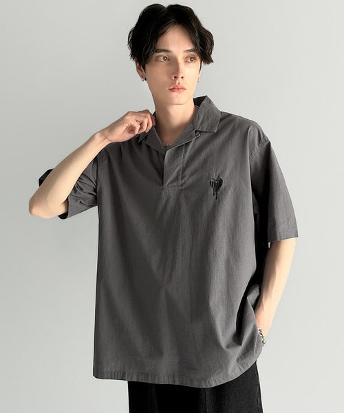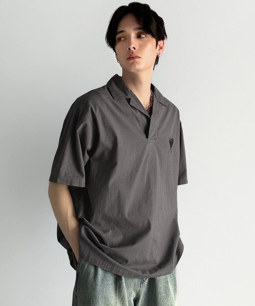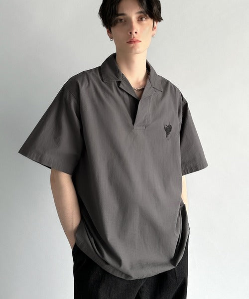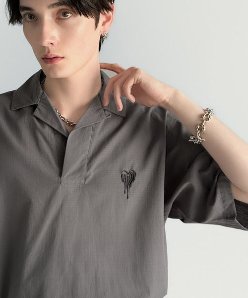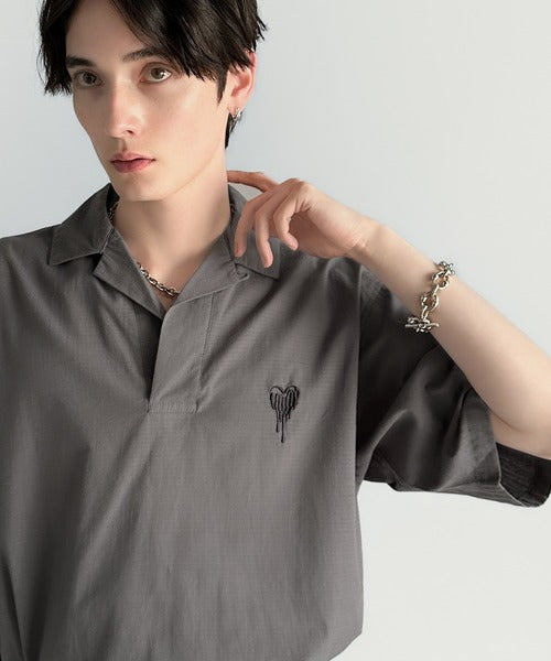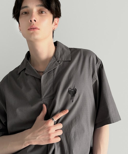 「ハートを撃ち抜く。」コットン100%リップストップ素材オープンカラーシャツ/Cotton100% Ripstop Open Collar Pullover Shirt co1150012