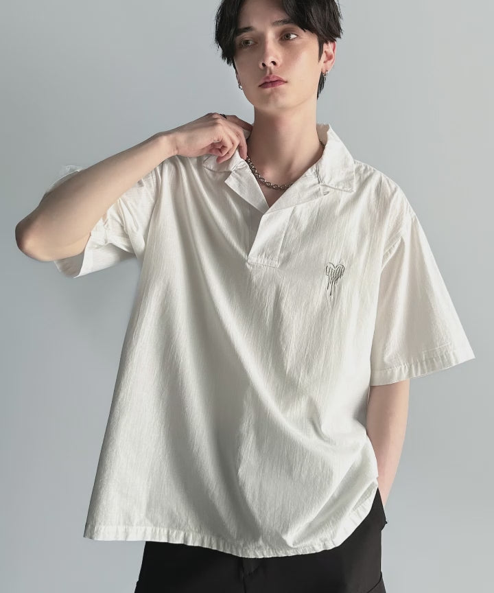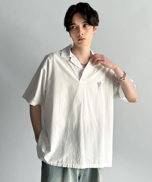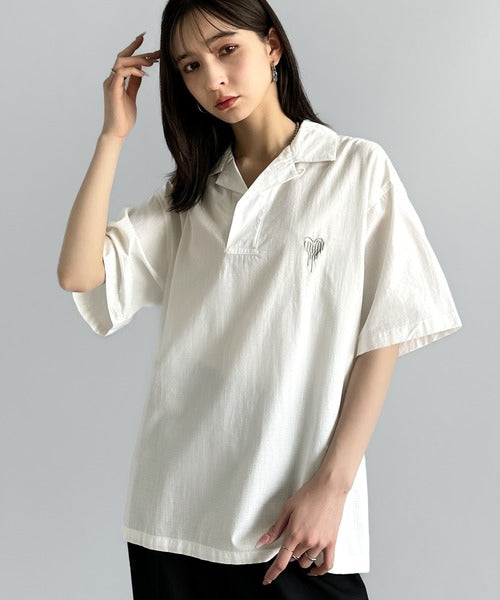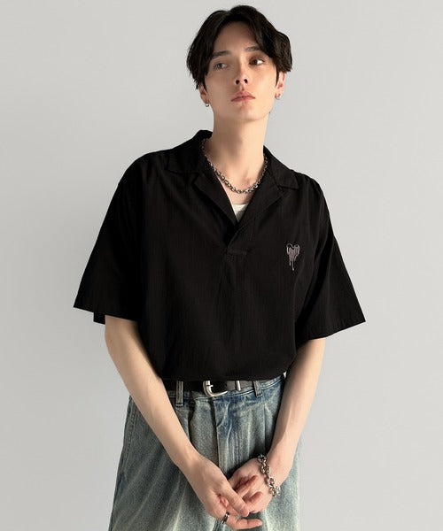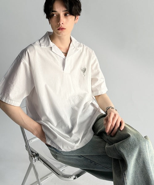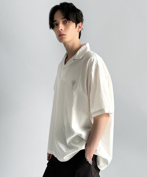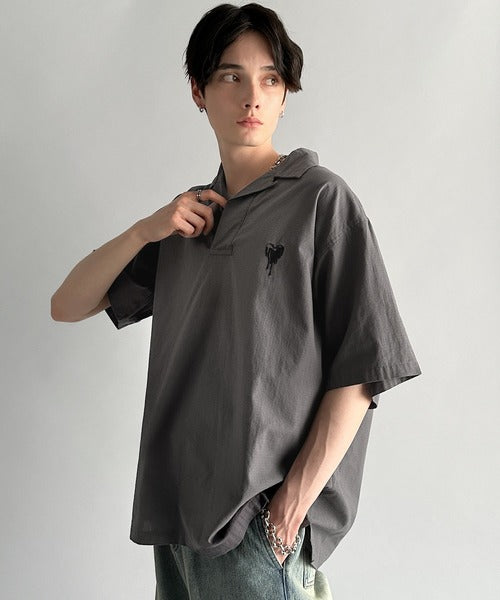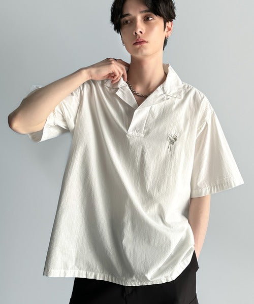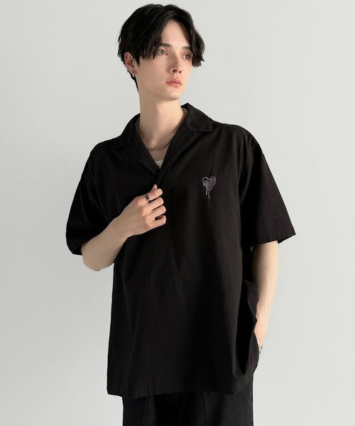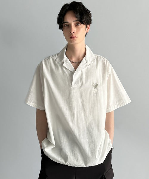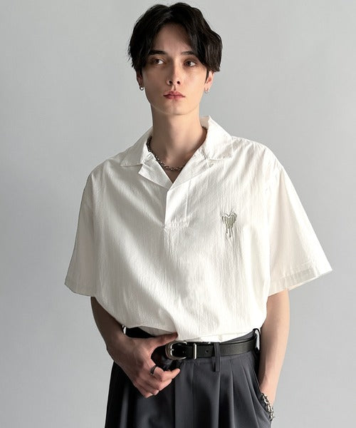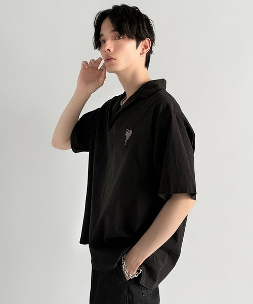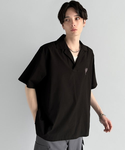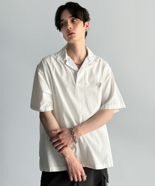 「ハートを撃ち抜く。」コットン100%リップストップ素材オープンカラーシャツ/Cotton100% Ripstop Open Collar Pullover Shirt co1150012