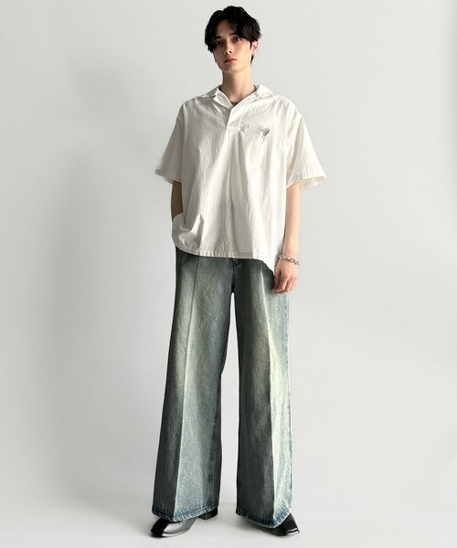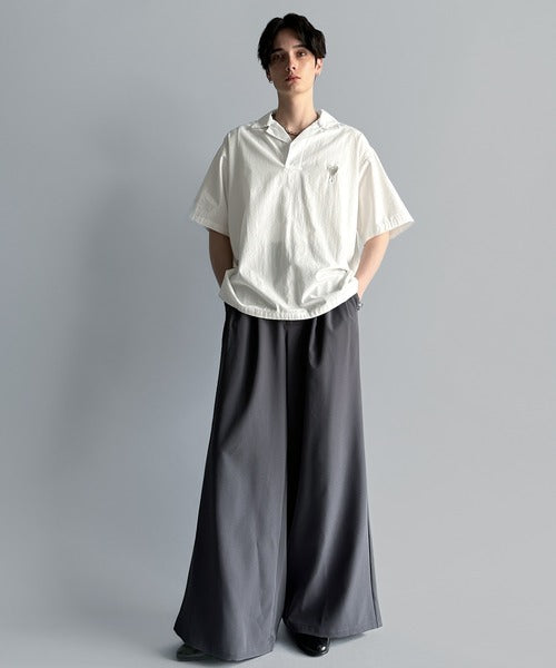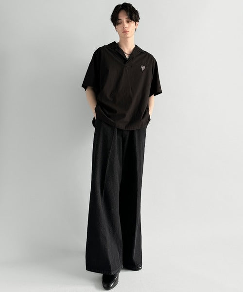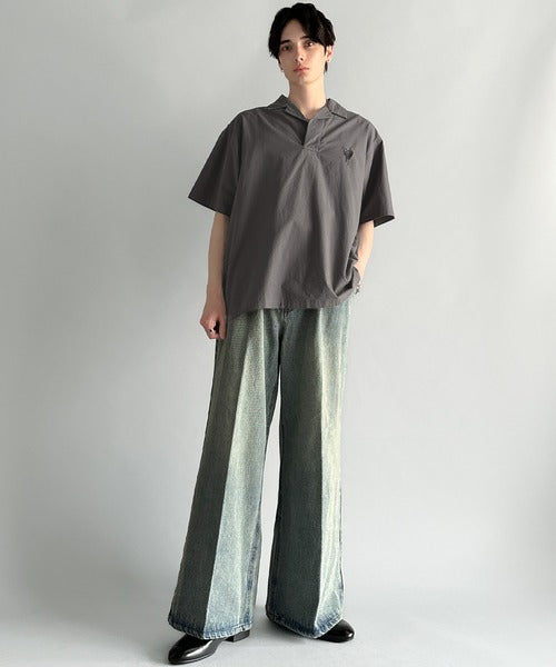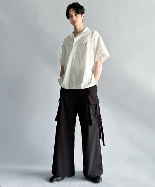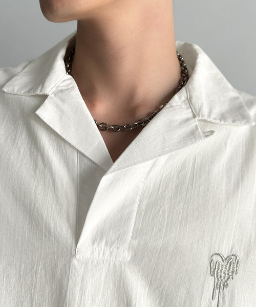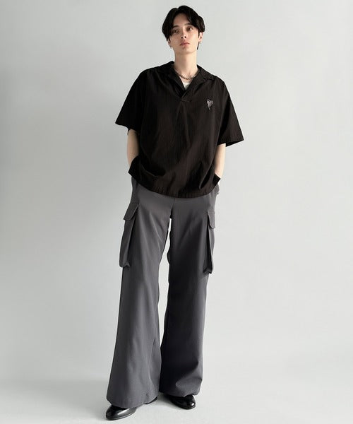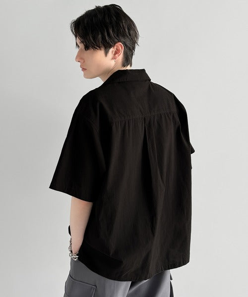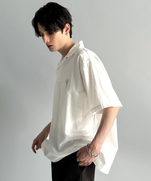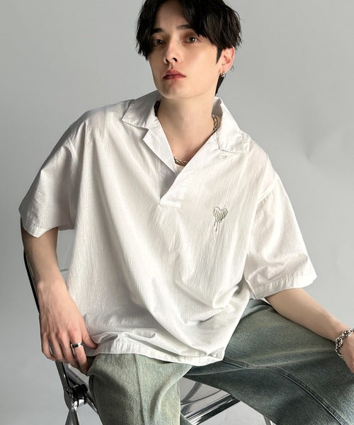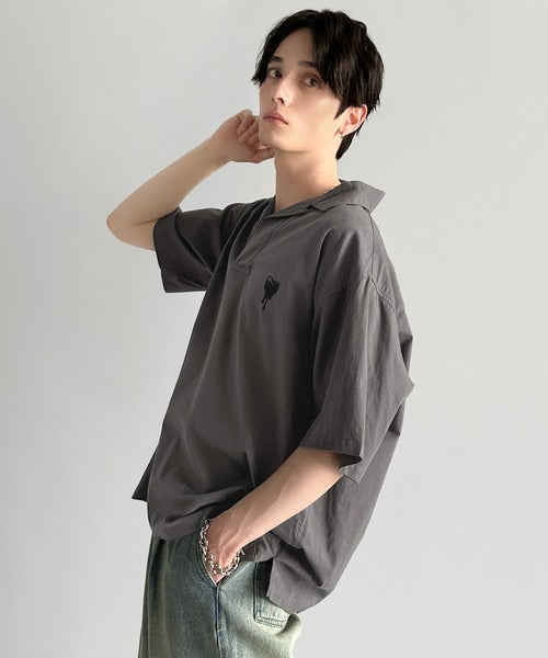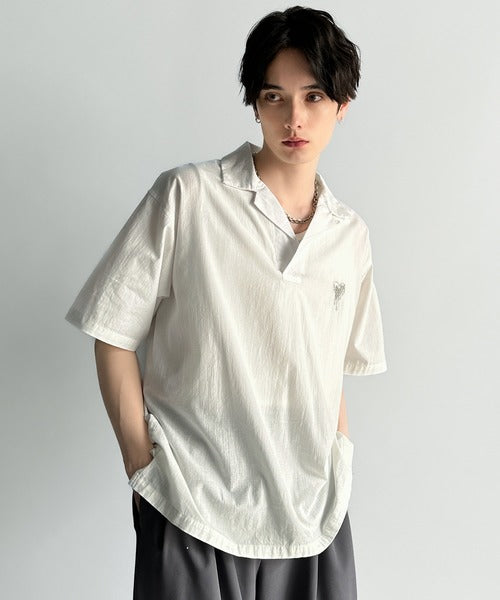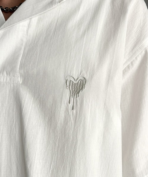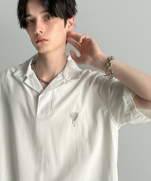 「ハートを撃ち抜く。」コットン100%リップストップ素材オープンカラーシャツ/Cotton100% Ripstop Open Collar Pullover Shirt co1150012