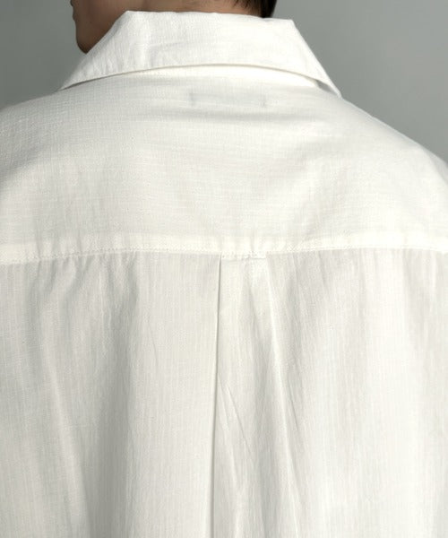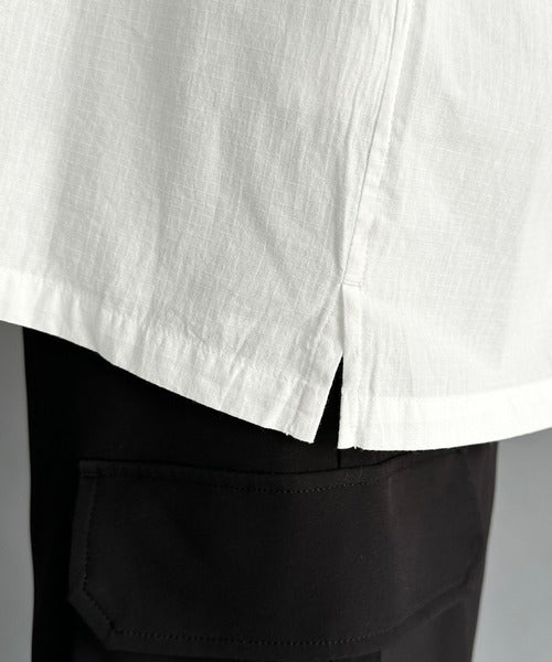 コットン100%リップストップ素材オープンカラープルオーバーシャツ」