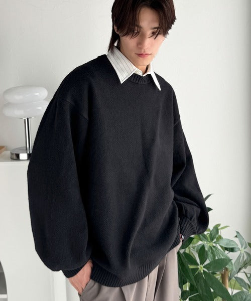 ゆったりとしたサイズ感とボリュームのある袖は、シンプルながら存在感のあるニットです。