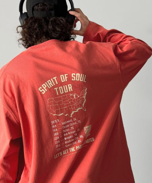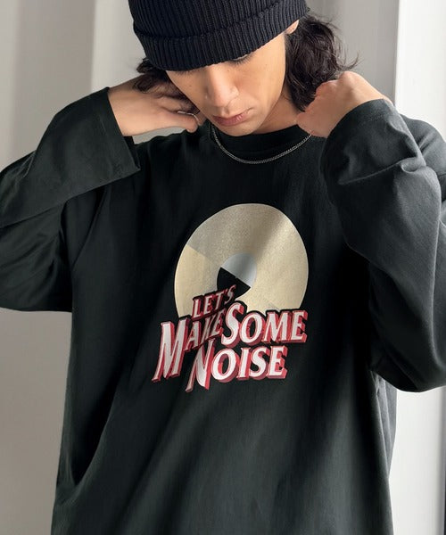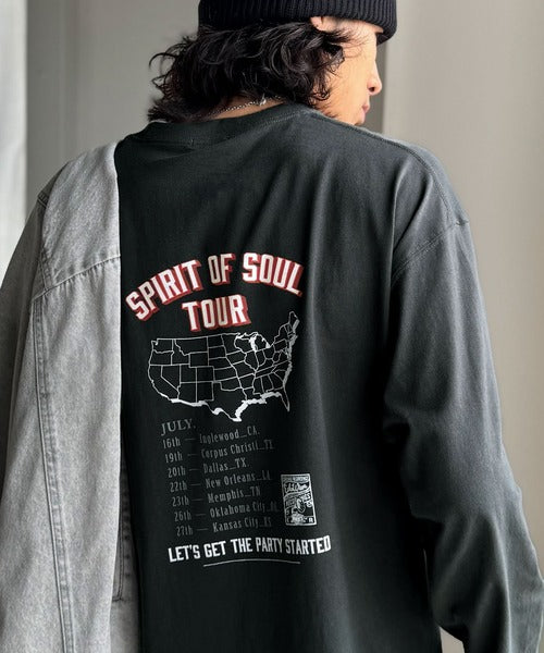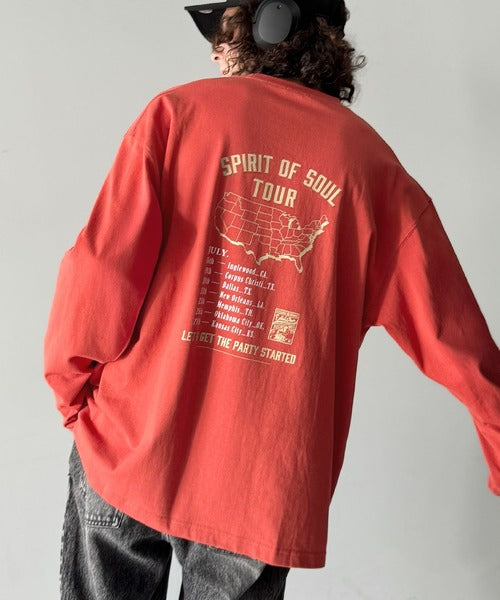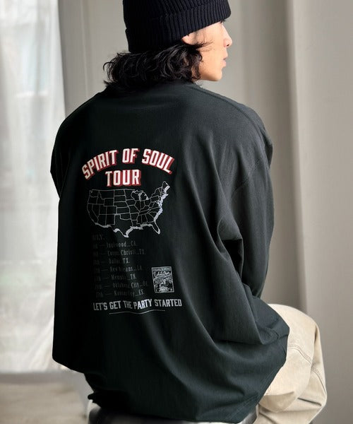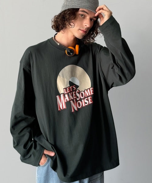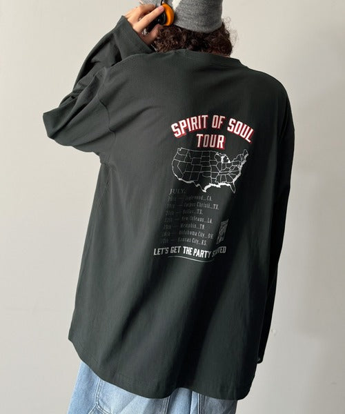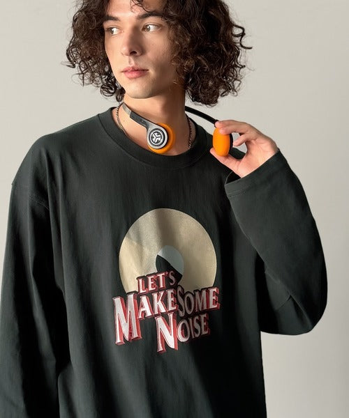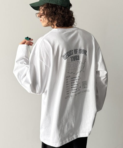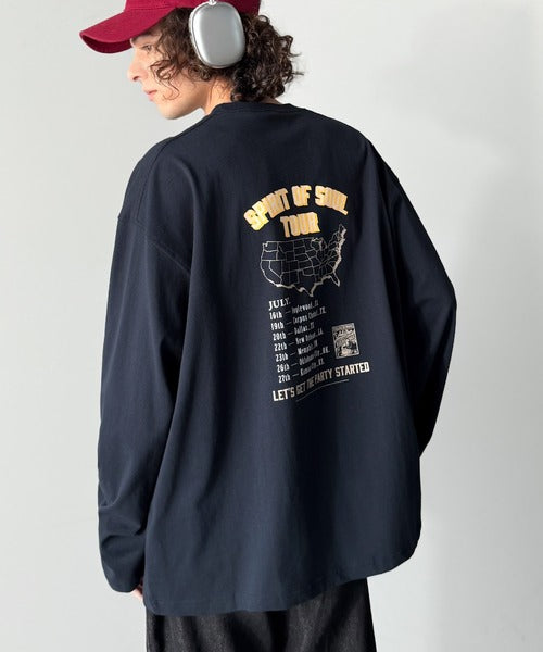 《JaVaジャバコラボ》「前後抜かりなし。」綿100%レコード盤レトロツアーロゴTシャツ(長袖) jo1150065