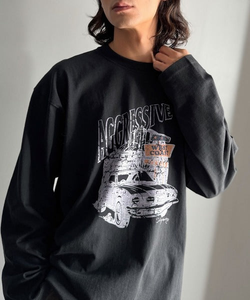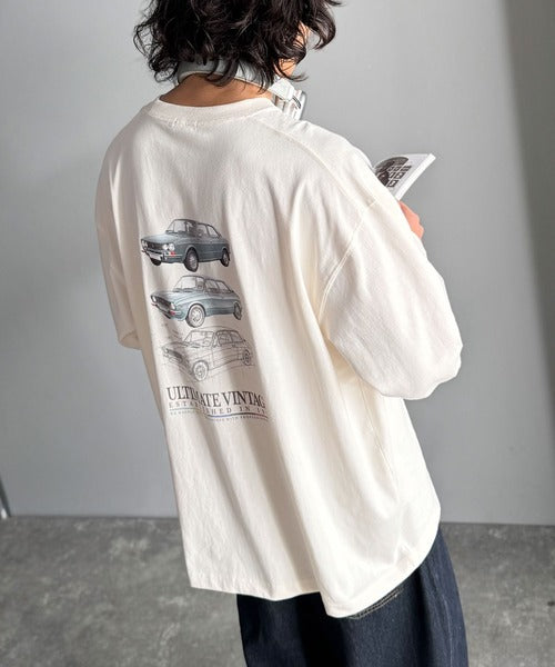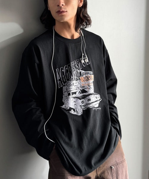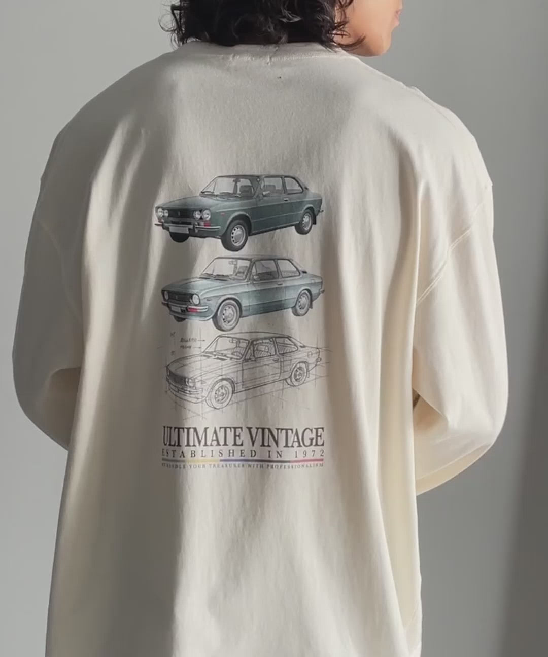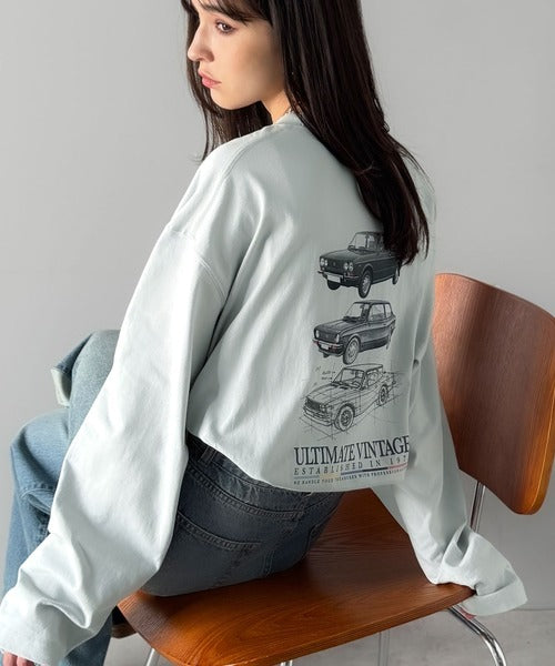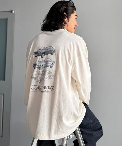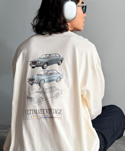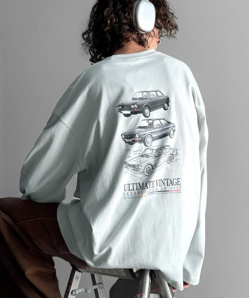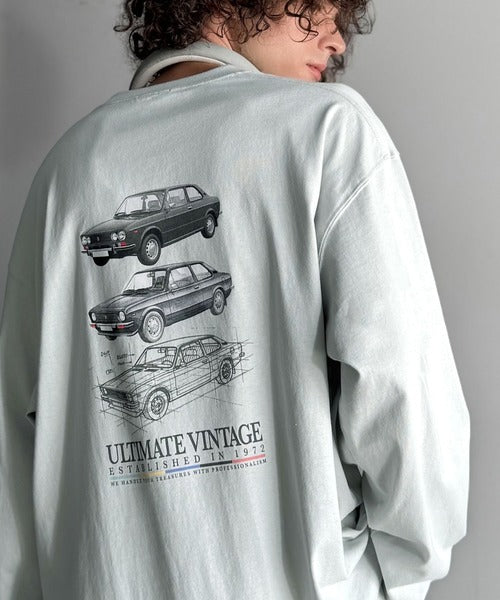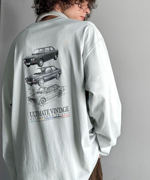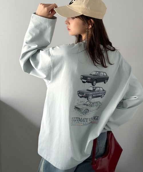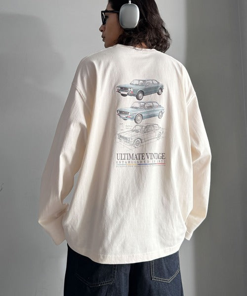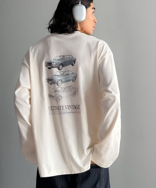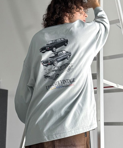 存在感のあるクラシックカーのグラフィックを施したロングスリーブTシャツ。