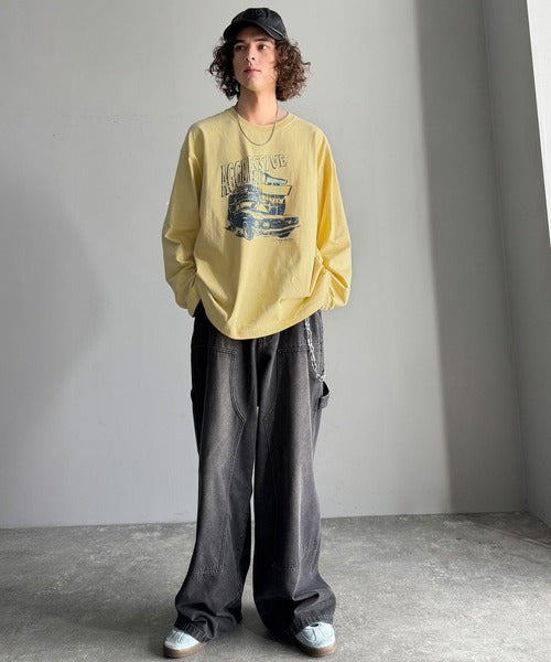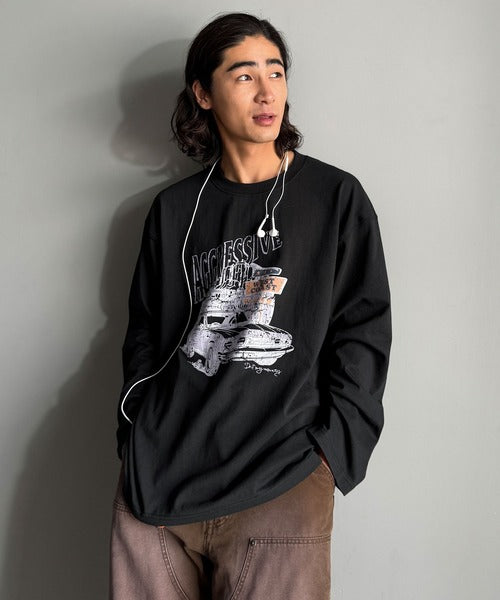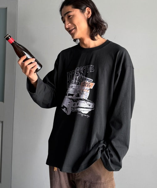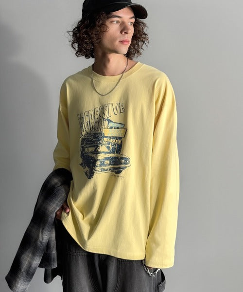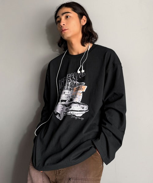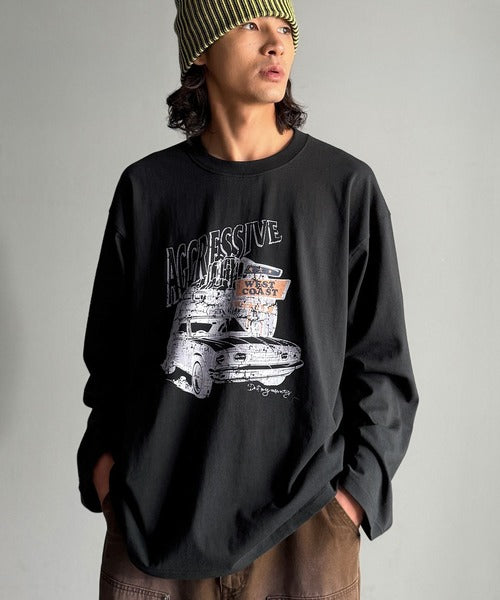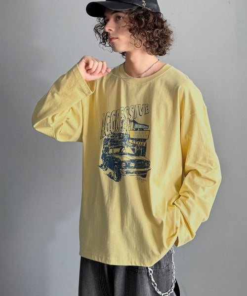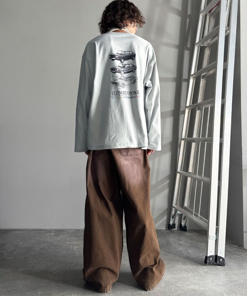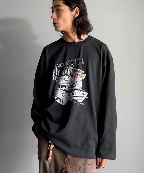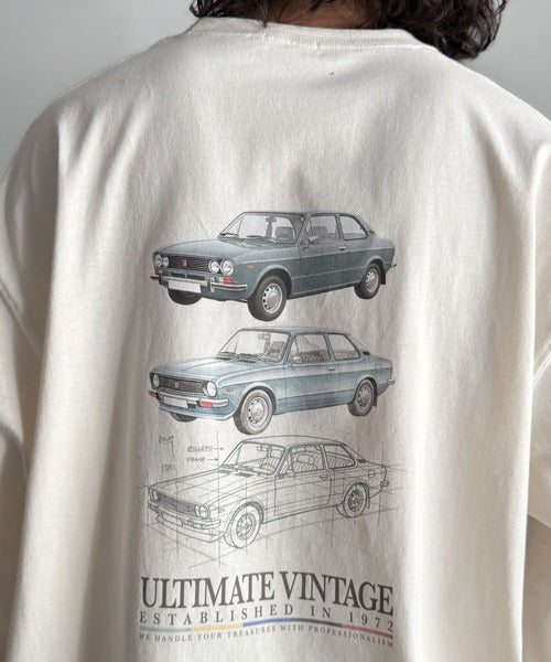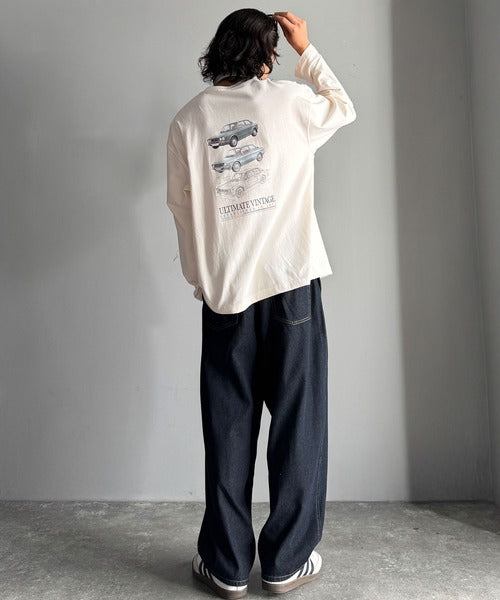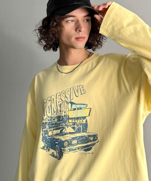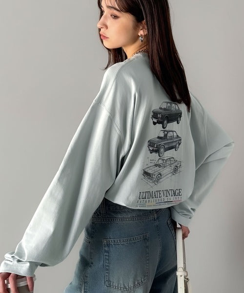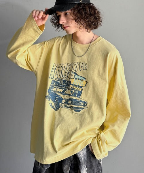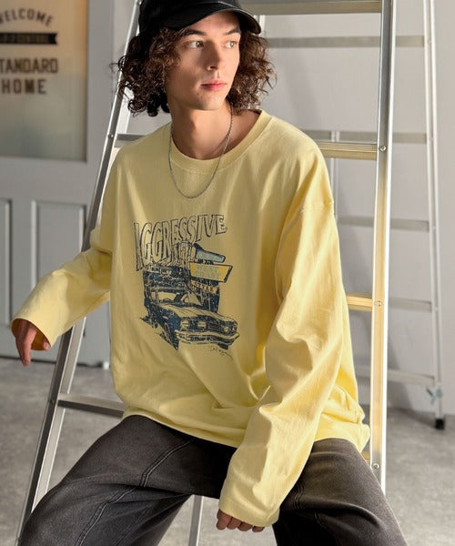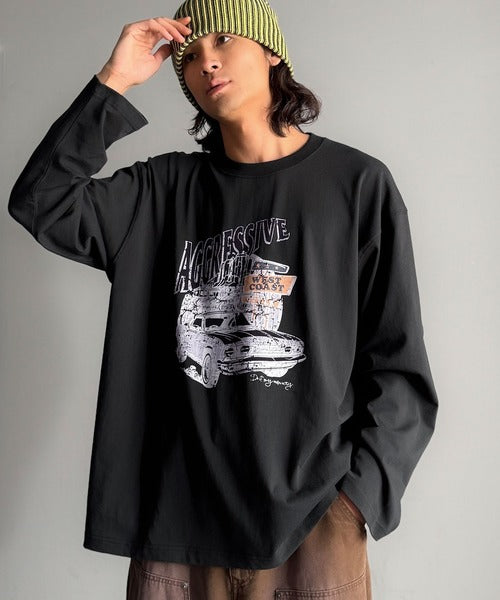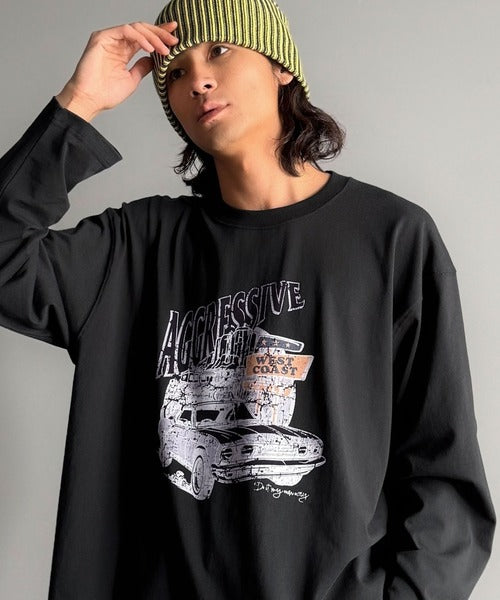 存在感のあるクラシックカーのグラフィックを施したロングスリーブTシャツ。