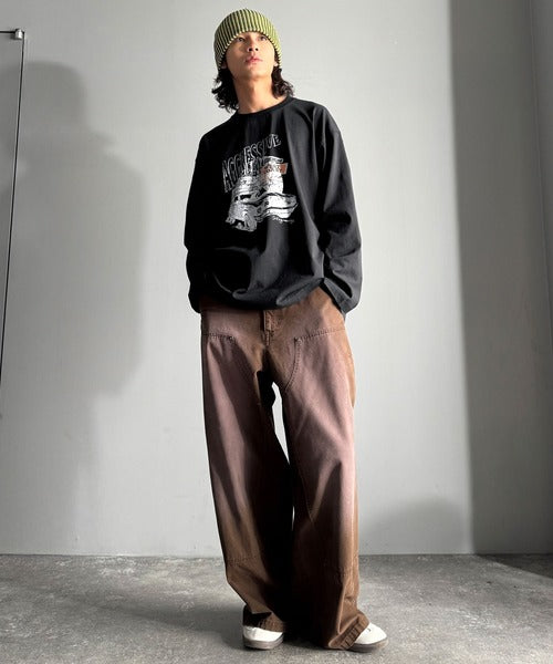存在感のあるグラフィックがコーディネートの主役となり、カジュアルからストリートスタイルまで幅広く対応可能。