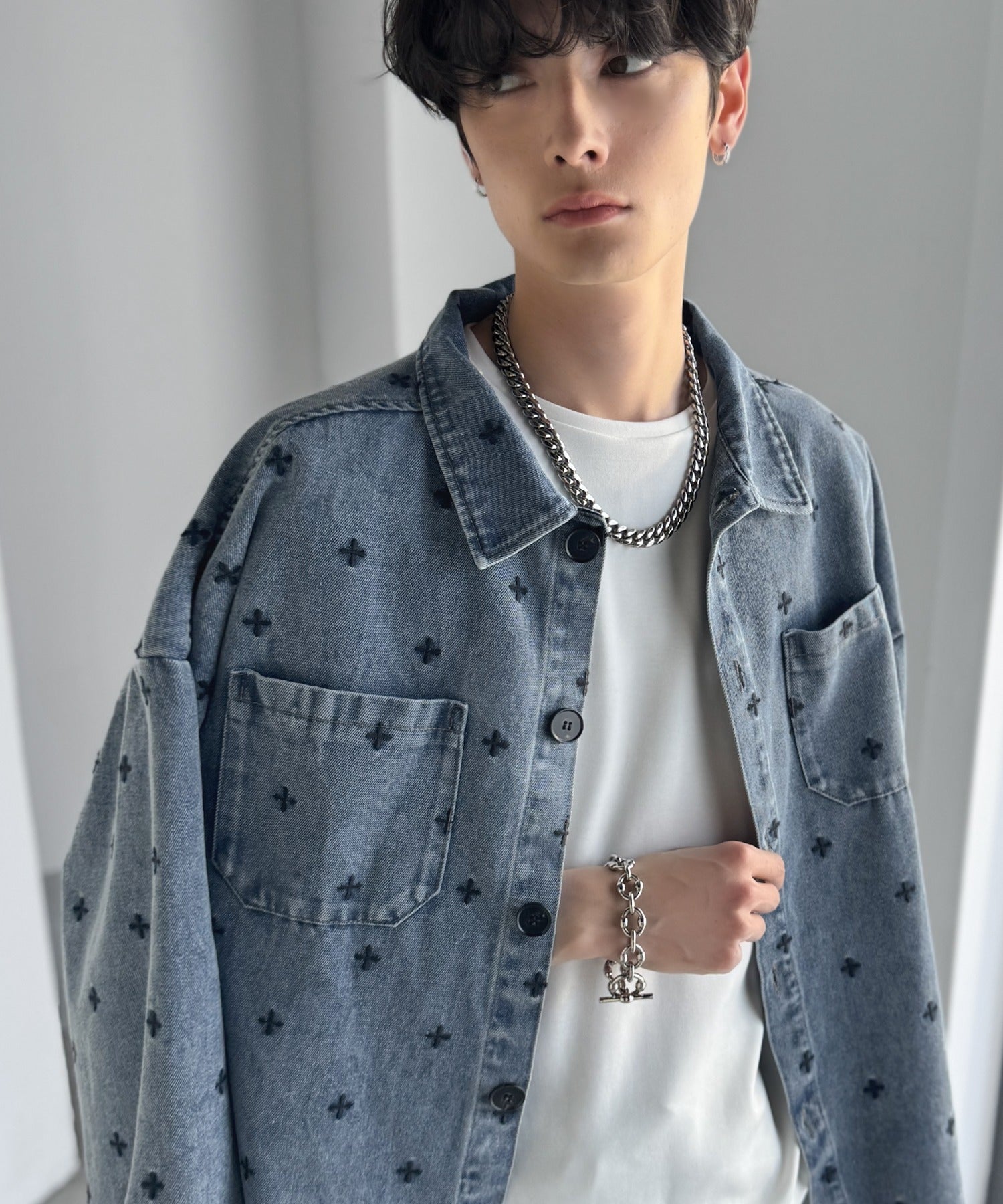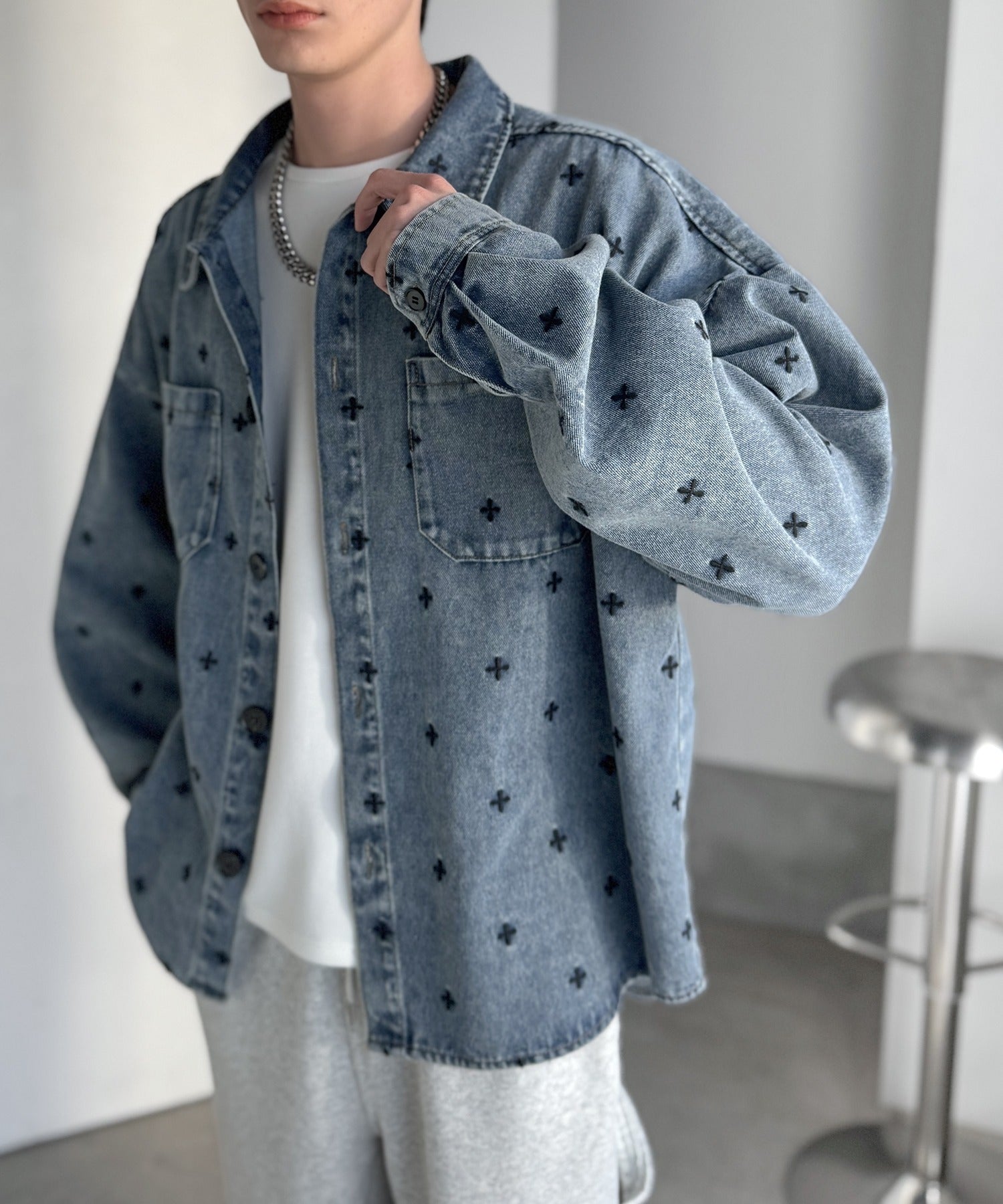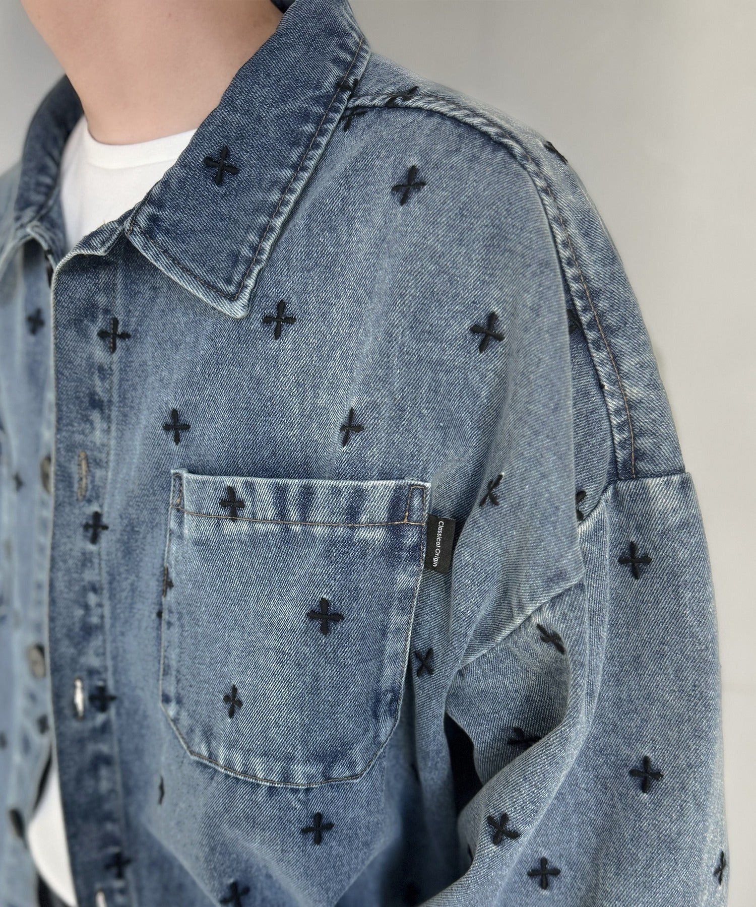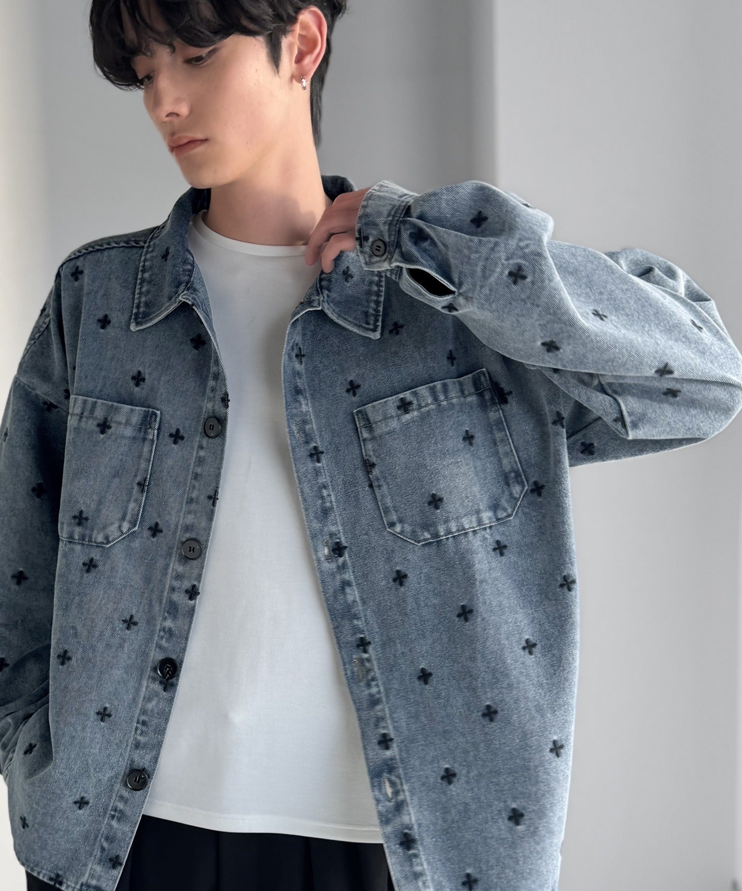 「シンプル以上、主張しすぎない存在感。」総柄刺繍デニムシャツジャケット/All-Over Embroidered Denim Shirt Jacket co1010050