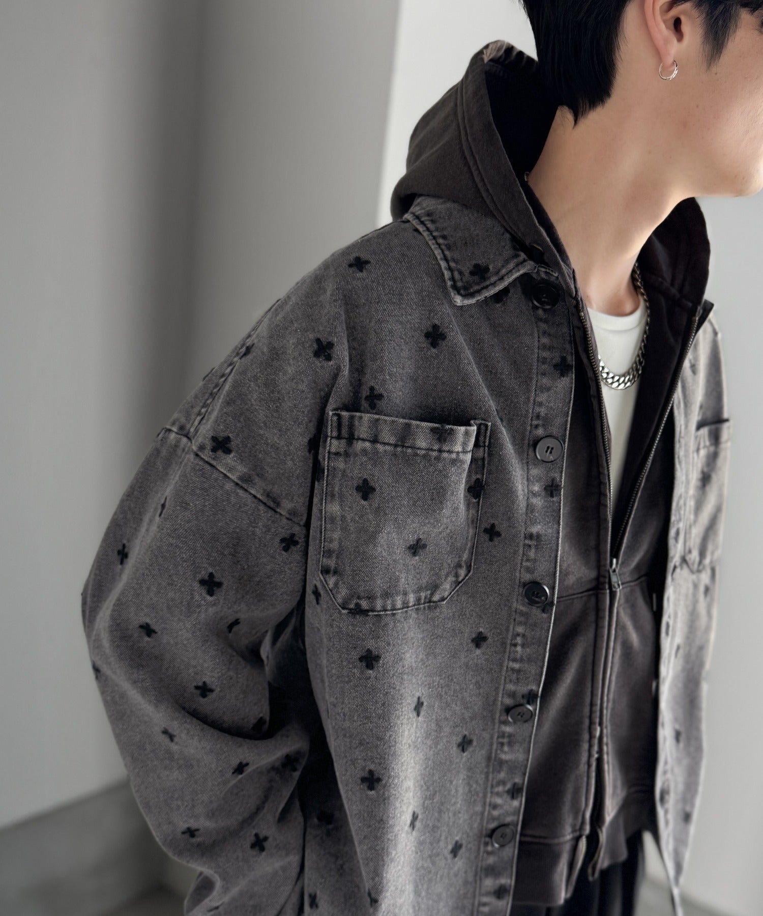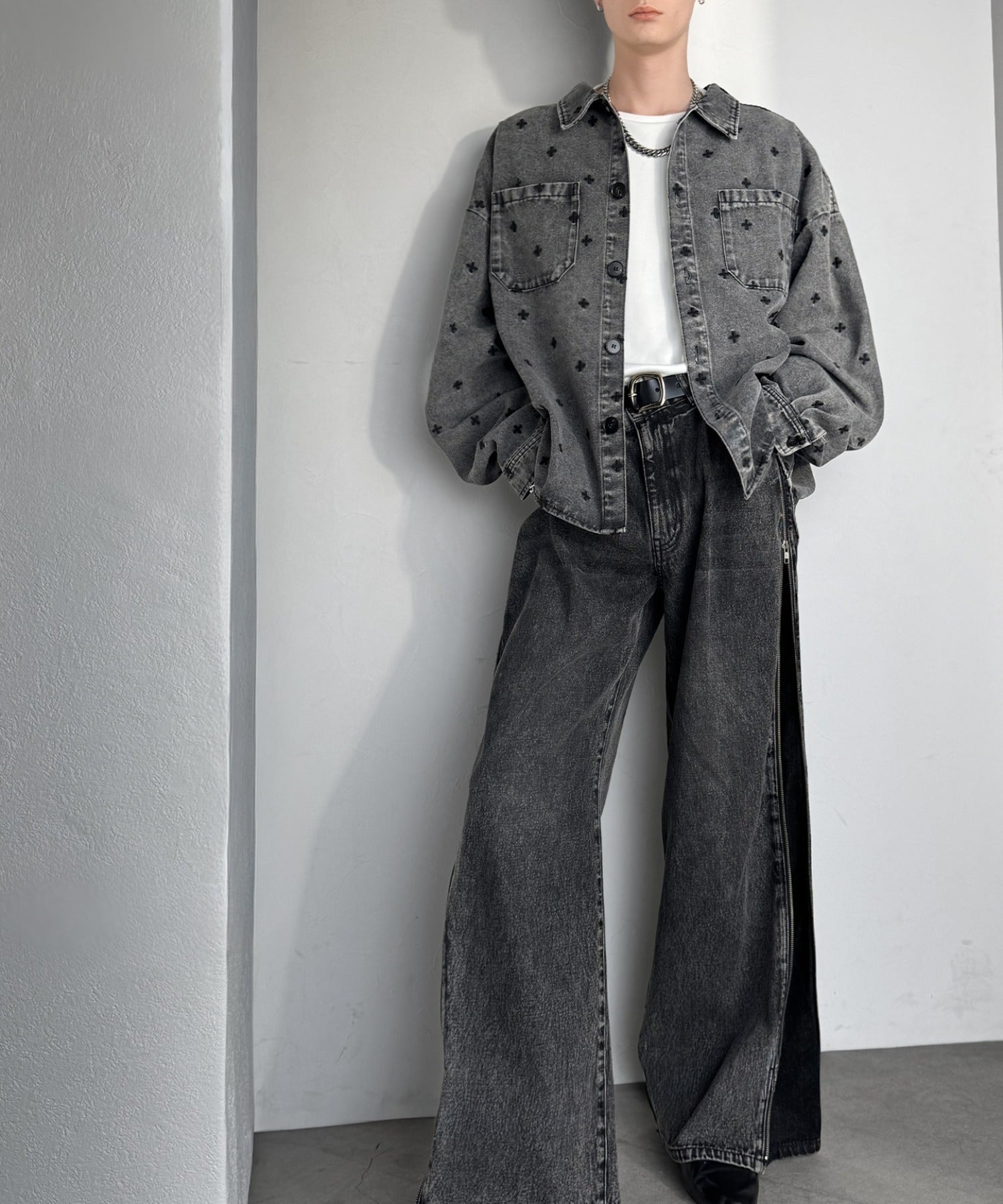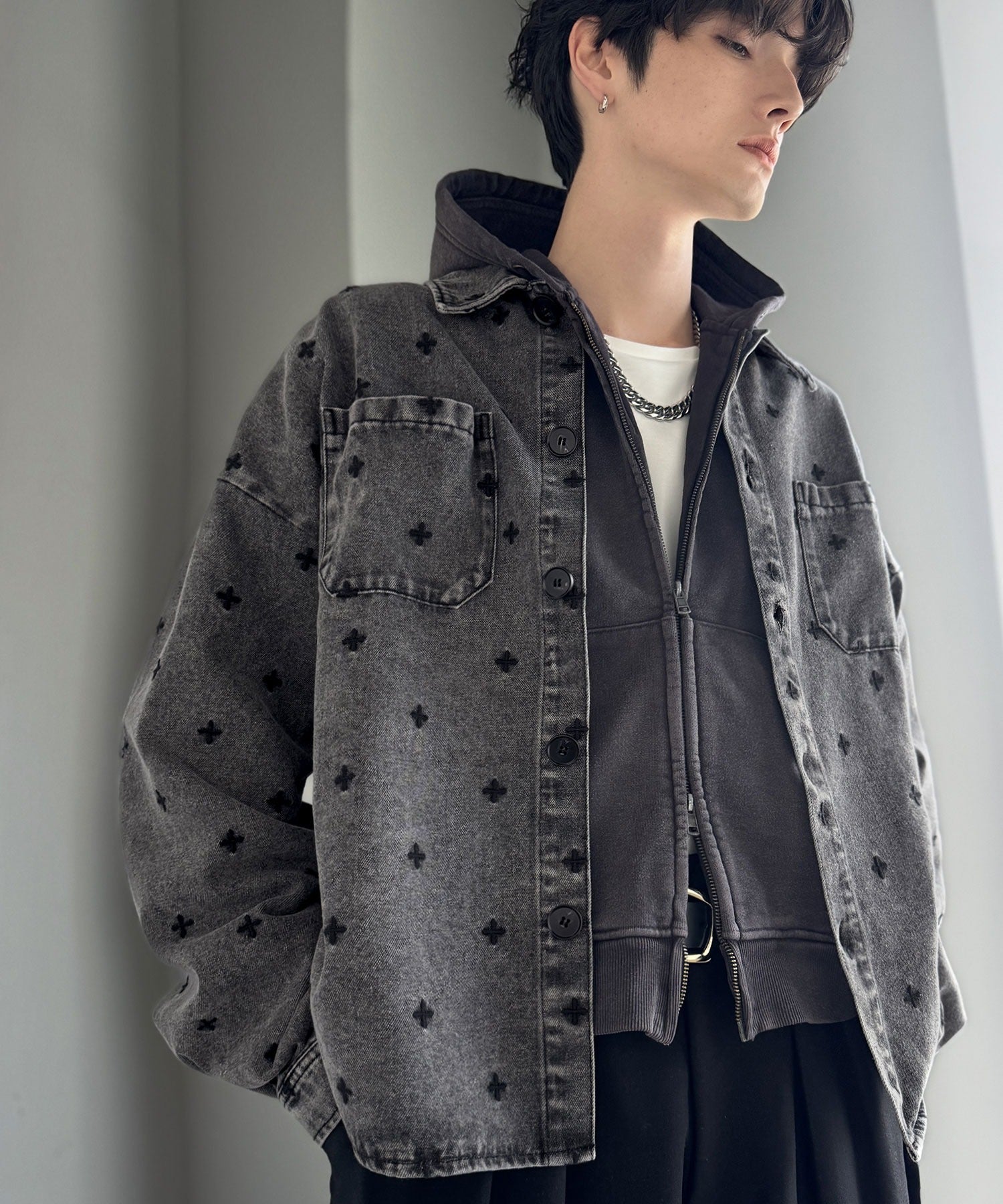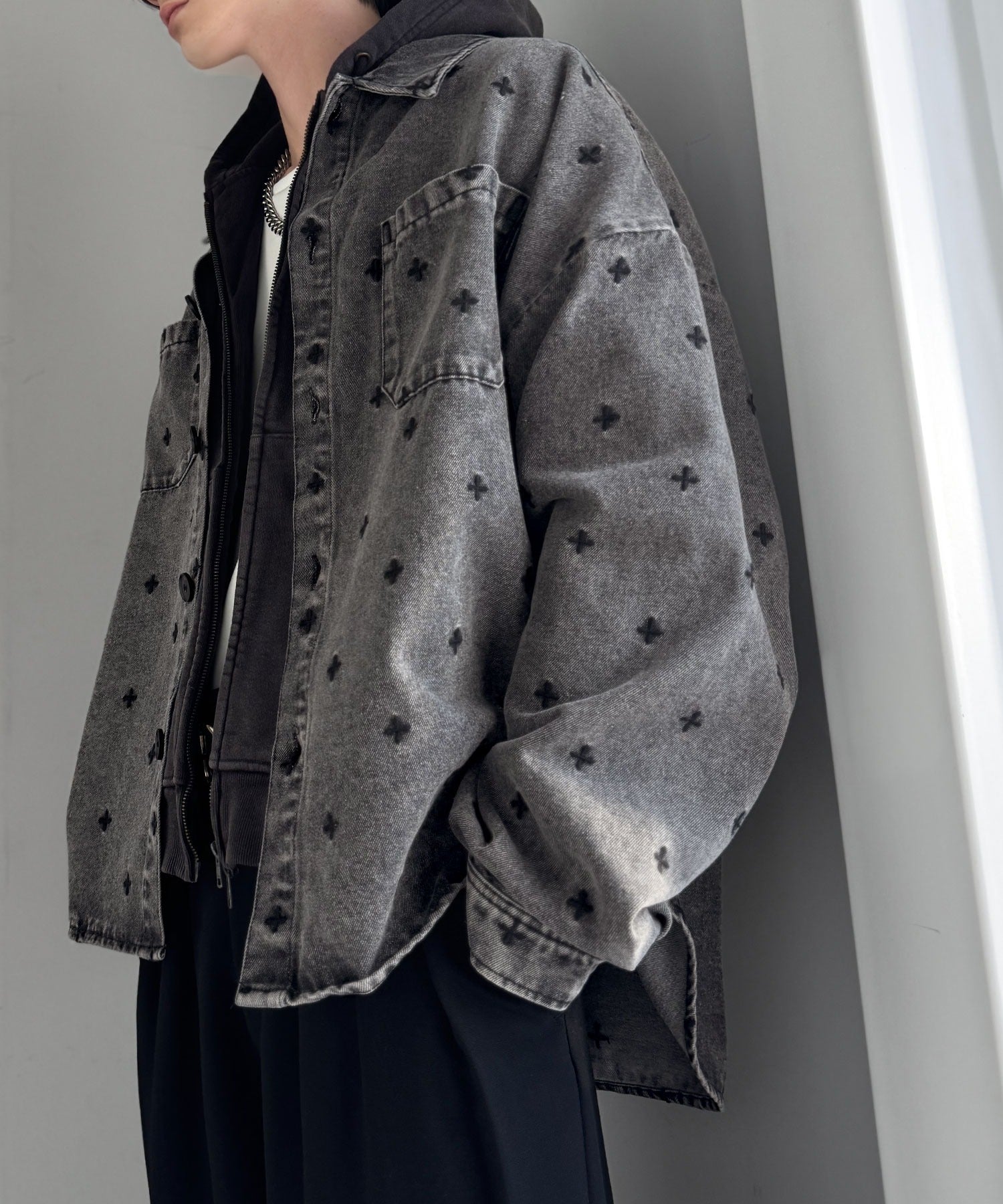 「シンプル以上、主張しすぎない存在感。」総柄刺繍デニムシャツジャケット/All-Over Embroidered Denim Shirt Jacket co1010050