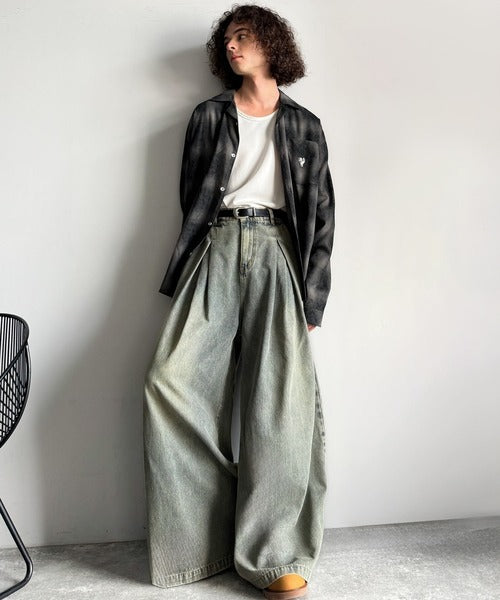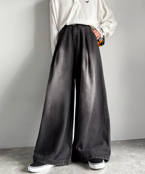 「Unique Three-Tuck Super Wide Denim/変形3タックスーパーワイドデニム」