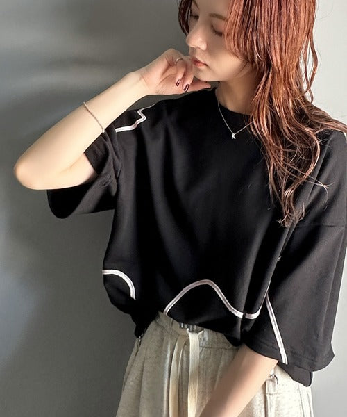 春夏の新定番!ウェーブコード刺繍ハーフスリーブpaeanトップス cm1260418