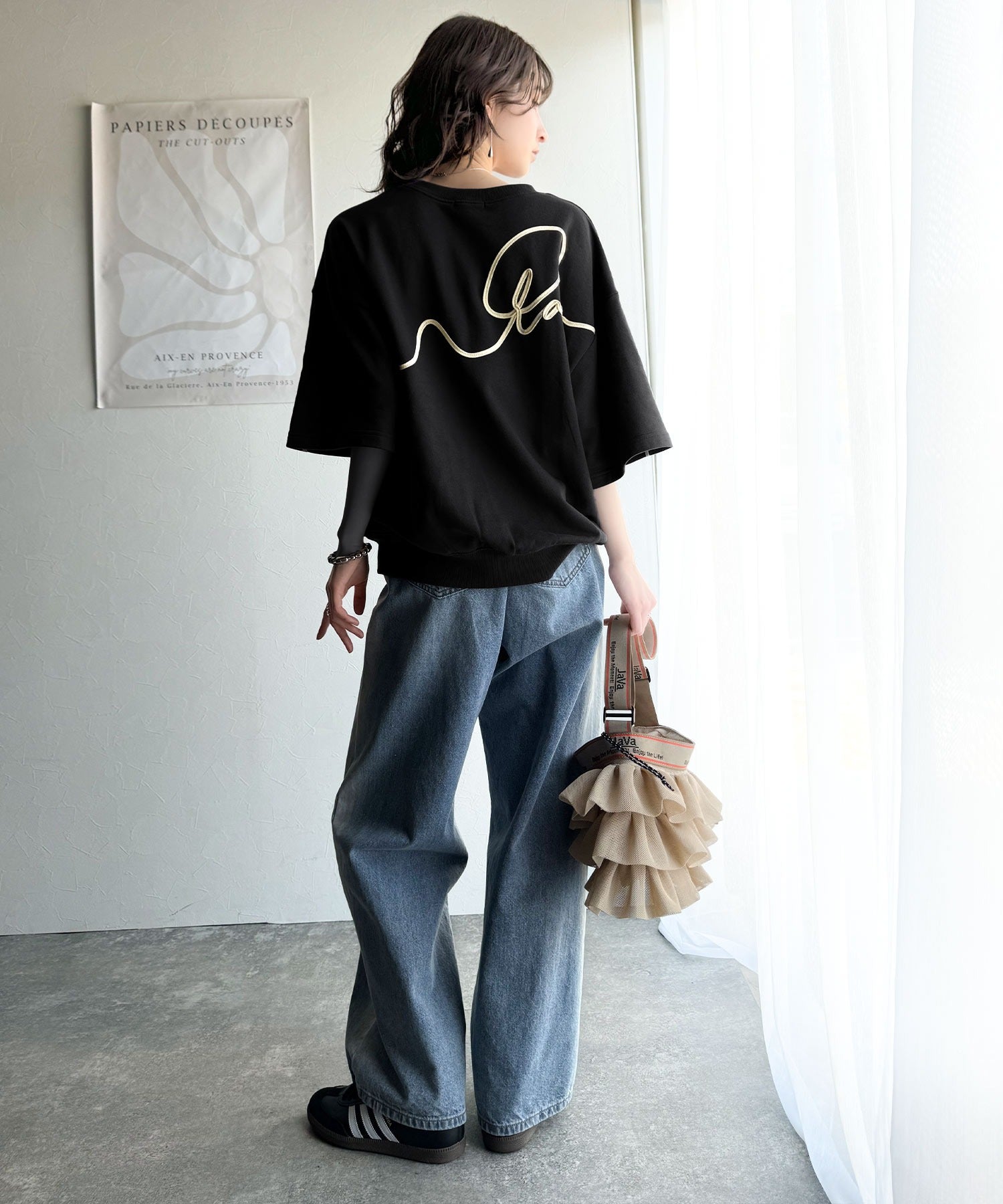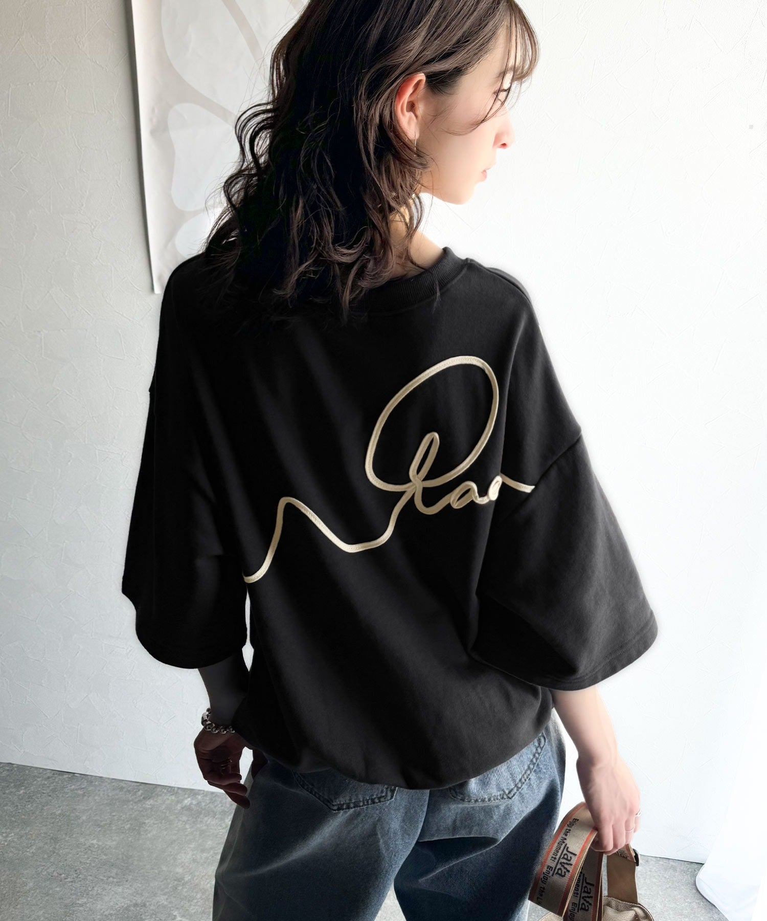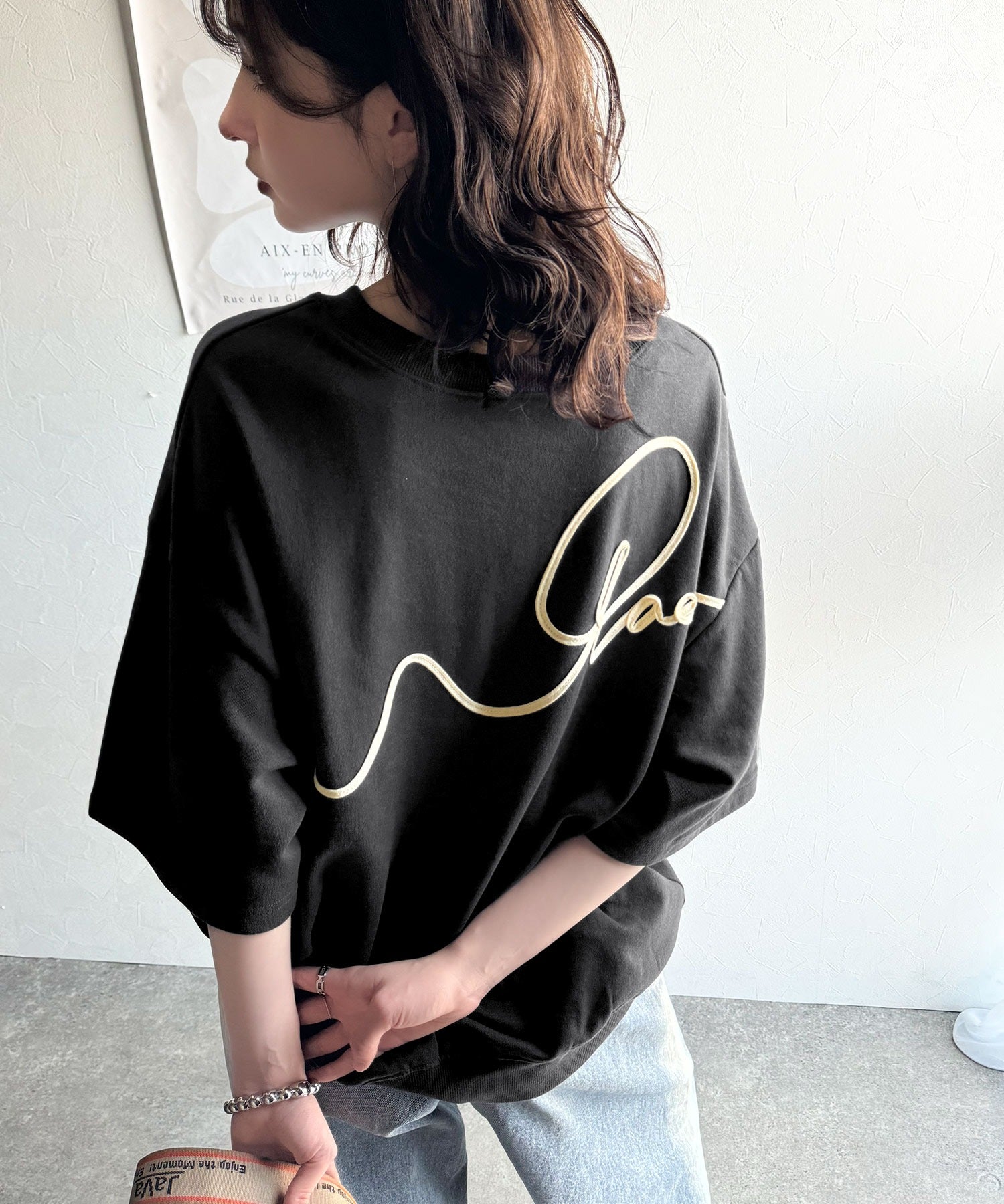 《メンズもレディースも着れちゃう"コード刺繍ハーフスリーブ裏毛Tシャツ"》