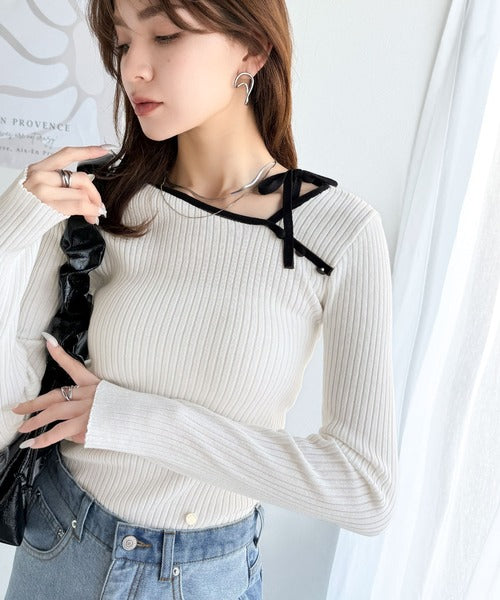 軽やかなリブ素材を使用しており、さらっと心地よい着心地が魅力。