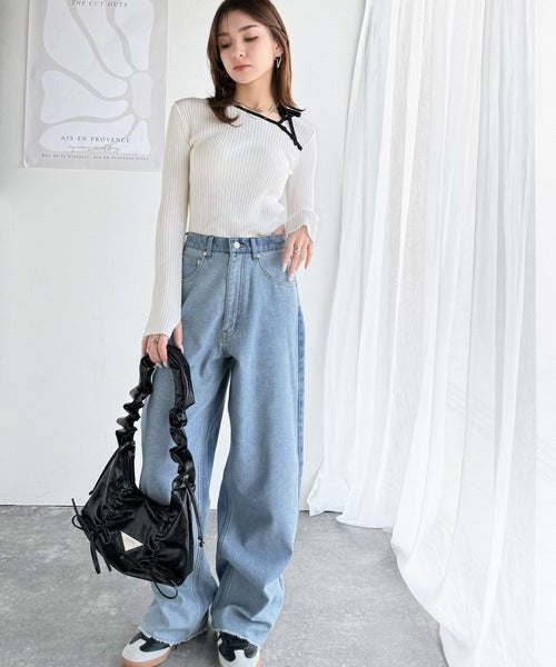 例えば、ハイウエストのデニムと合わせれば、カジュアルながらも洗練された雰囲気に。