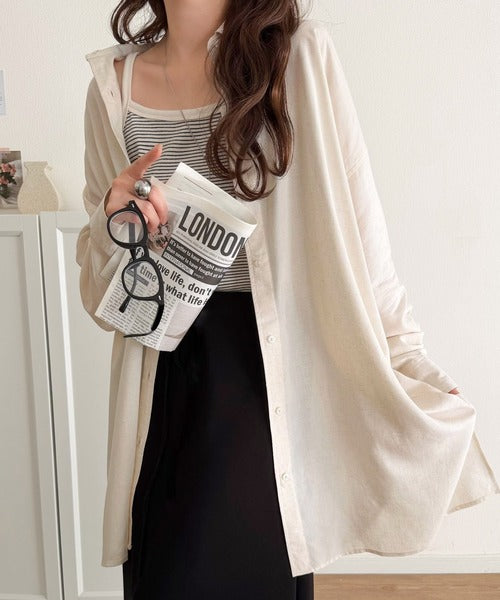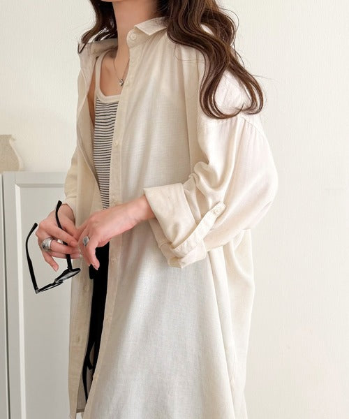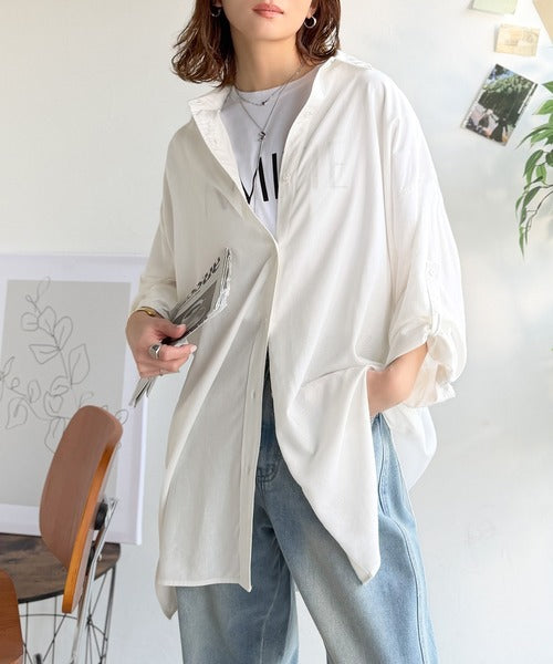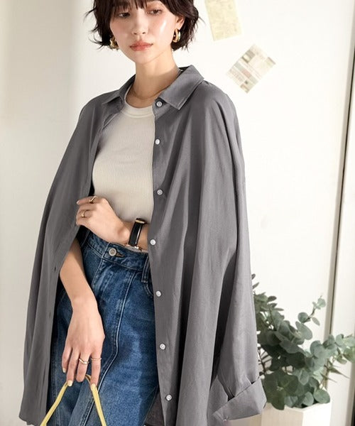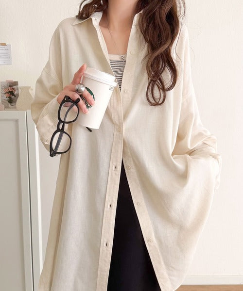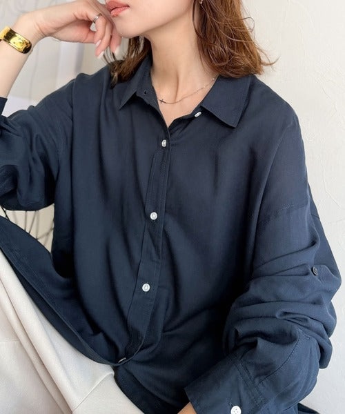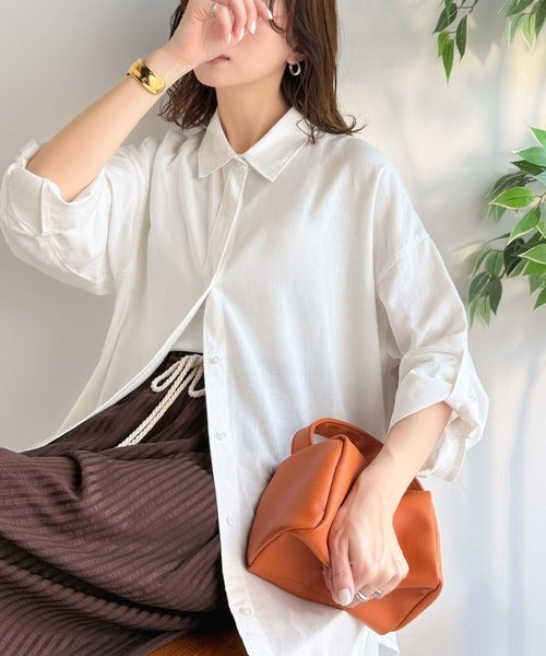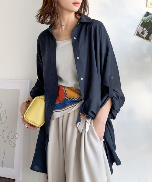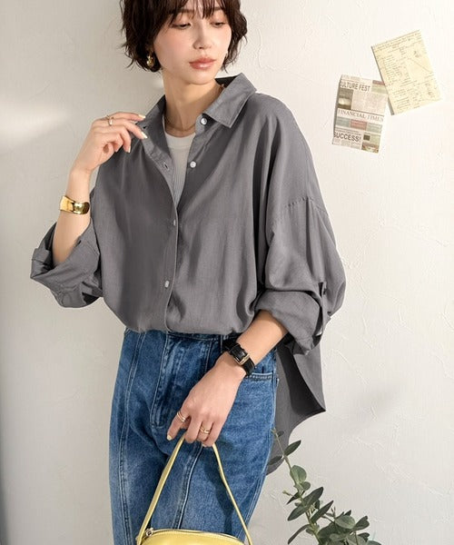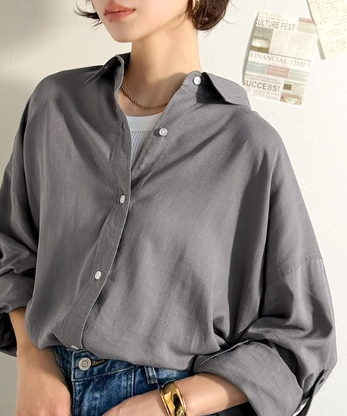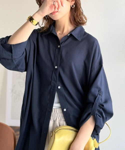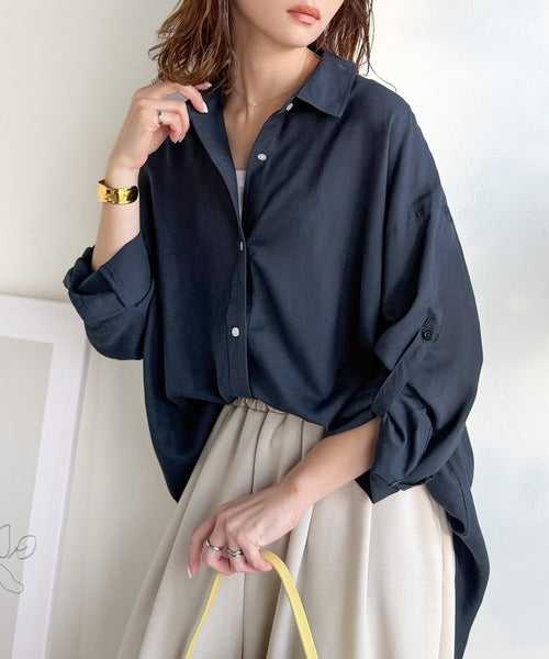 【機能性素材】軽やかにデイリーに使える。レーヨン麻混オーバーサイズロールアップシャツ(長袖) ce1010542