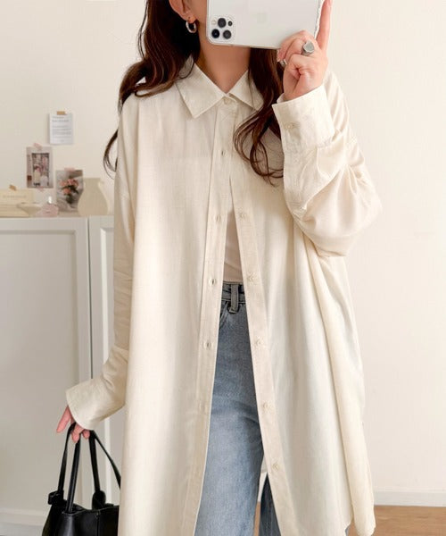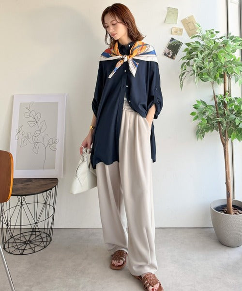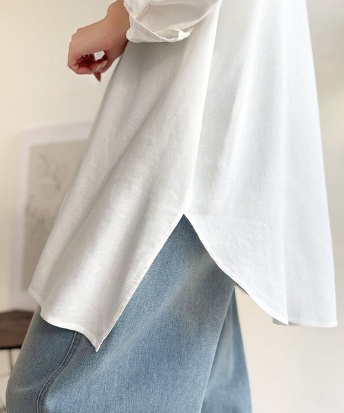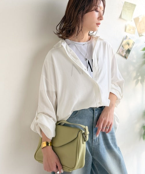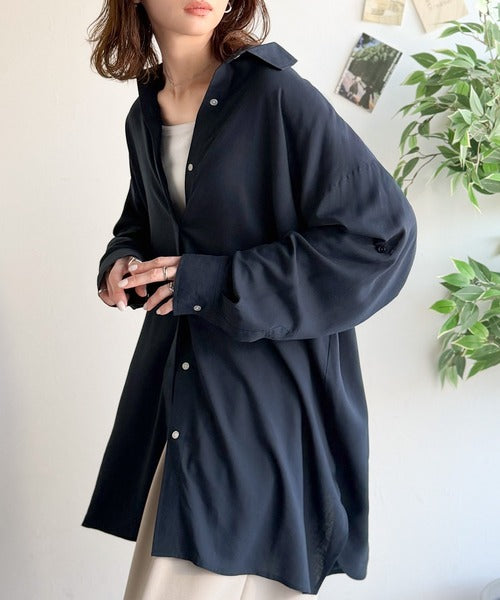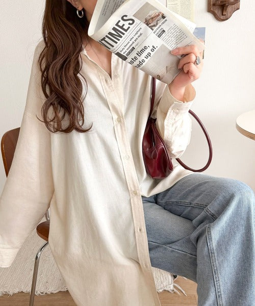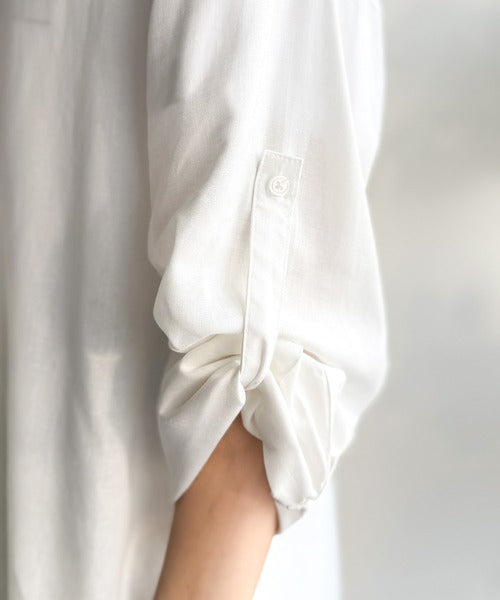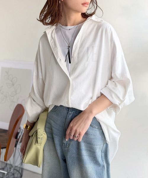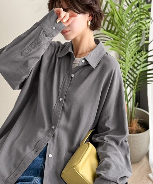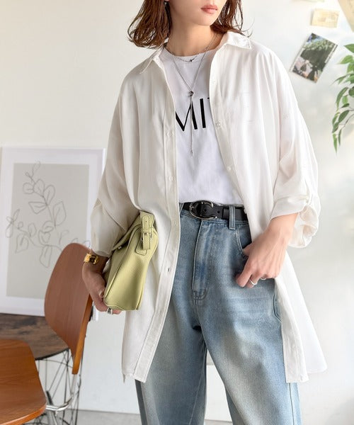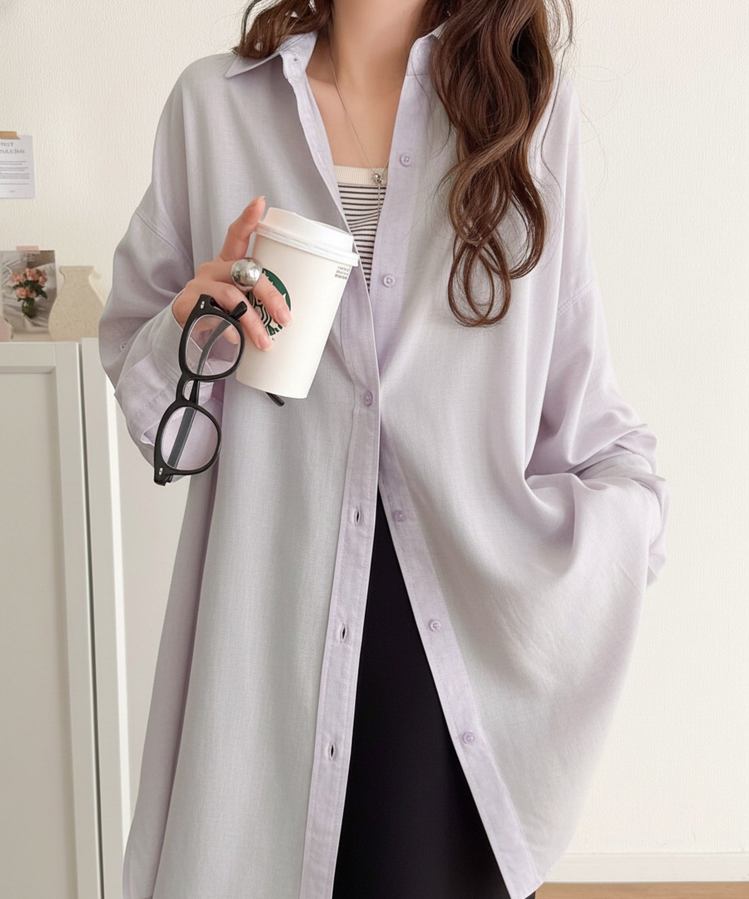 【機能性素材】軽やかにデイリーに使える。レーヨン麻混オーバーサイズロールアップシャツ(長袖) ce1010542