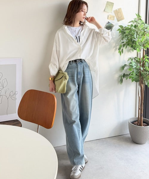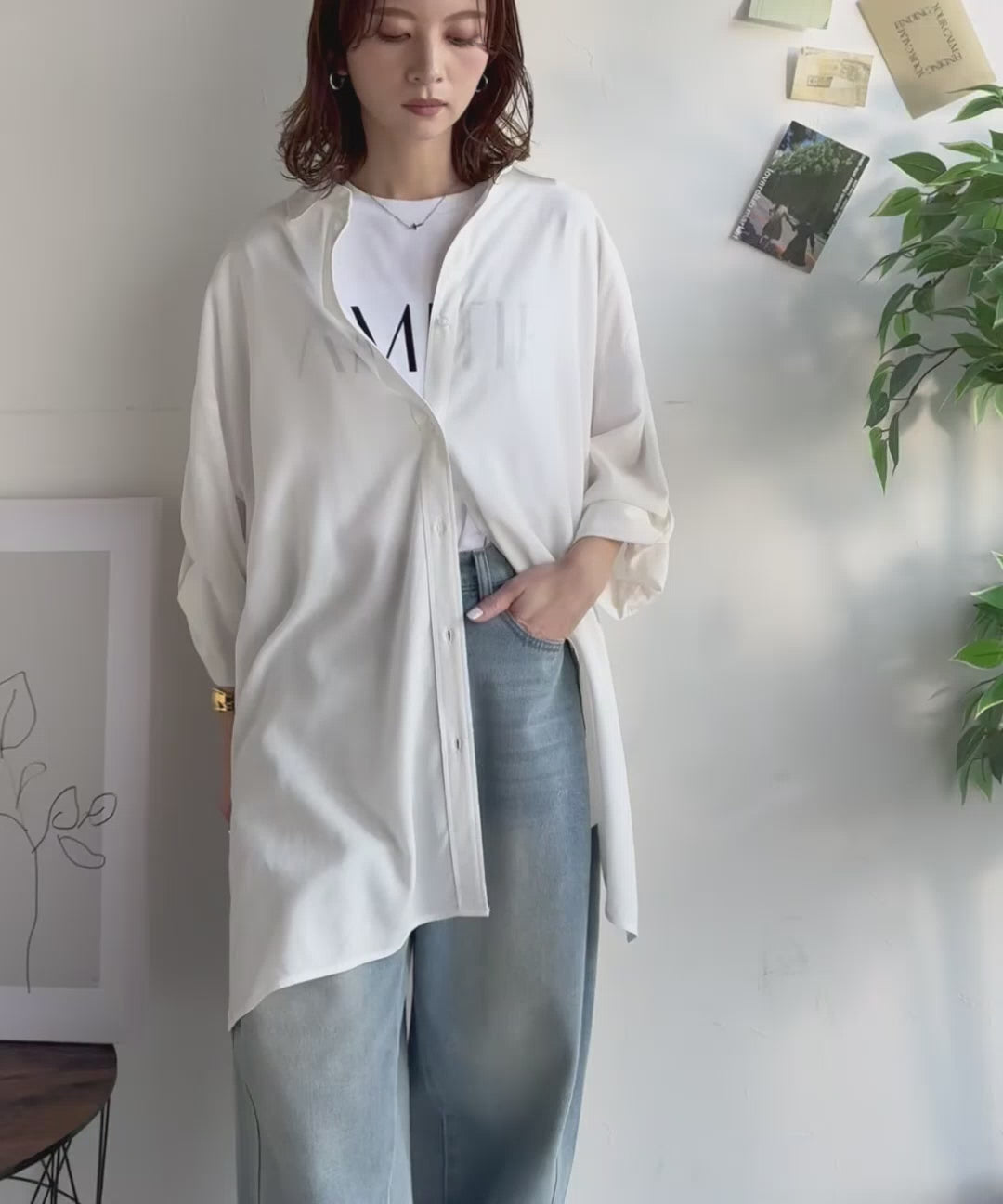 オーバーシルエットと袖ロールアップでトップスにも羽織にも使える2WAY仕様。