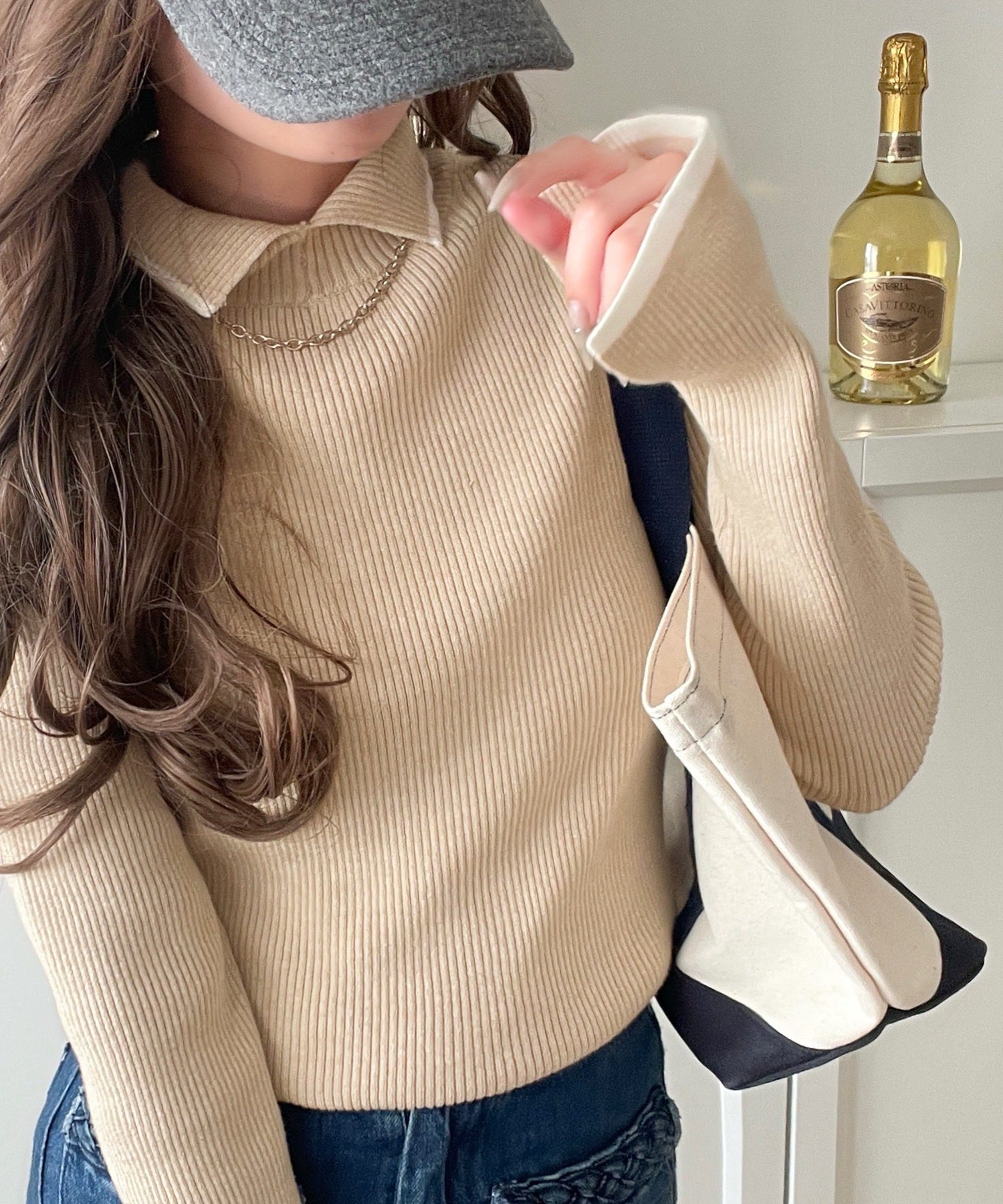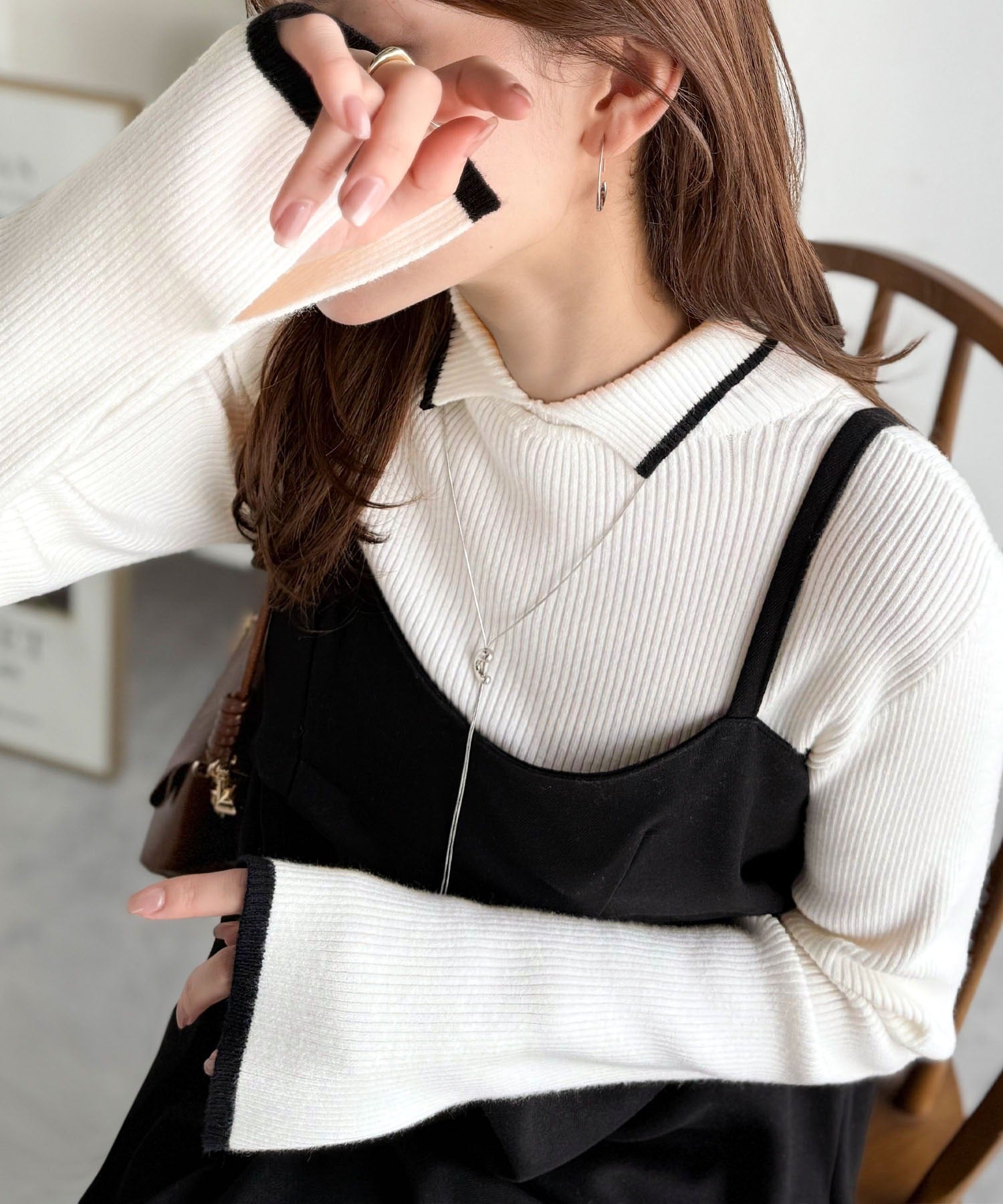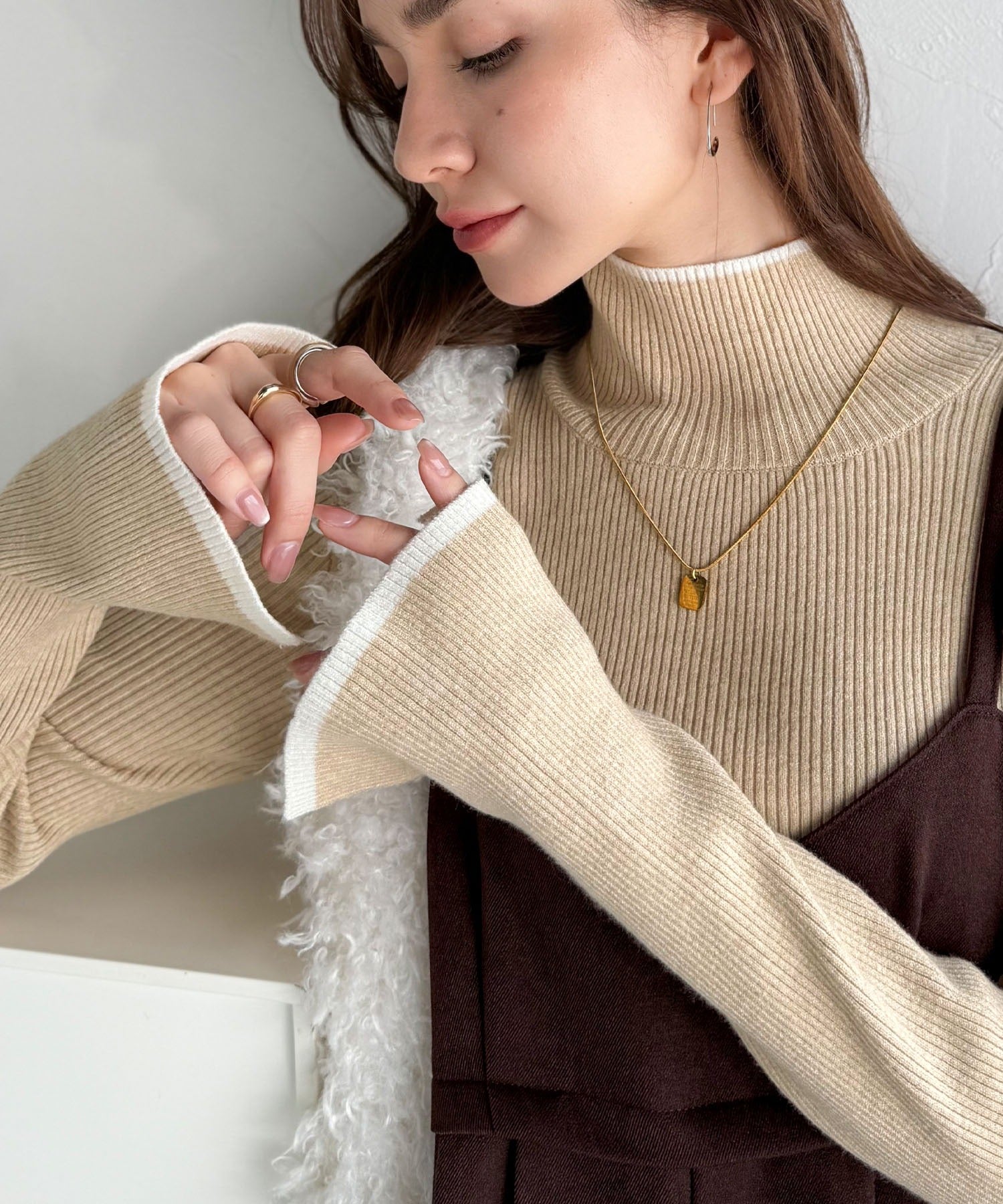 上品さと抜け感を両立する、大人のための配色リブニット。