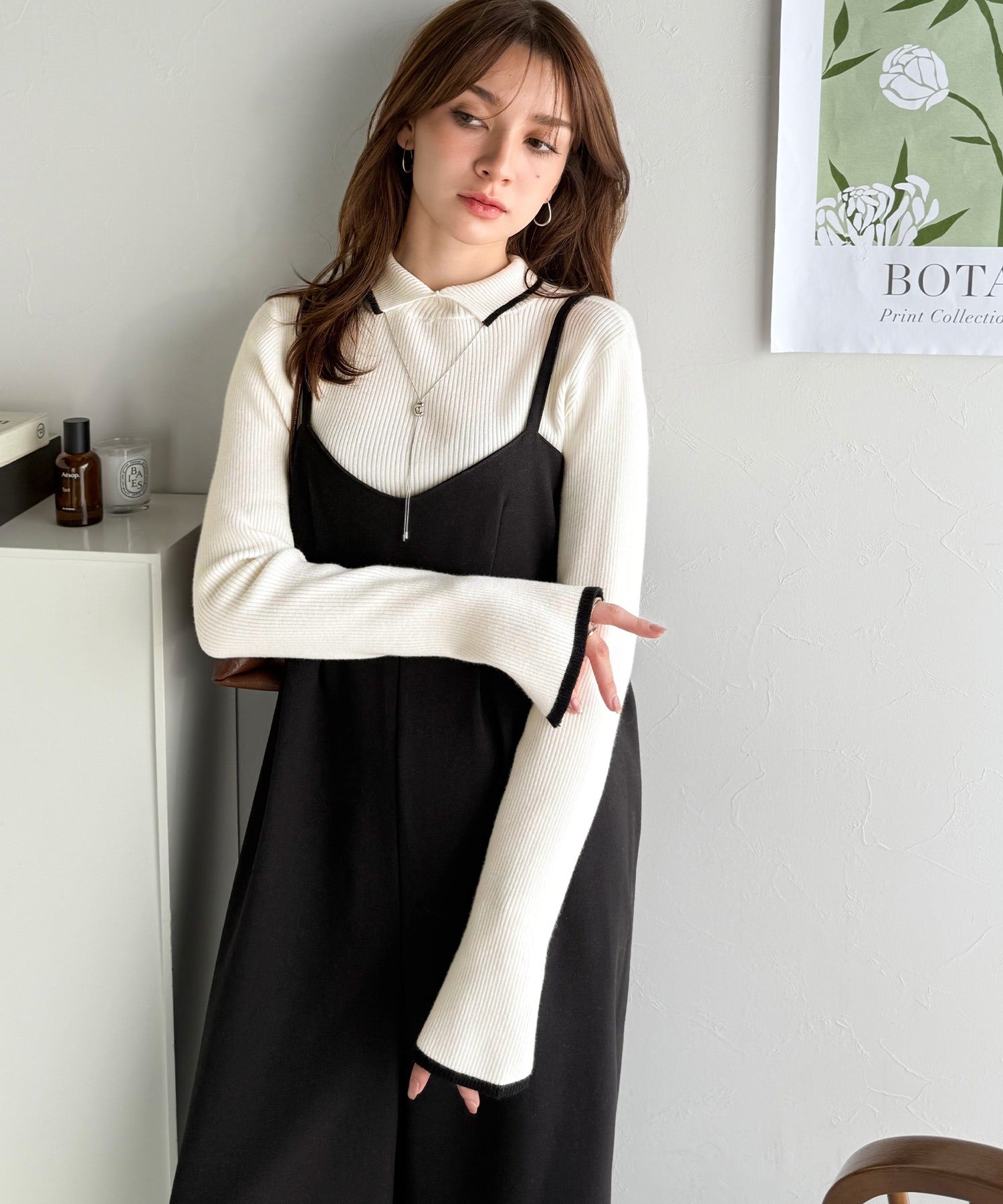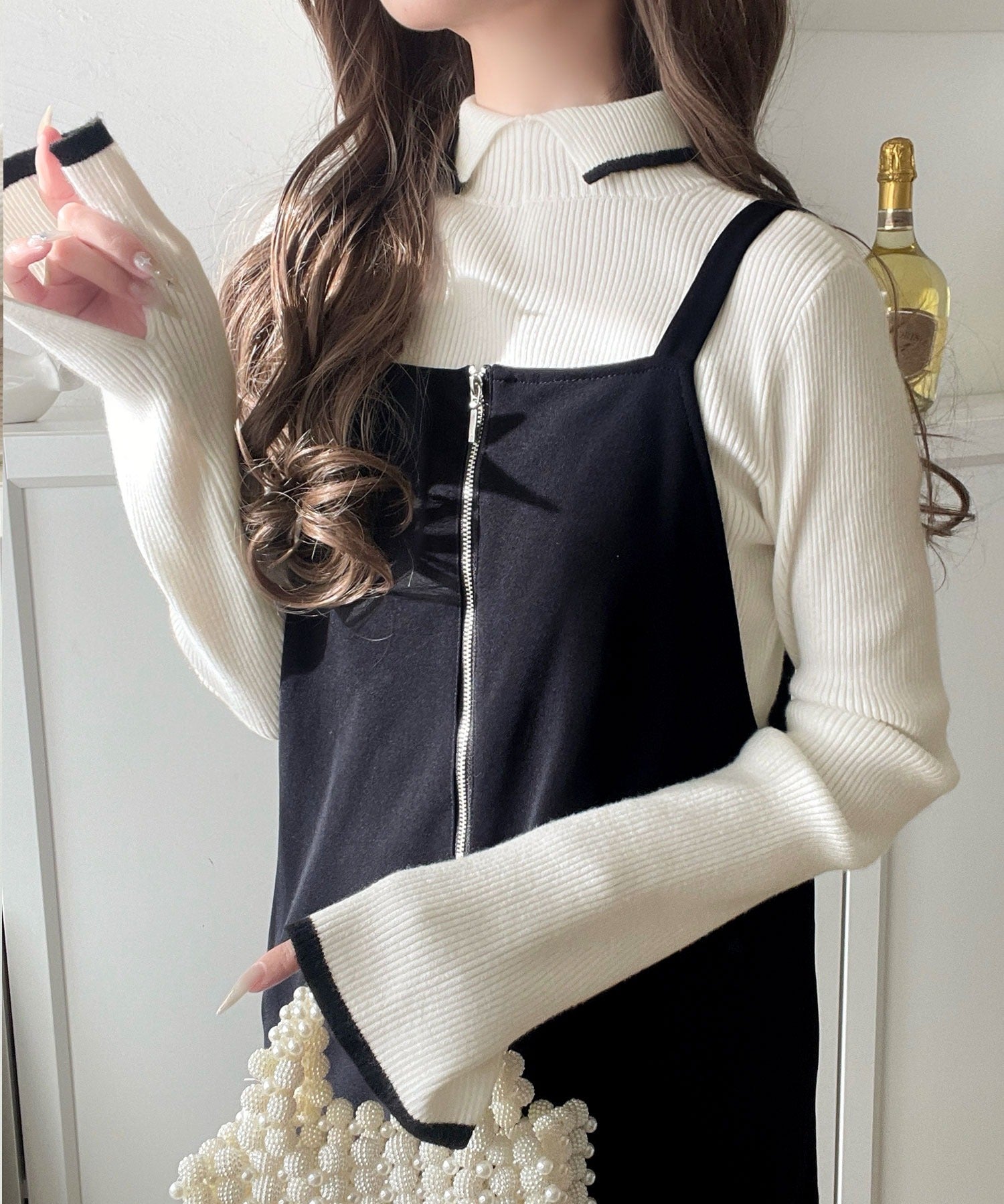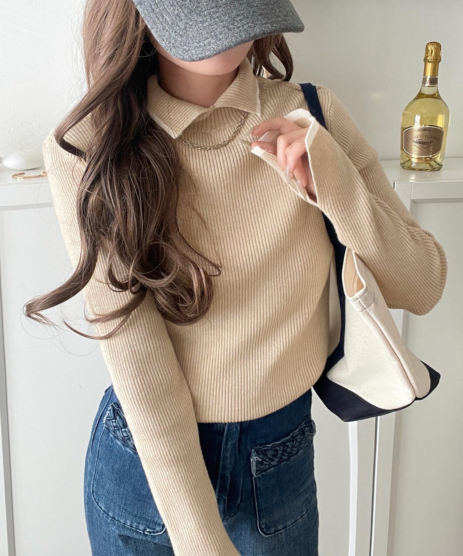 上品さと抜け感を両立する、大人のための配色リブニット。