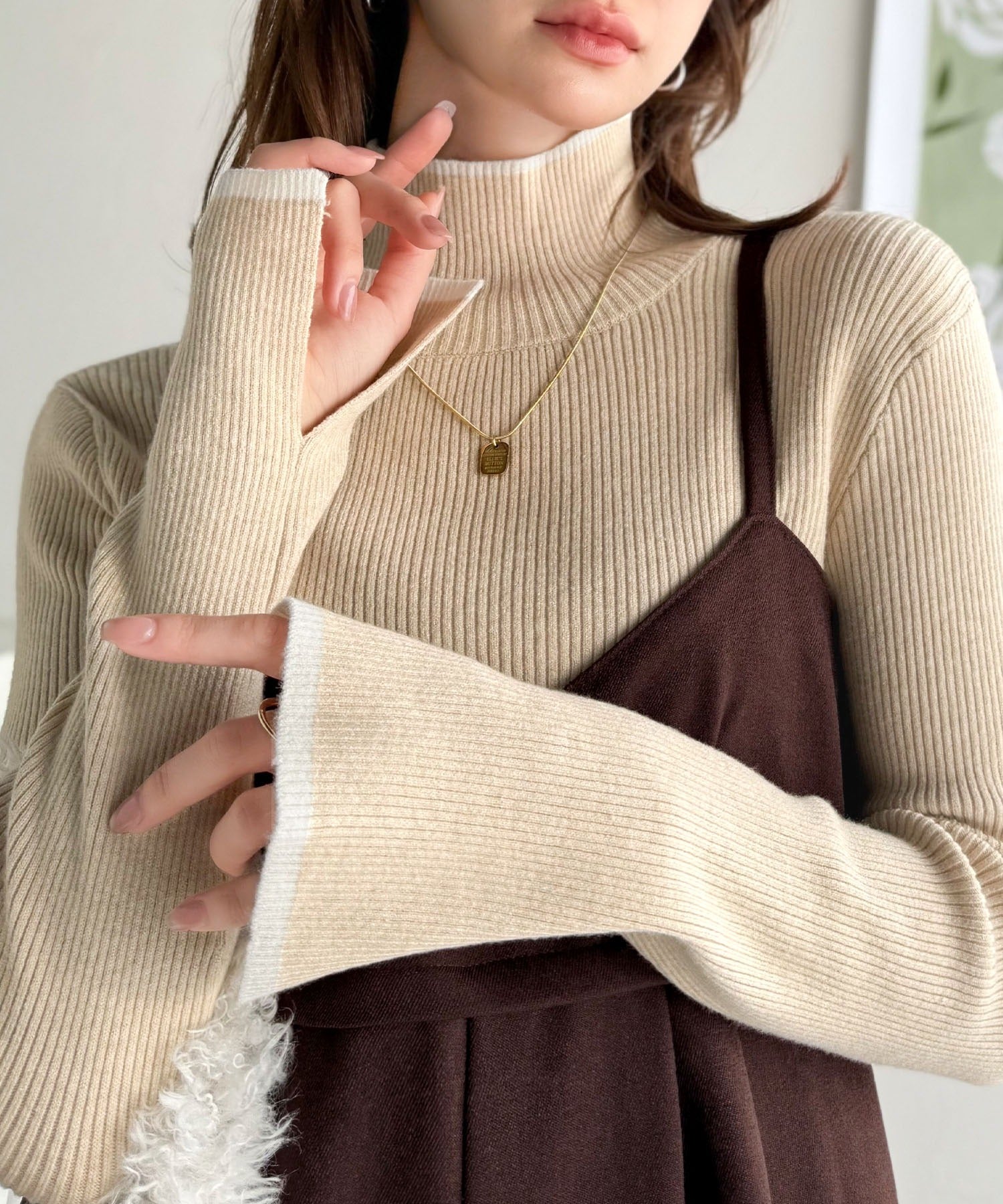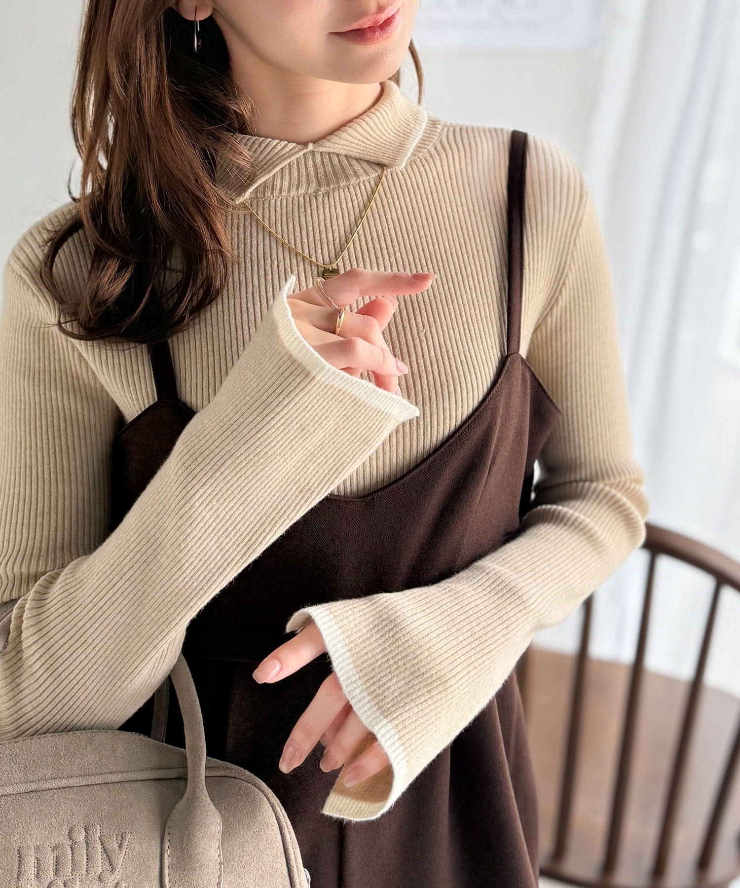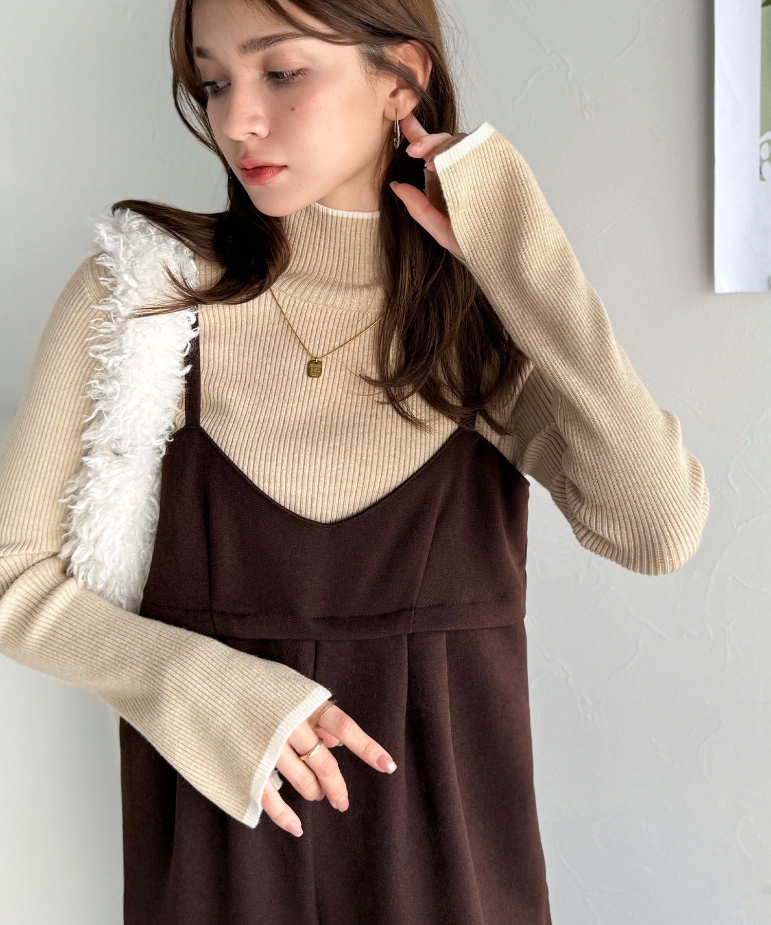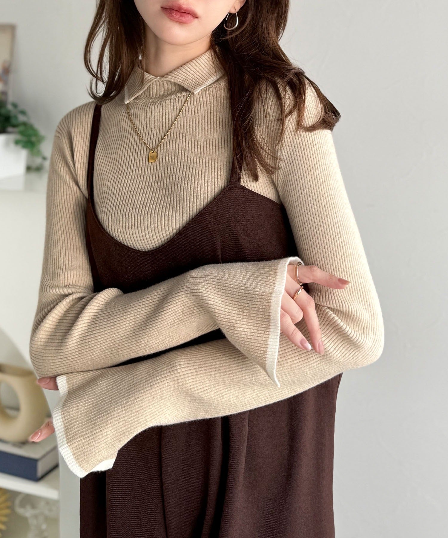 《daaco×クラシカルエルフコラボ》スタイリングが一気に垢抜ける。上品配色が映える袖スリット入り前後2WAYハイネックリブニット ce1350010
