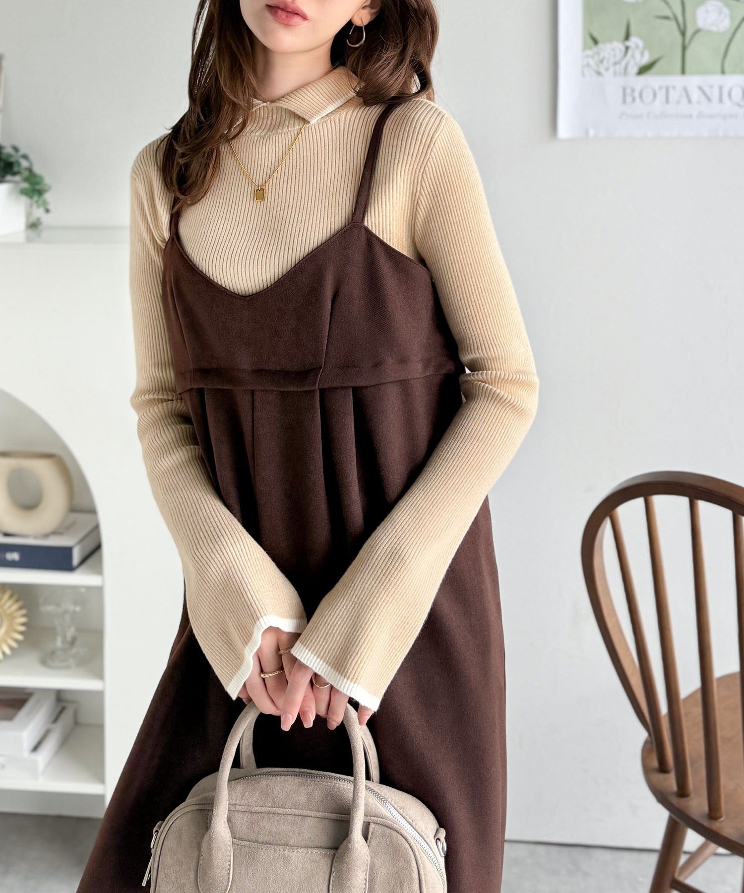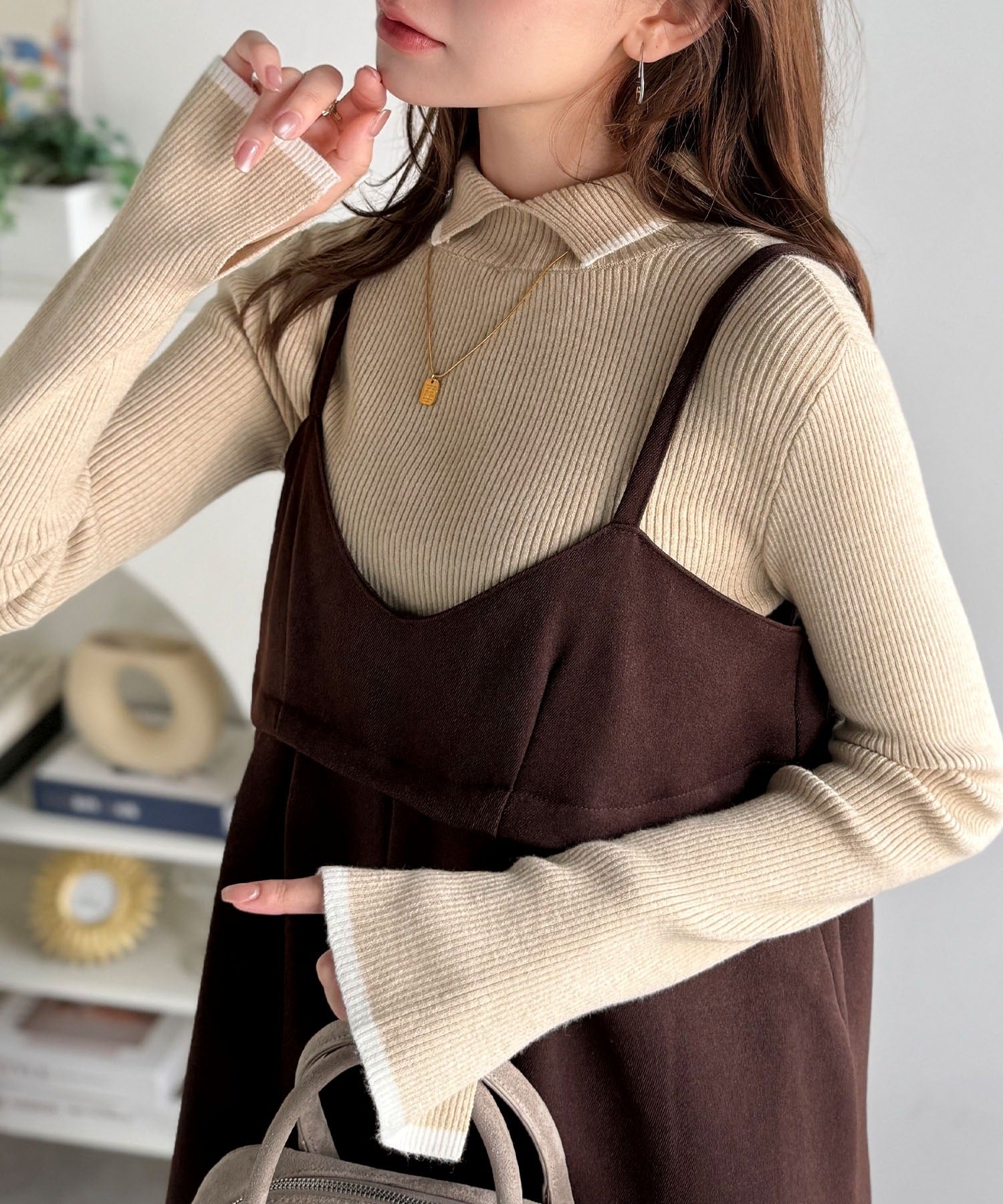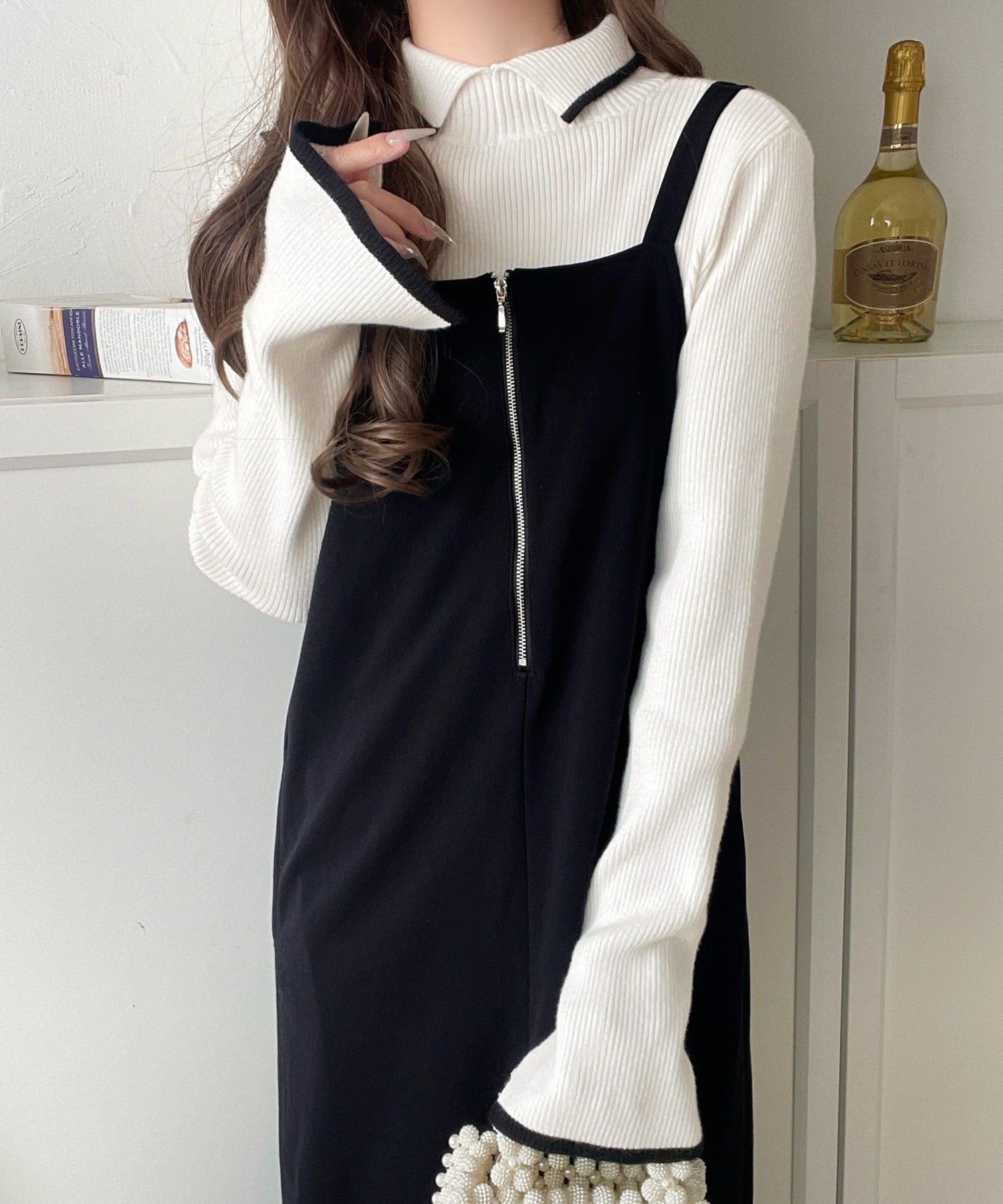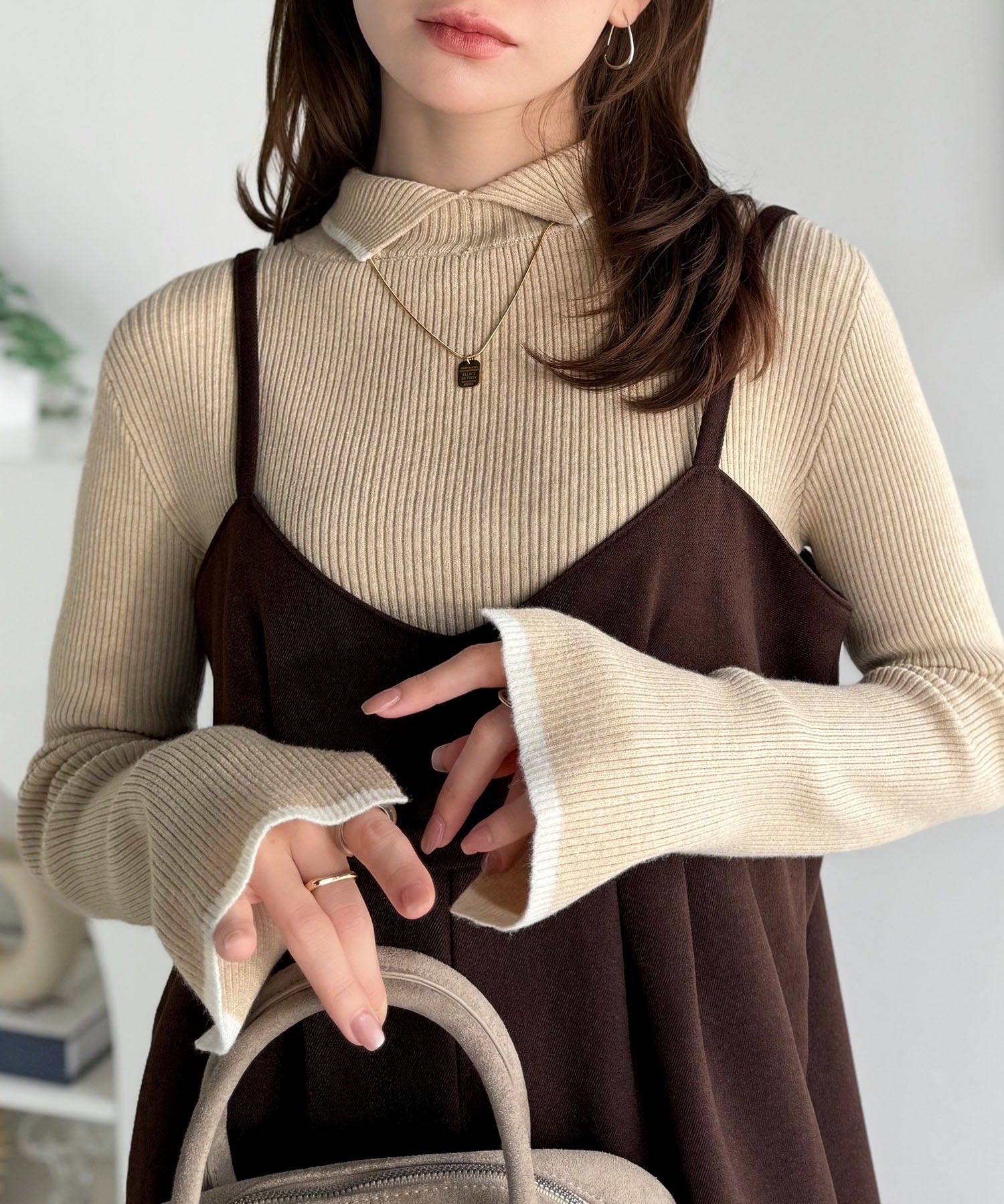 《daaco×クラシカルエルフコラボ》スタイリングが一気に垢抜ける。上品配色が映える袖スリット入り前後2WAYハイネックリブニット ce1350010