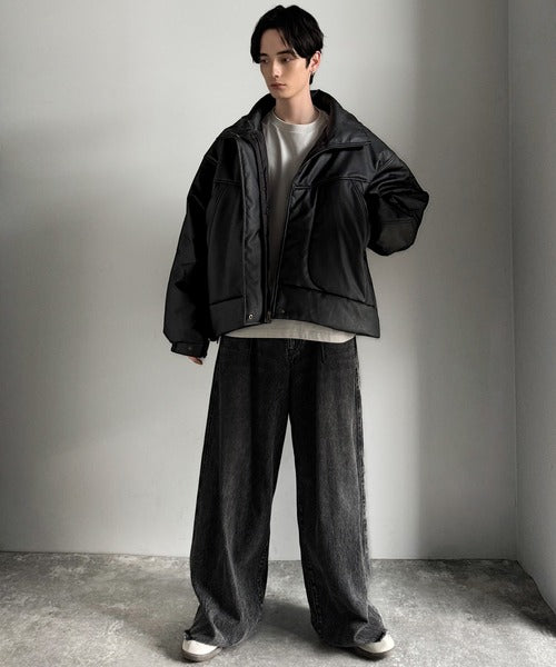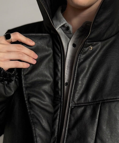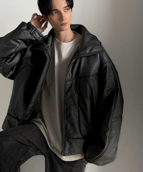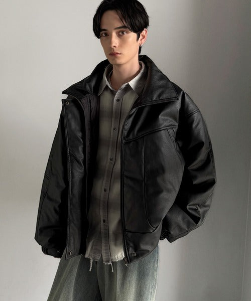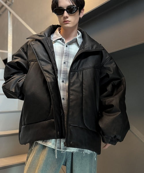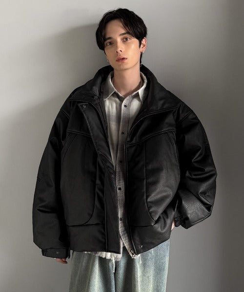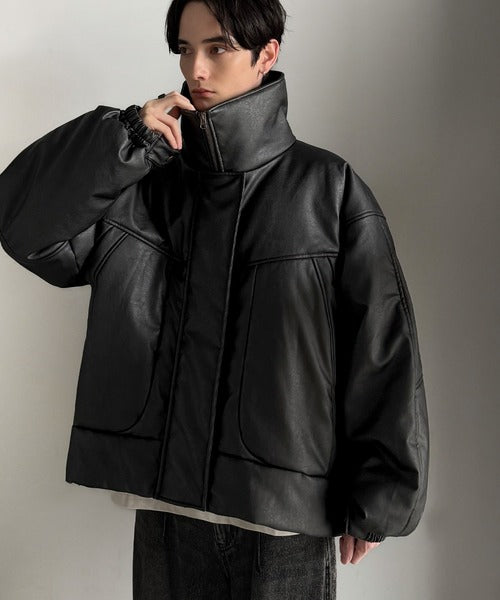 ・防寒性の高い中綿入りフェイクレザー