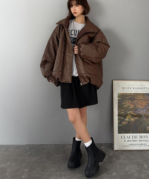 着るだけでスタイリングが決まる、存在感抜群の中綿レザーモンスターブルゾン。