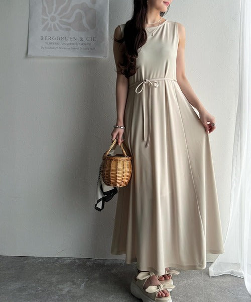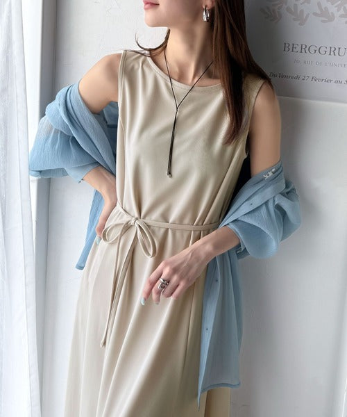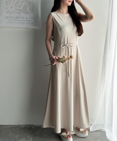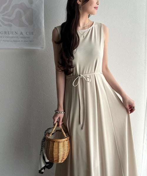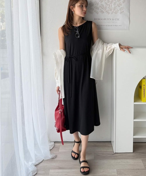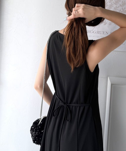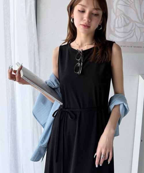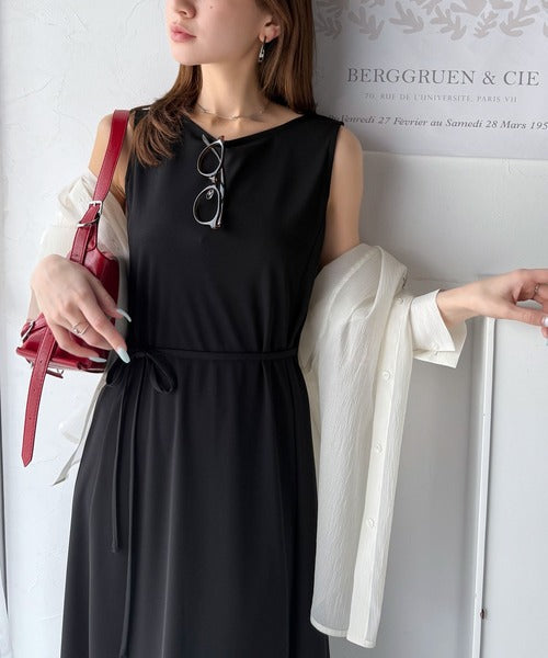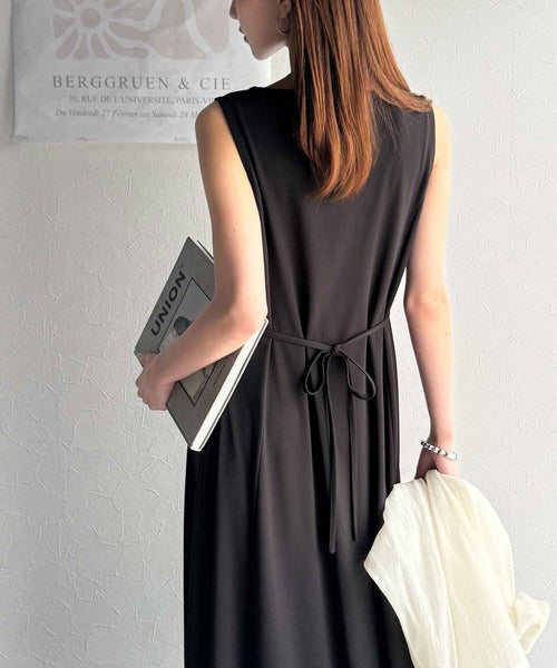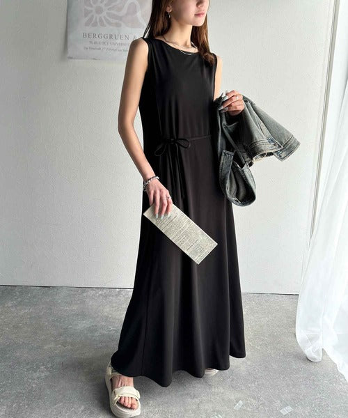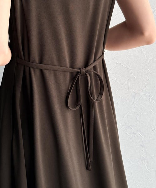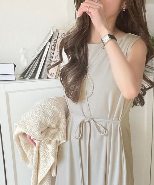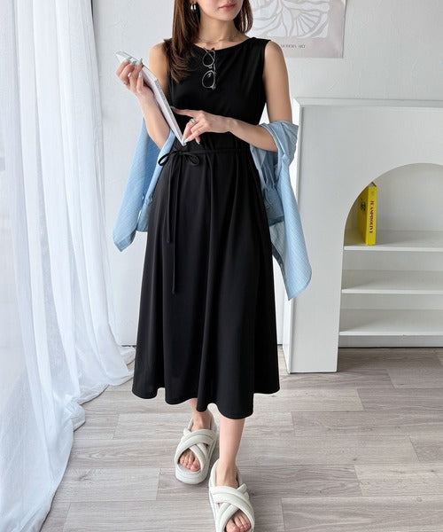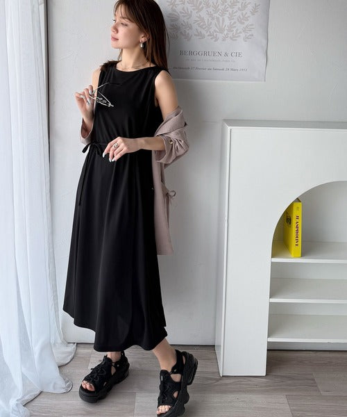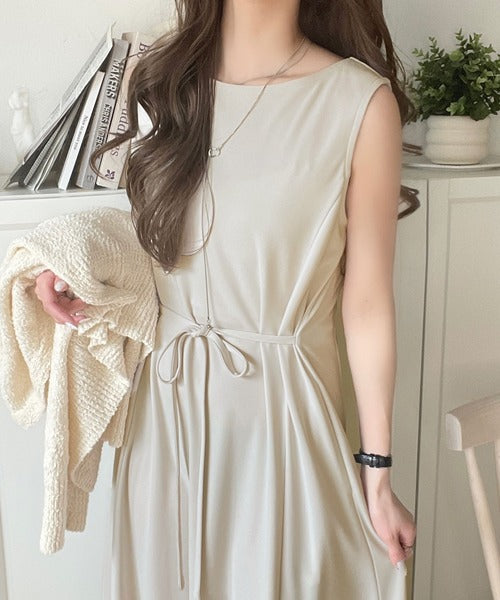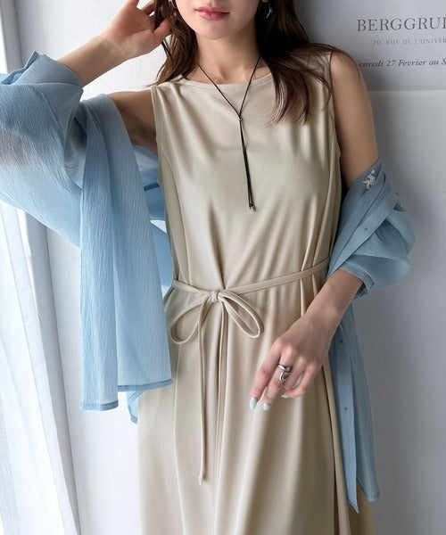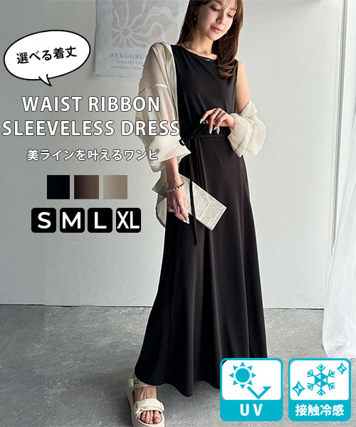選べる2丈!ウエストリボン ボートネック 美ラインノースリーブワンピース(UVカット ・接触冷感・防シワ機能付き ) ce0940236