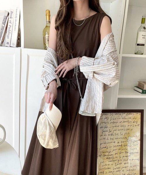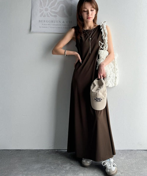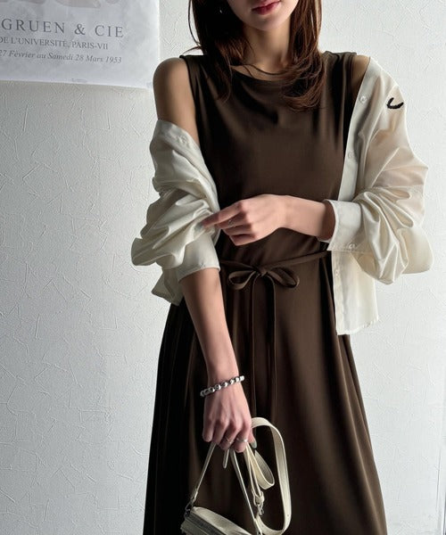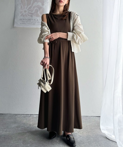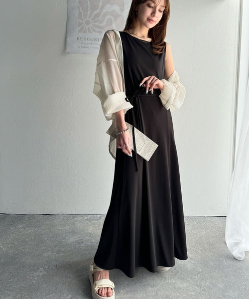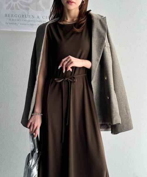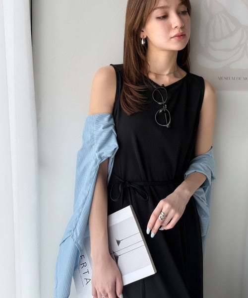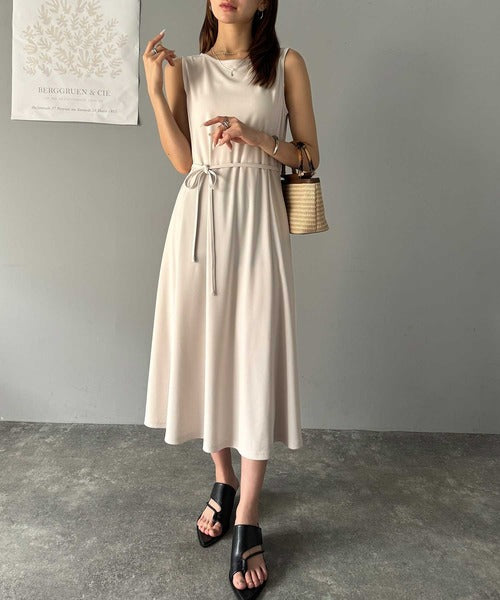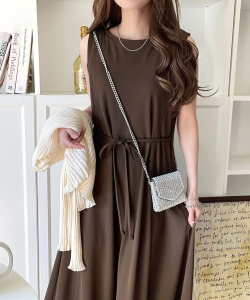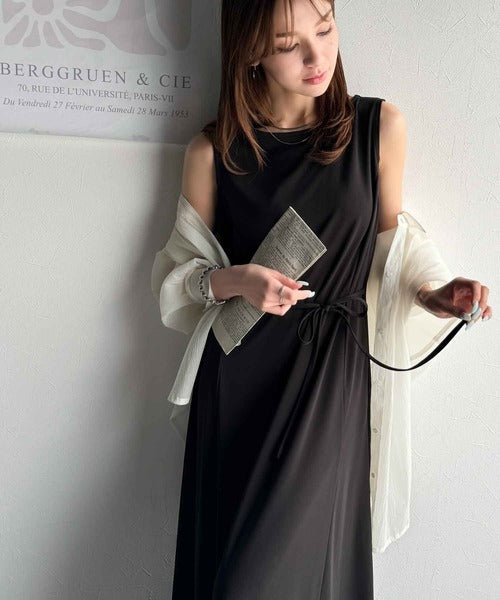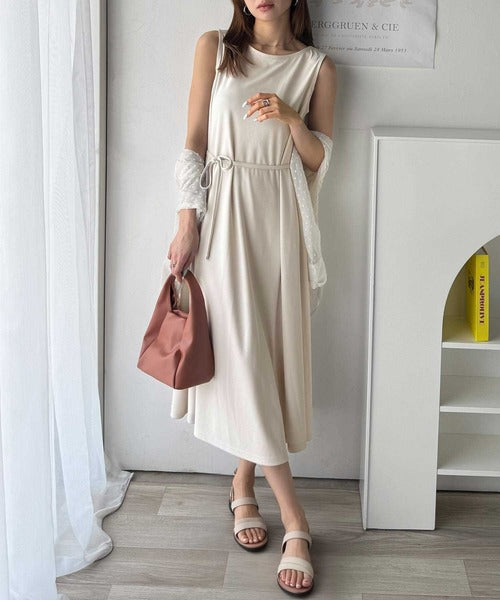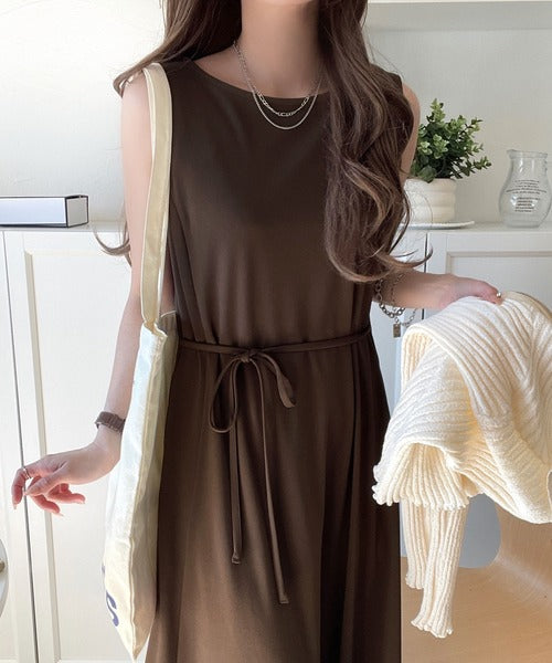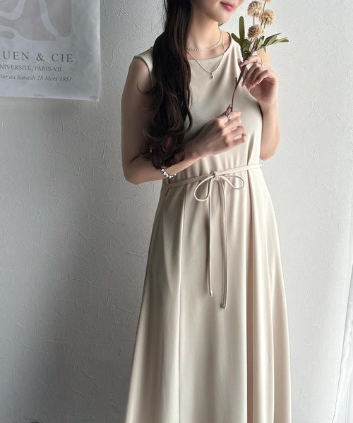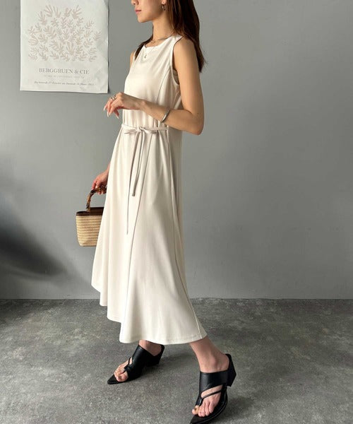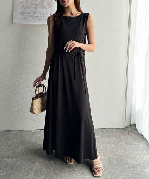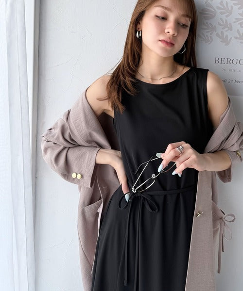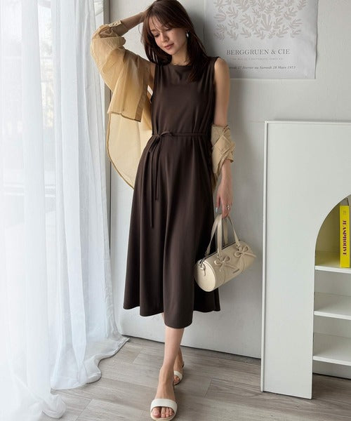 選べる2丈!ウエストリボン ボートネック 美ラインノースリーブワンピース(UVカット ・接触冷感・防シワ機能付き ) ce0940236