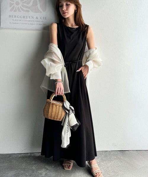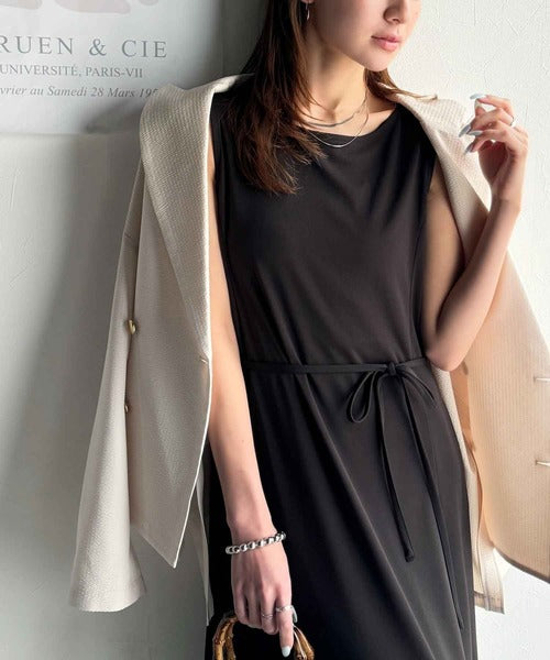 夏に嬉しい接触冷感機能付き素材の美シルエットワンピース。