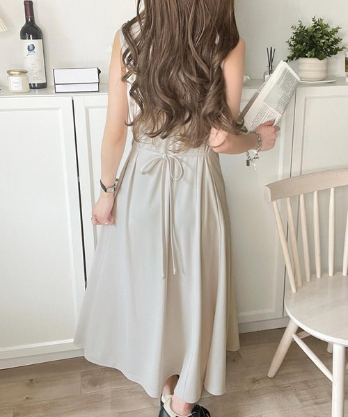 ウエスト紐が付いており、前後どちらでも結べる2WAYデザイン。