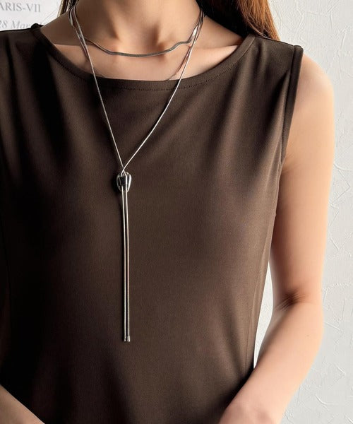 首元をすっきり見せるシンプルなボートネックデザインは、