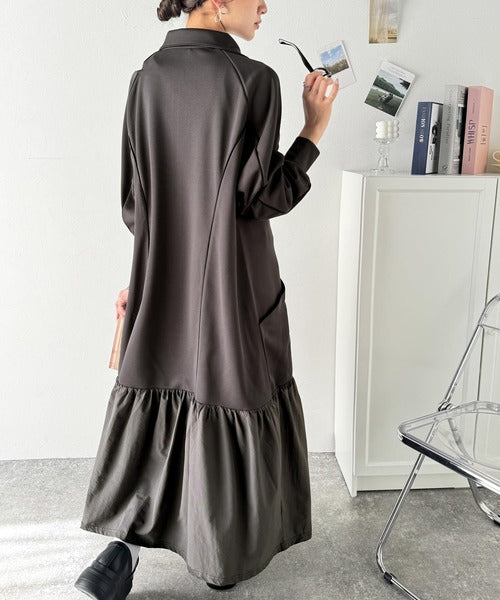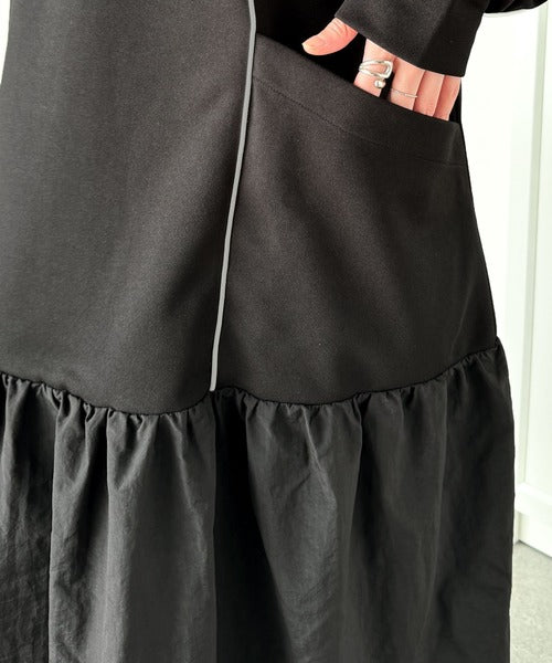 大人の余裕と旬な可愛さを兼ね備えたジャージ素材のドッキングワンピース♪