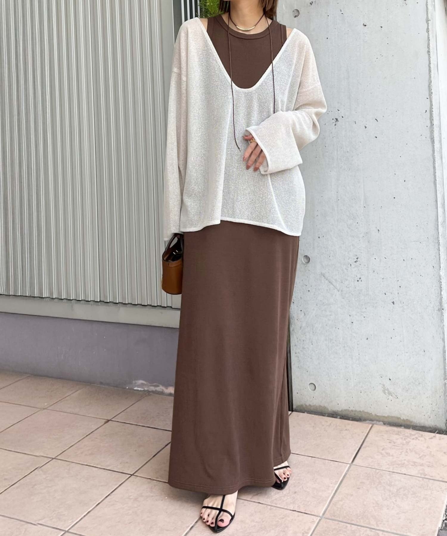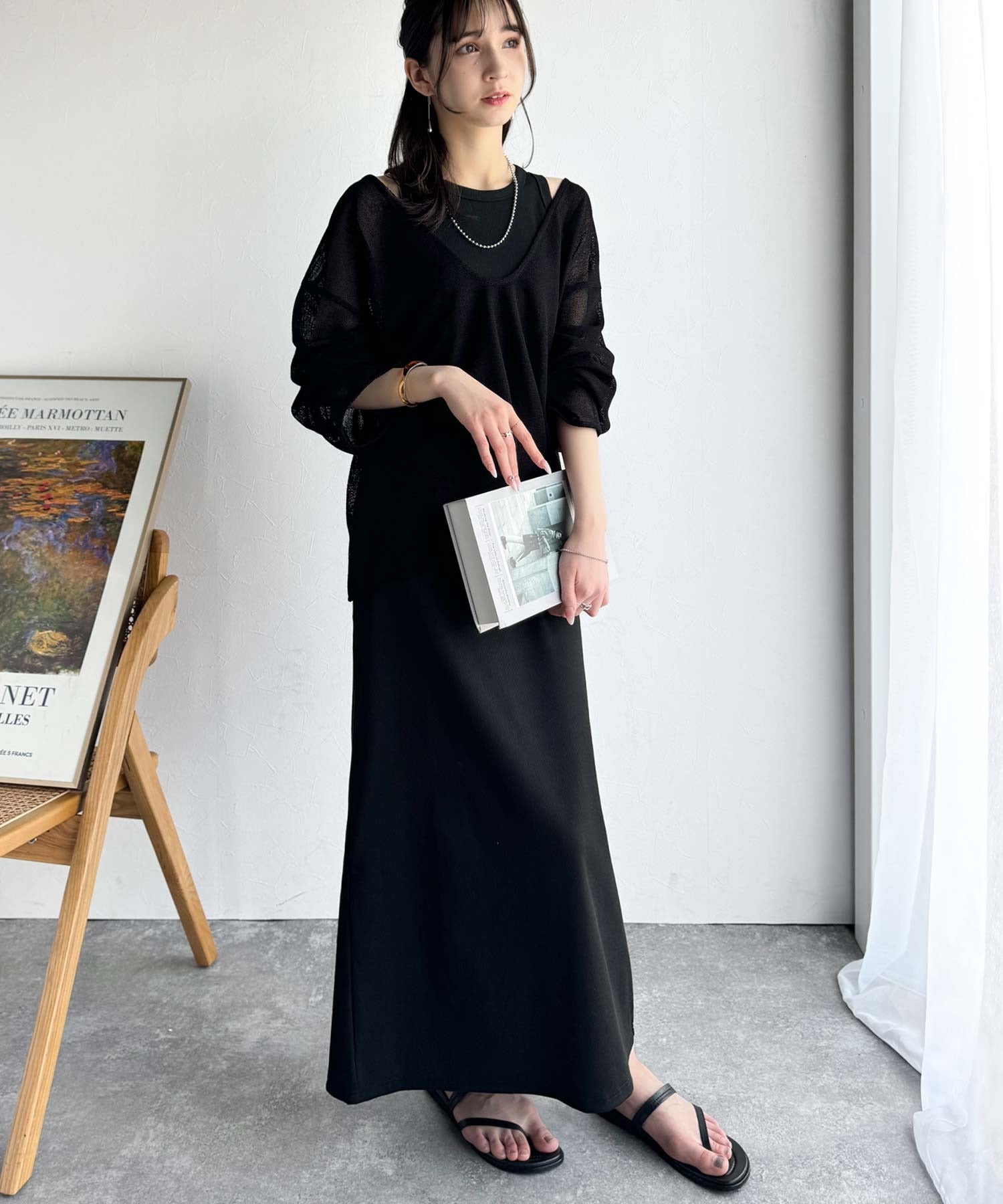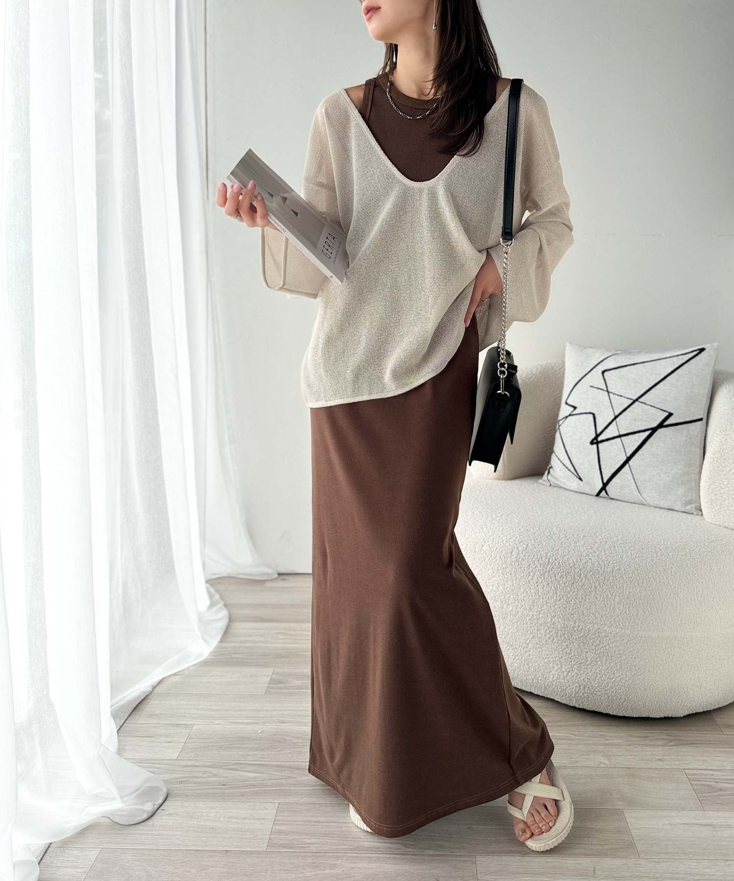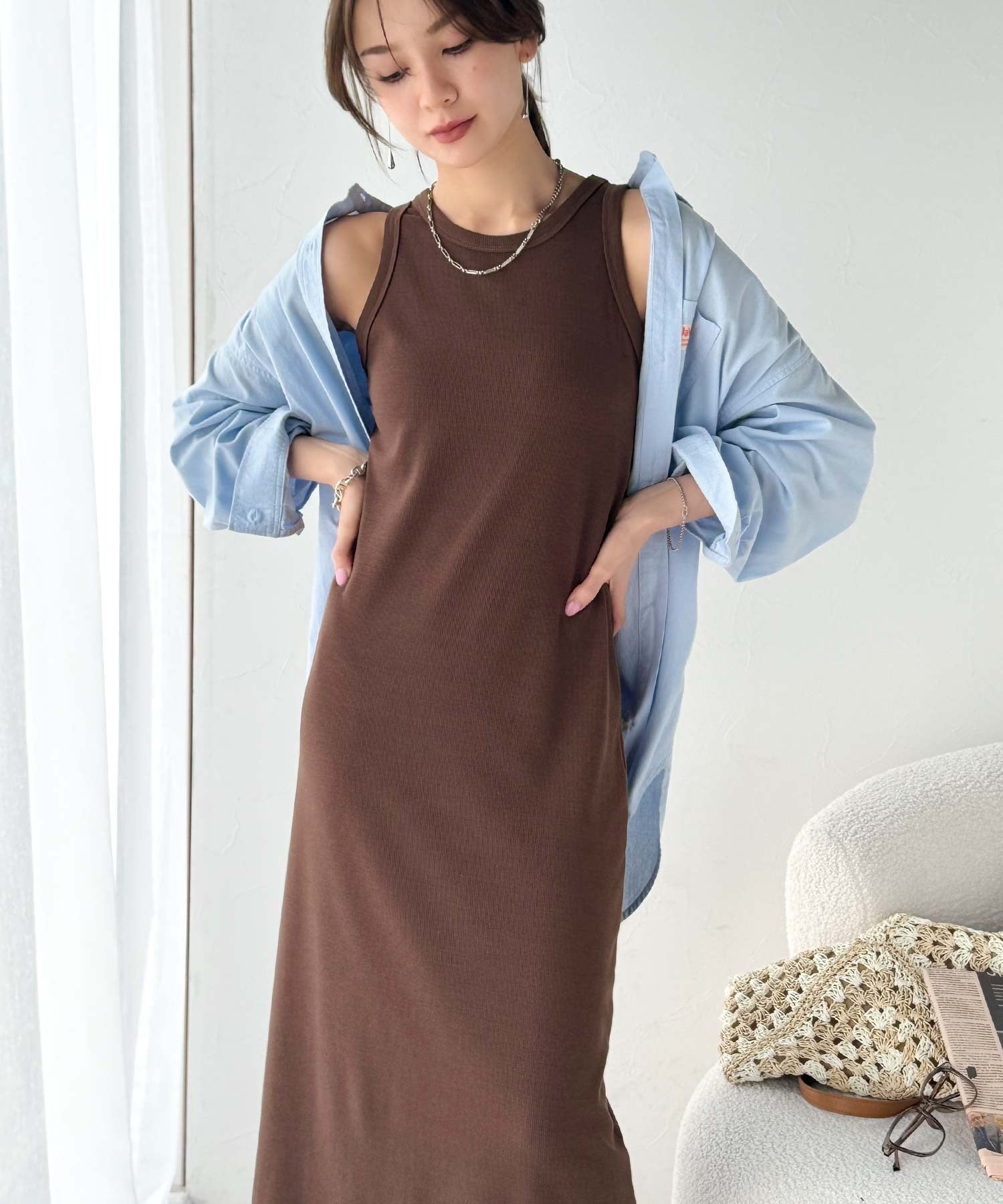 《sayo×クラシカルエルフコラボ》着回しって、こういうこと。リブ素材アメスリロングワンピース ce1010446