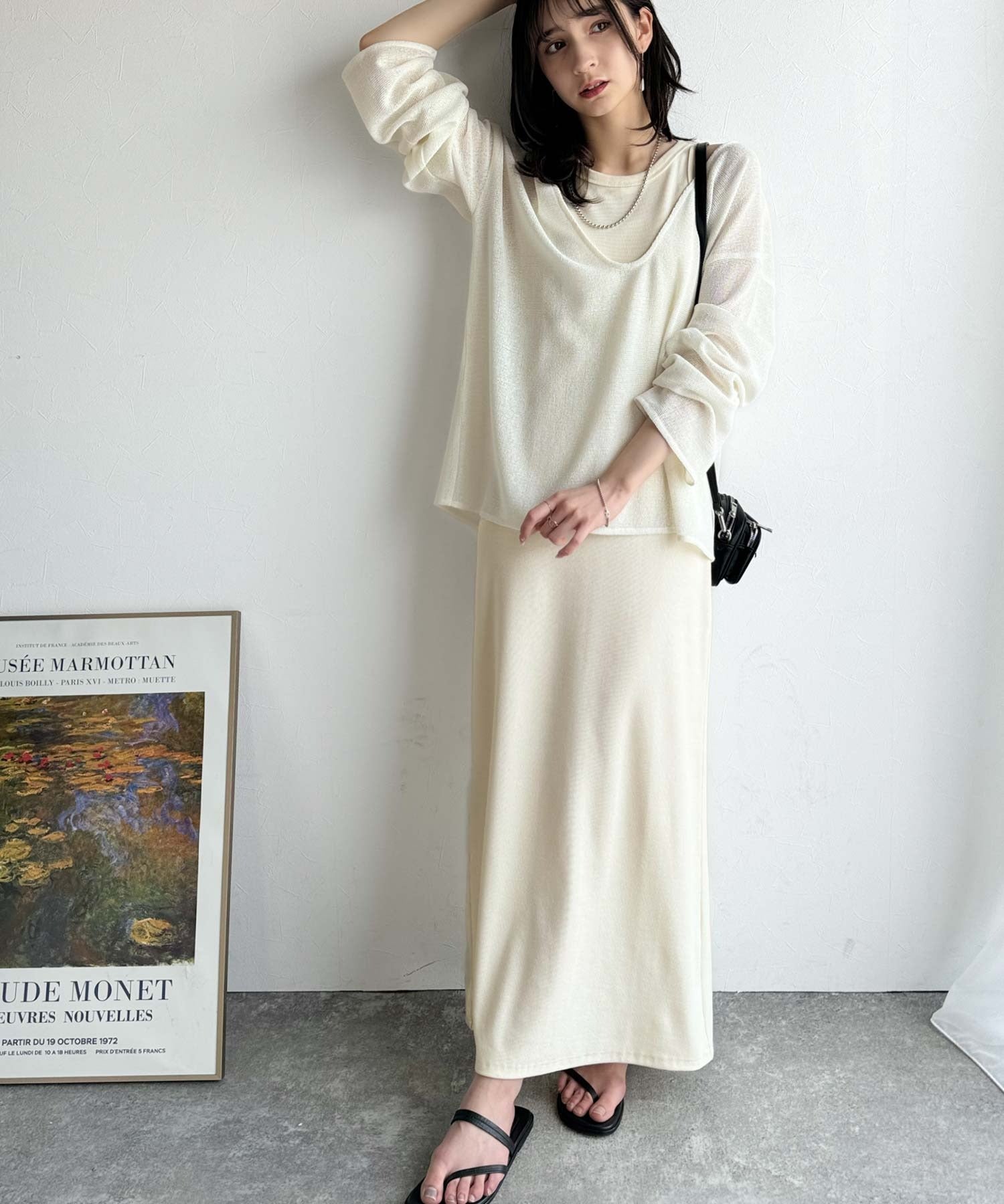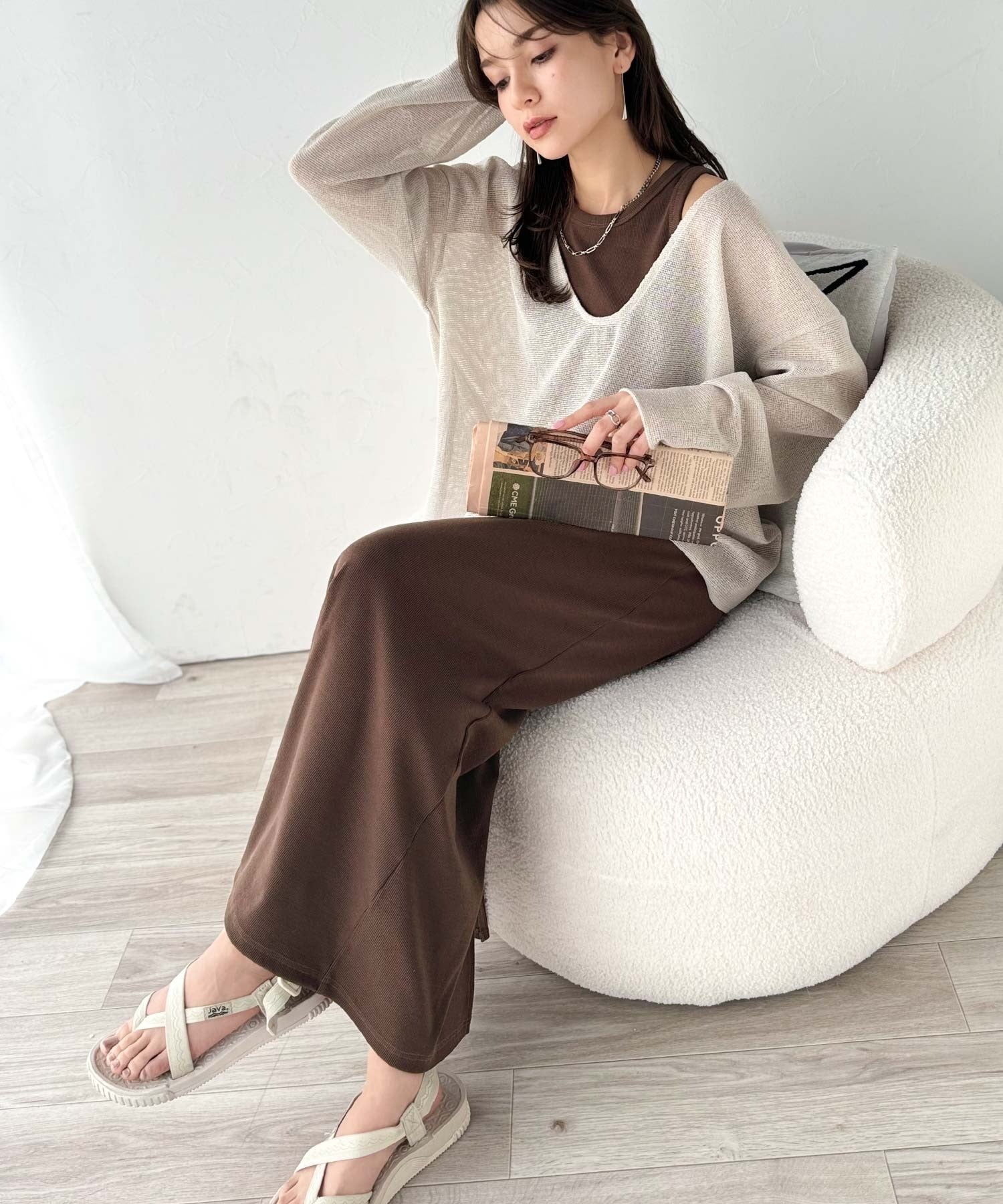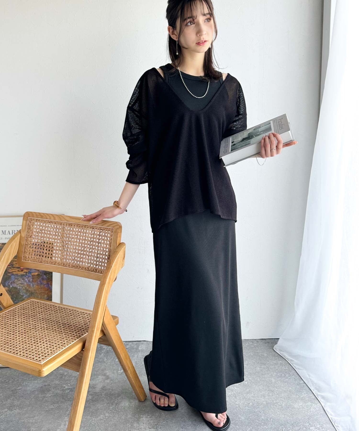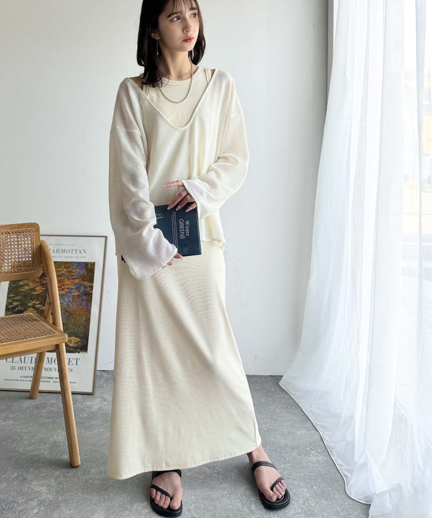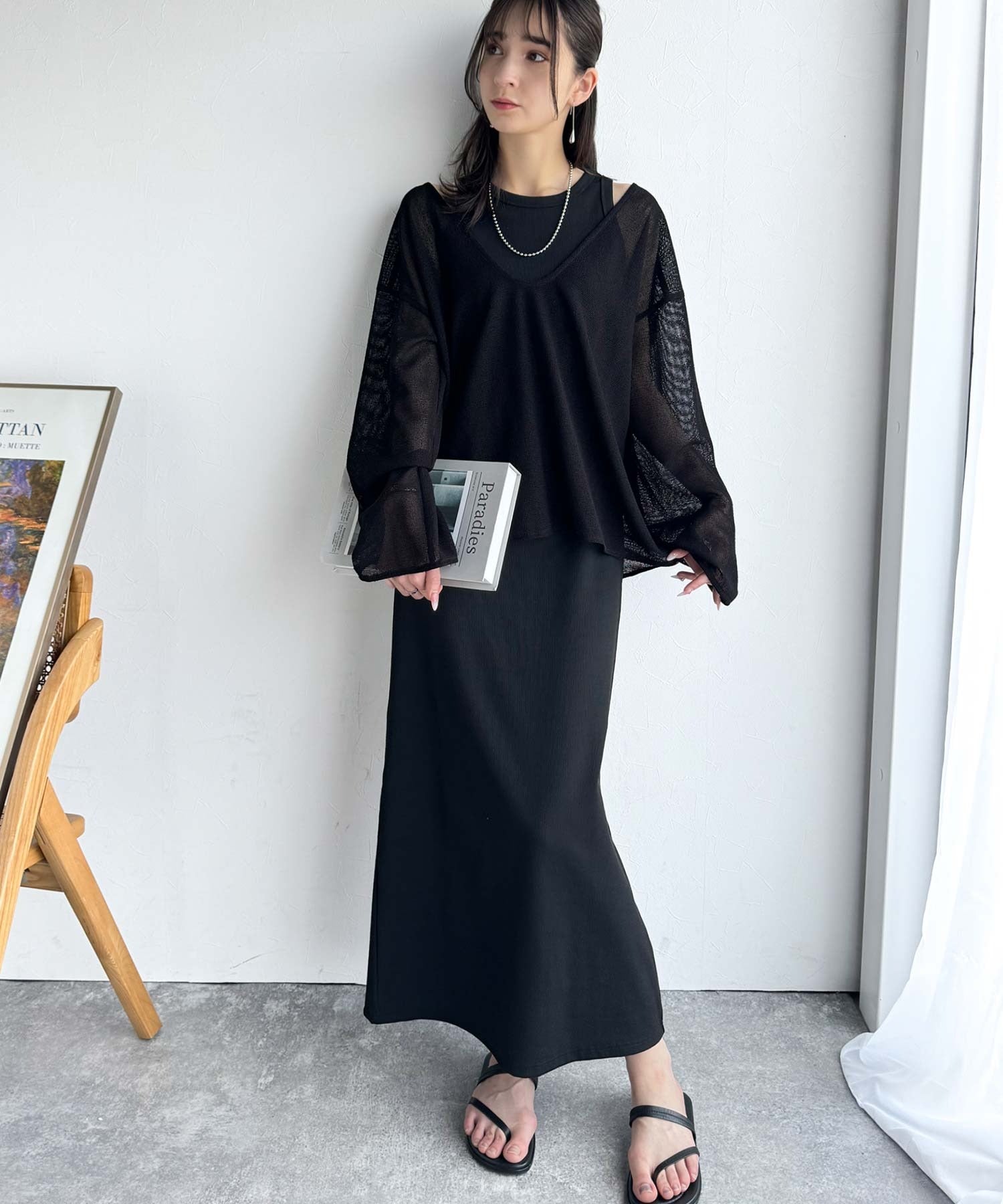《sayo×クラシカルエルフコラボ》着回しって、こういうこと。リブ素材アメスリロングワンピース ce1010446
